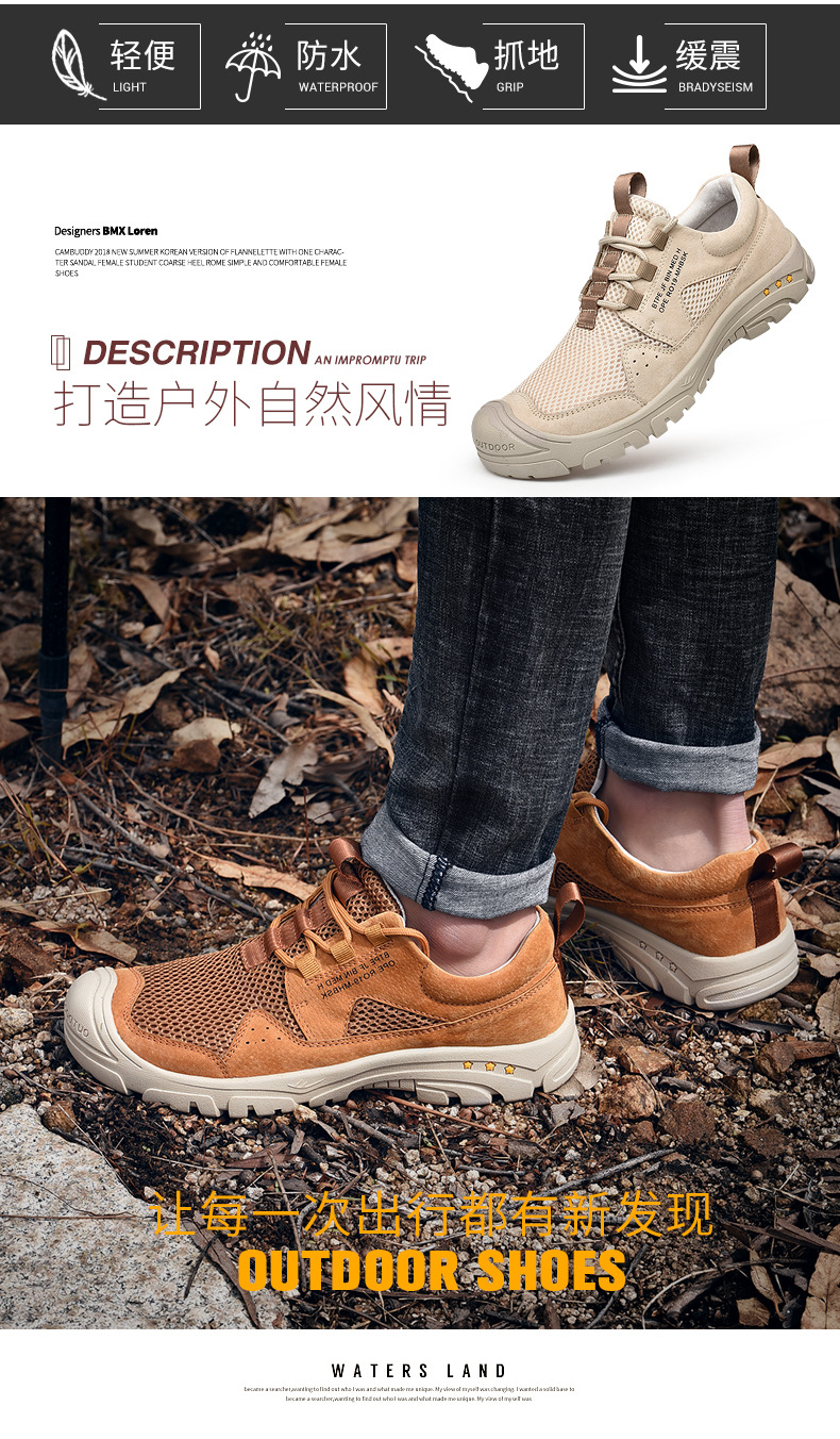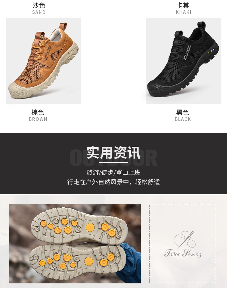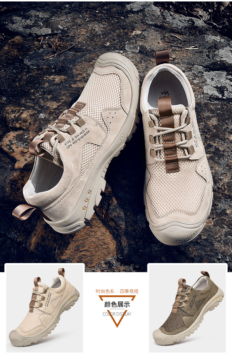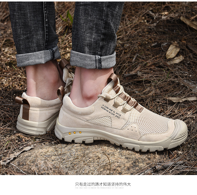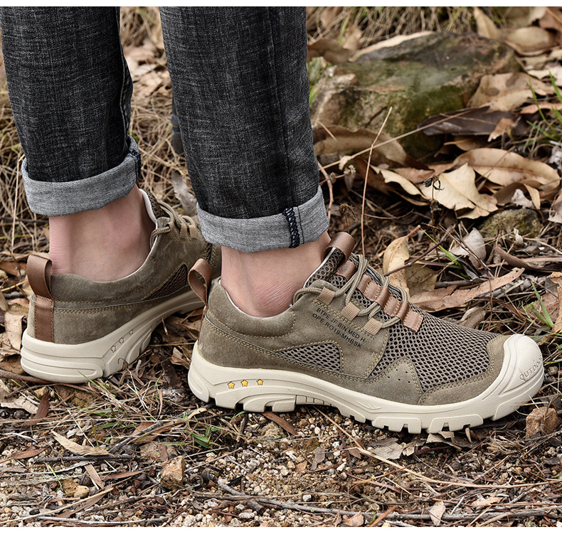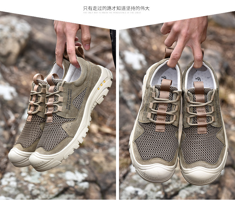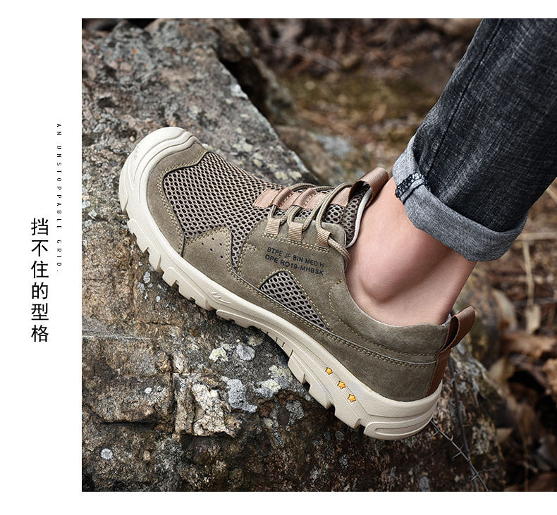 2024 봄과 가을 새로운 플러스 사이즈 구멍 신발 45 46 야외 등산 가죽 통기성 메쉬 남성 패션 크로스 국경 독점스토어 가기