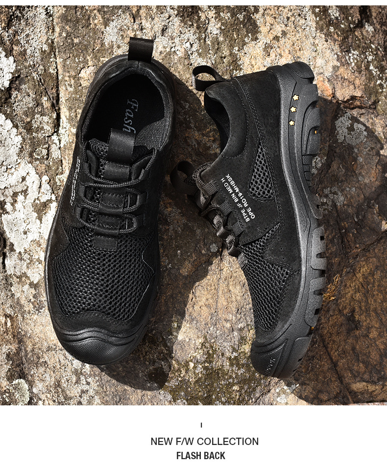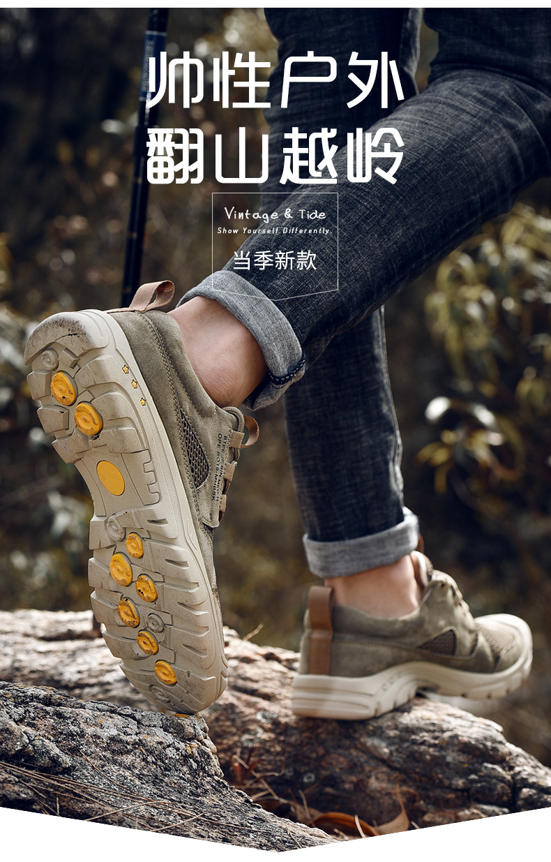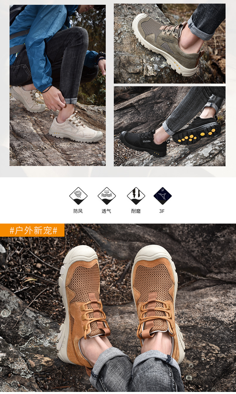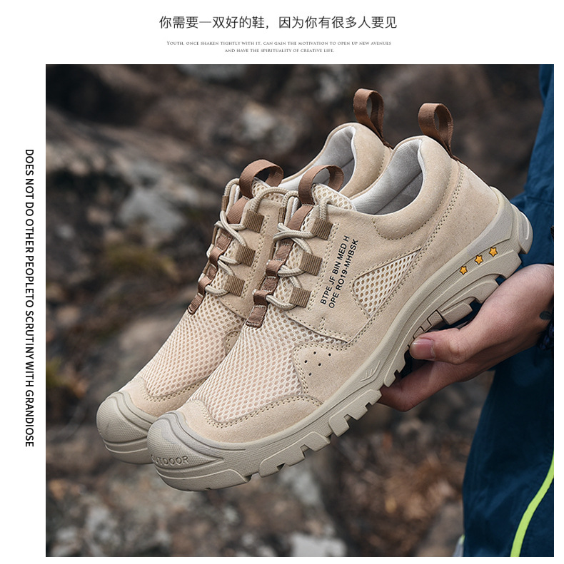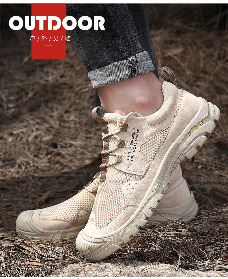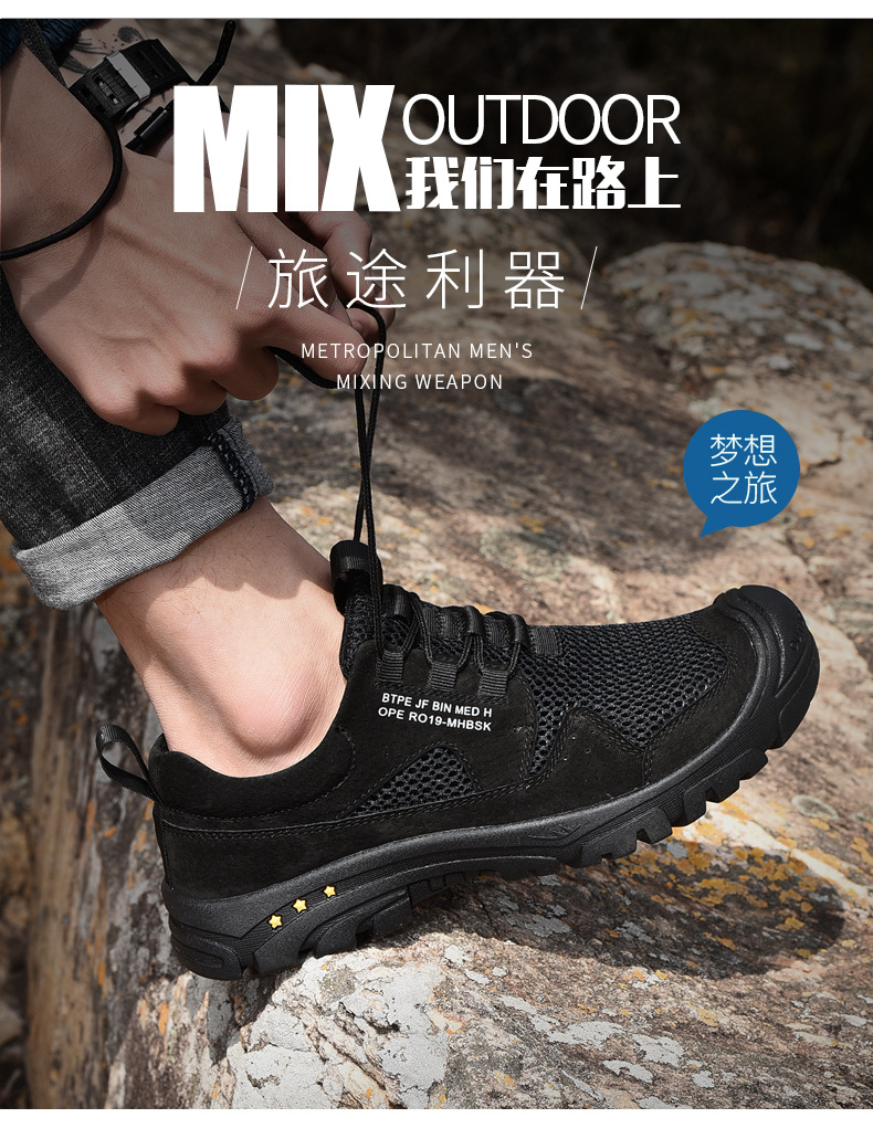2024 봄과 가을 새로운 플러스 사이즈 구멍 신발 45 46 야외 등산 가죽 통기성 메쉬 남성 패션 크로스 국경 독점스토어 가기
