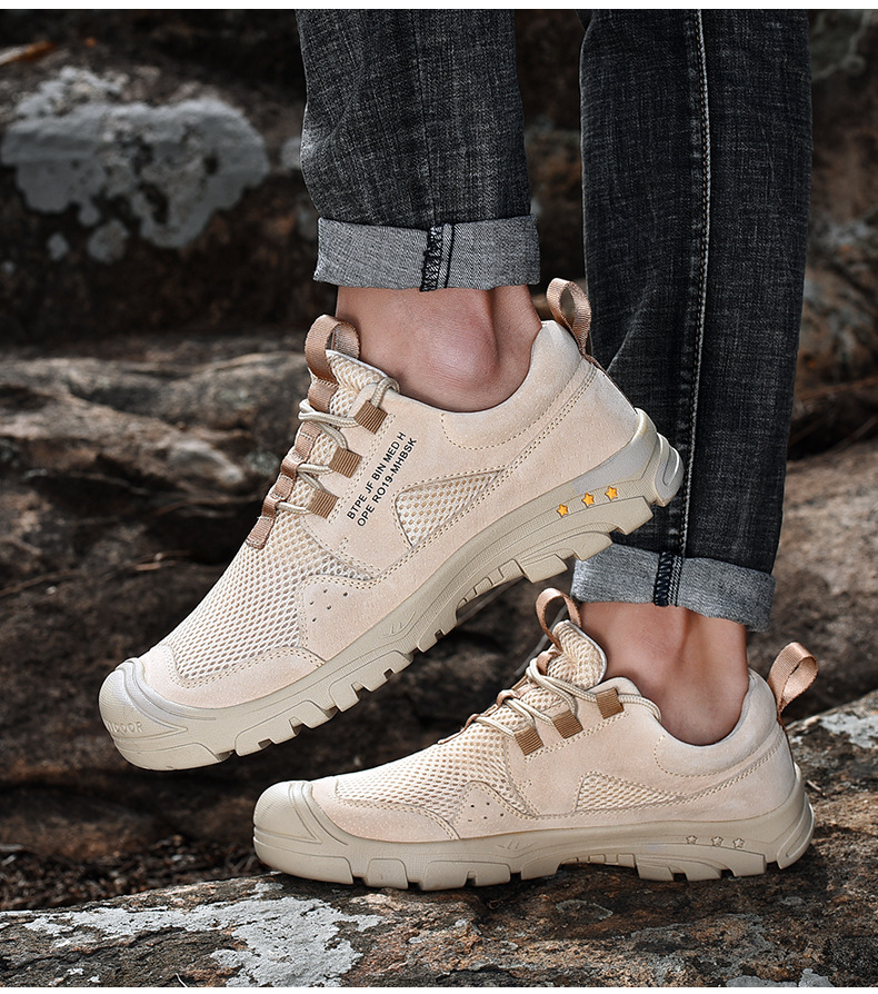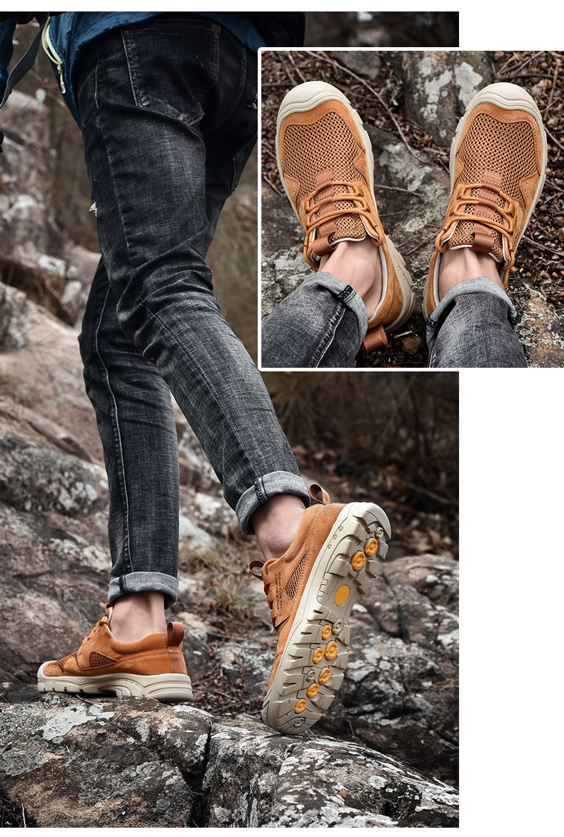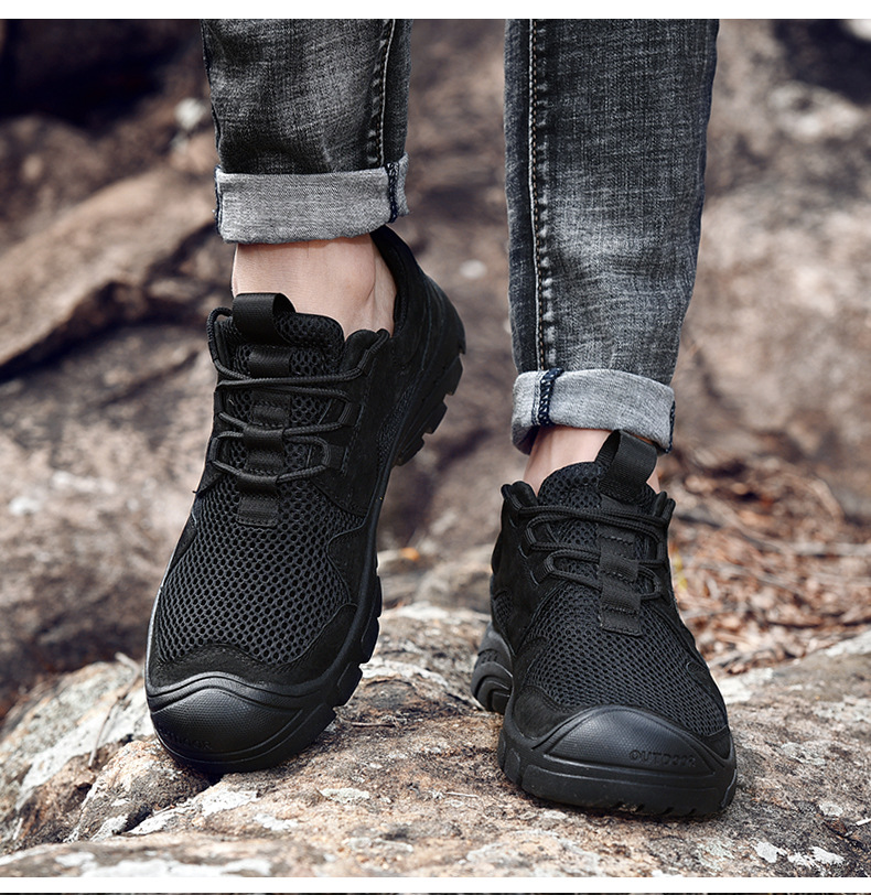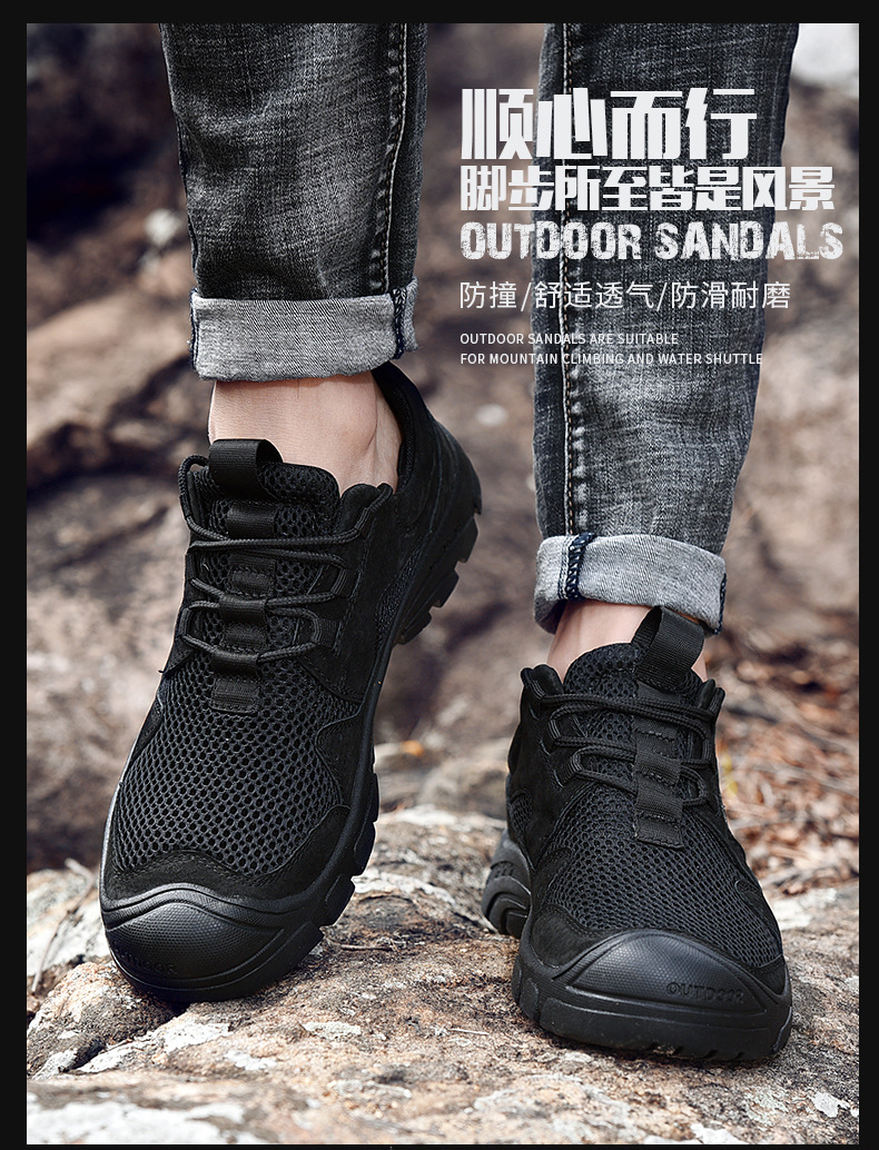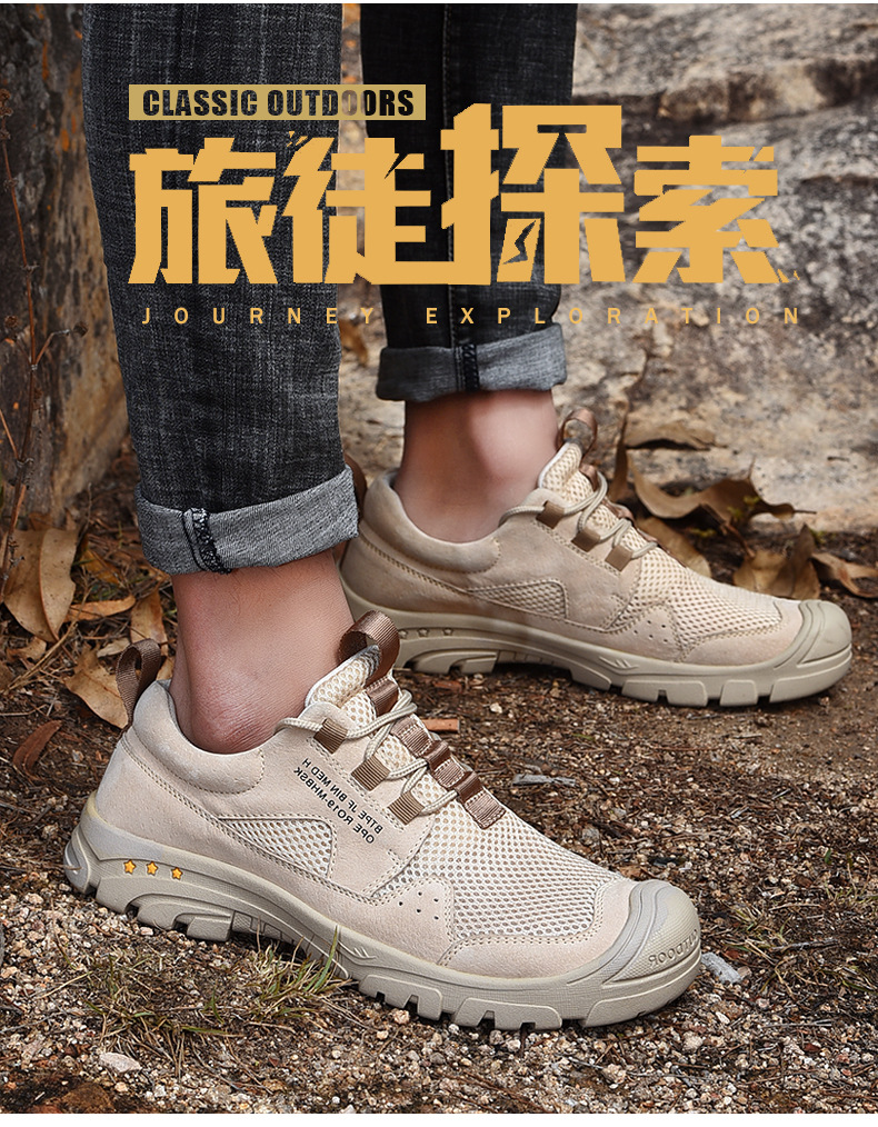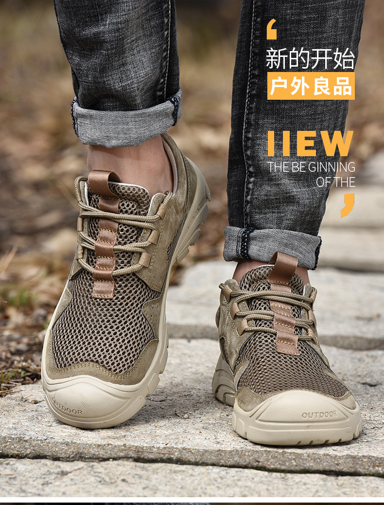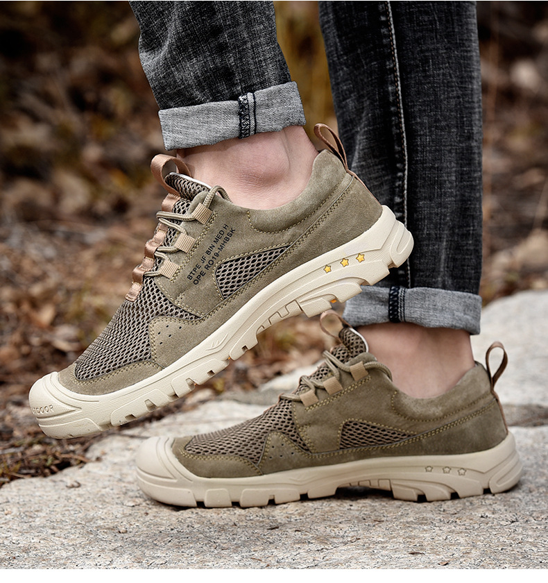 2024 봄과 가을 새로운 플러스 사이즈 구멍 신발 45 46 야외 등산 가죽 통기성 메쉬 남성 패션 크로스 국경 독점스토어 가기