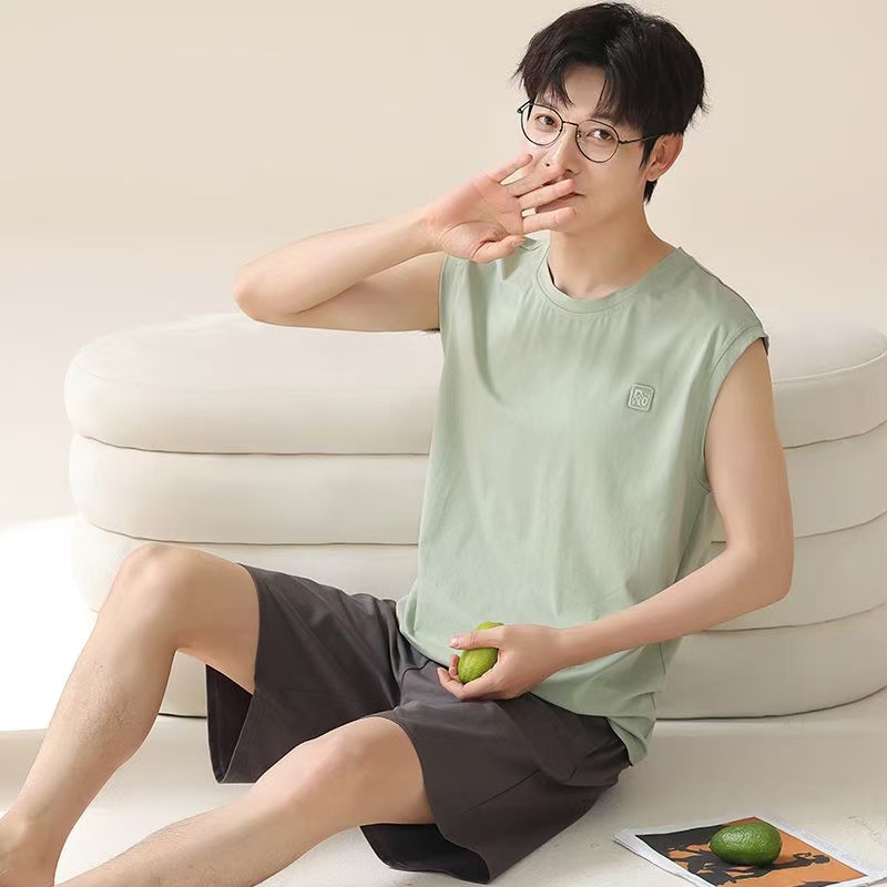모달 남성 잠옷 남성 여름 2025 새로운 조끼 대형 사이즈는 얼음 실크 봄, 가을 가정 의류 외부에 착용 가능
