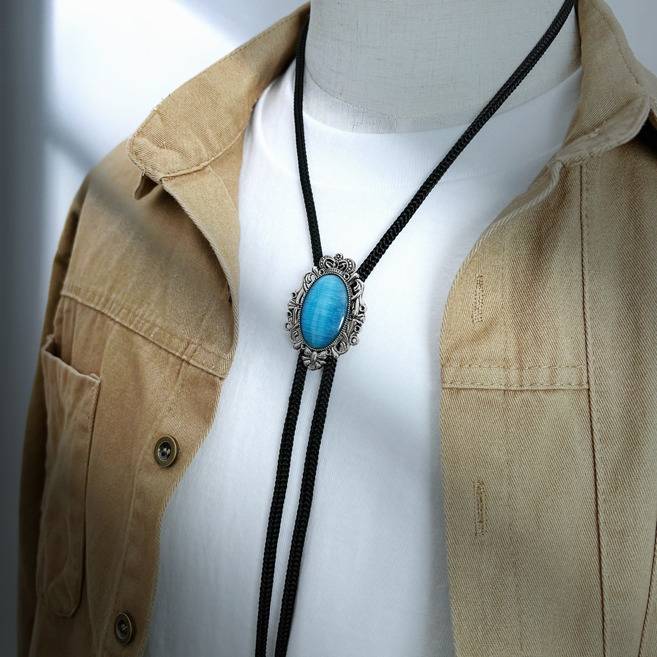 남성 패션 폴로 넥타이 매일 싱글 목걸이 웨스턴 데님 폴로 타이 독특한 타이 코드스토어 가기