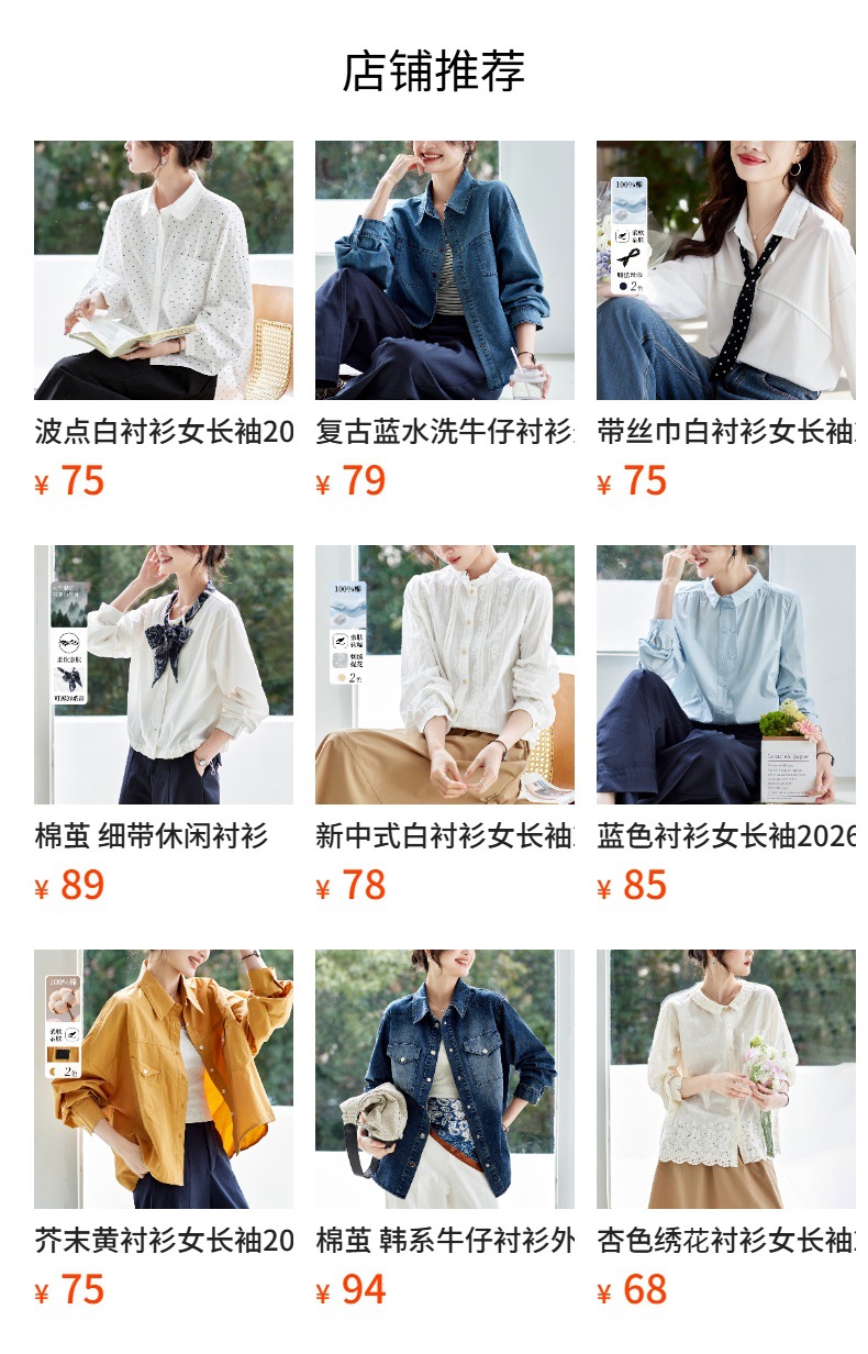 공장 직판 여성용 흰색 긴팔 셔츠 2026 봄 신상품 작은 사이즈 틈새시장 상품 한국 스타일 순면 셔츠스토어 가기