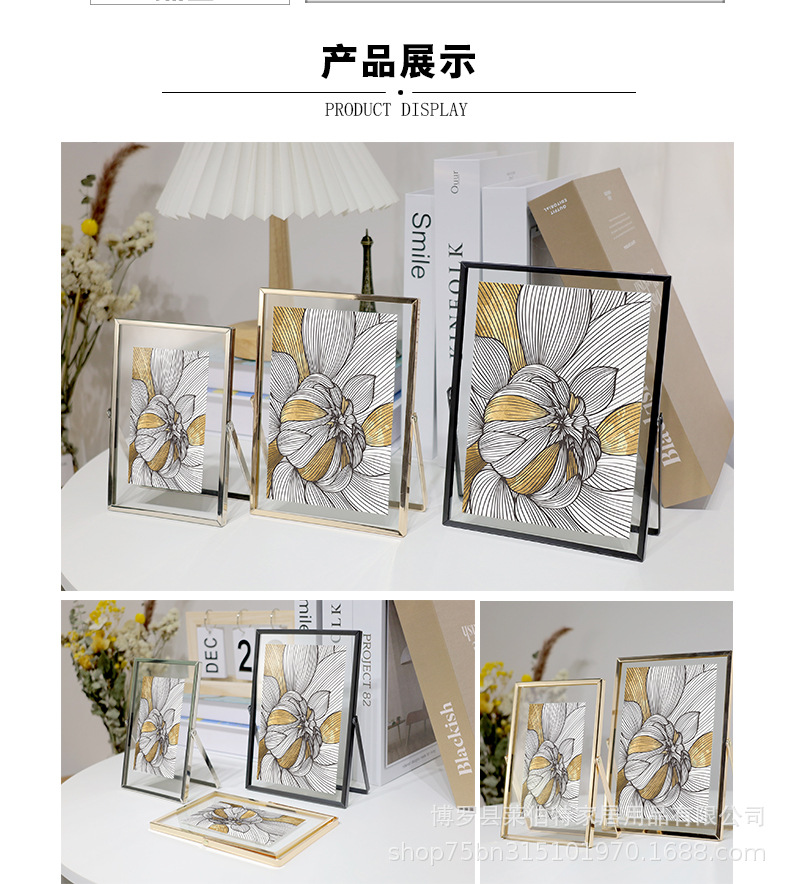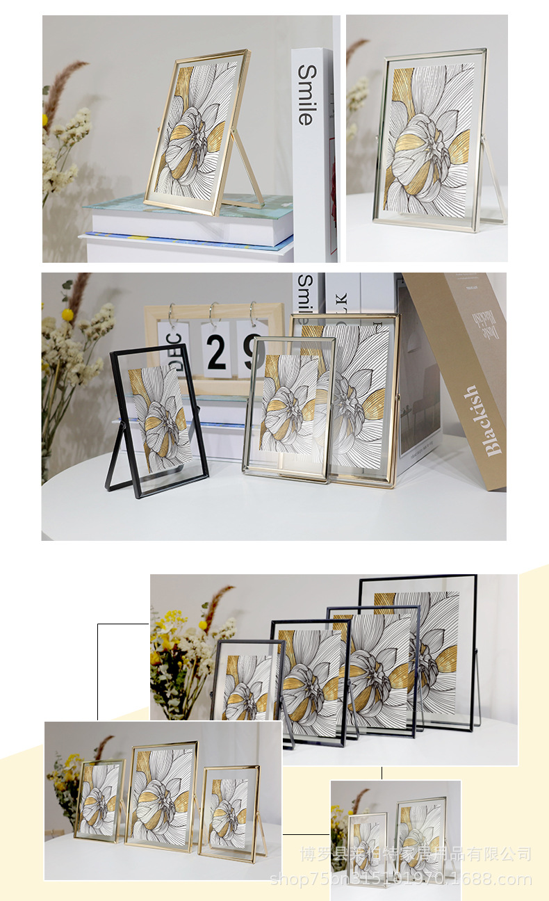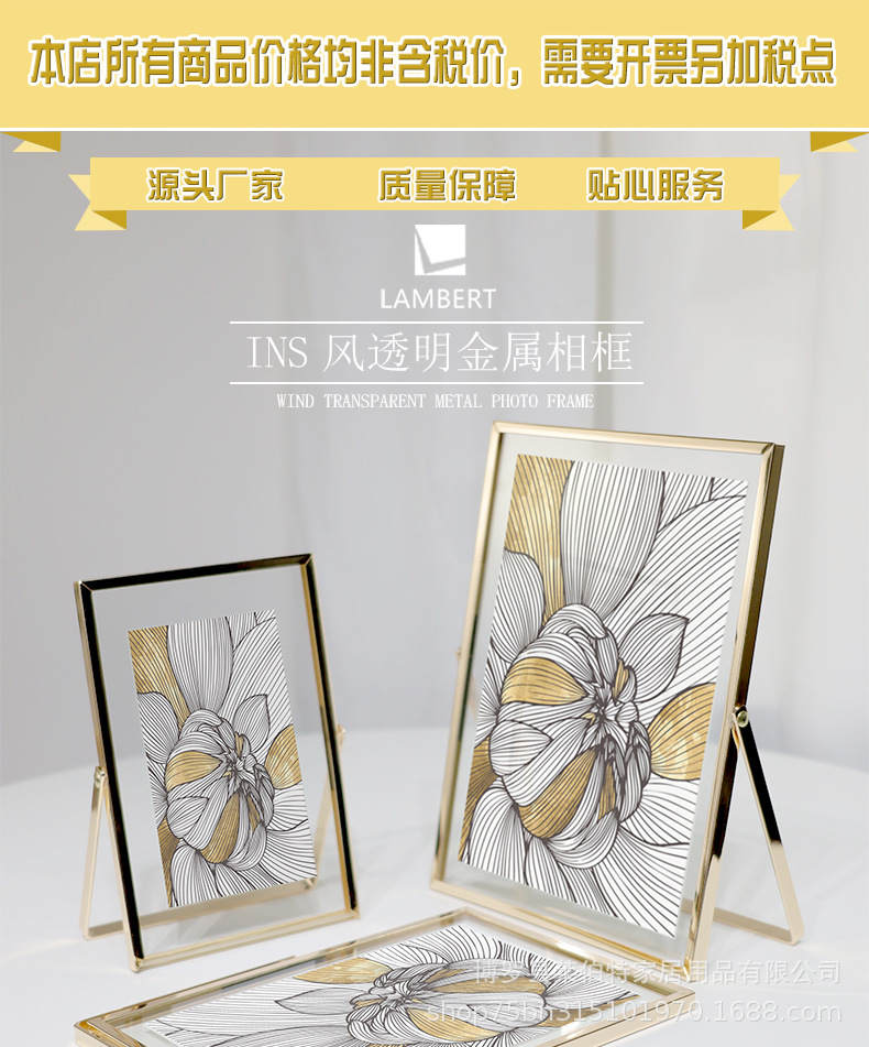 제조 업체 도매 간단한 프레임 유리 투명 사진 프레임 6 인치 7inch 8inch 사진 앨범 장식품 금속 테이블 사용자 정의스토어 가기