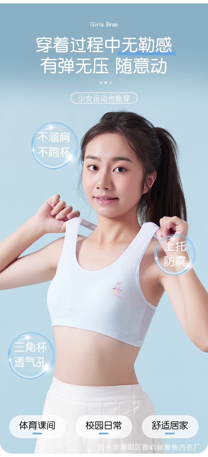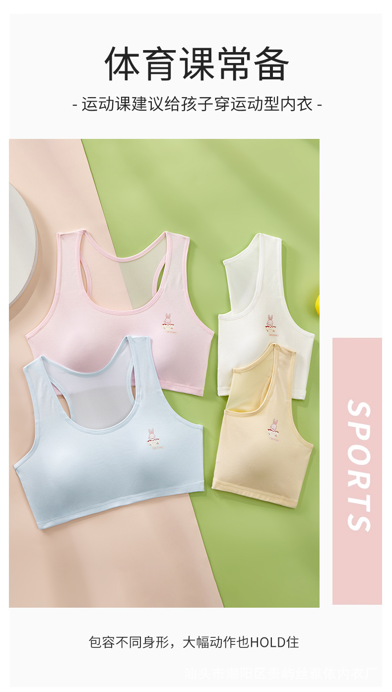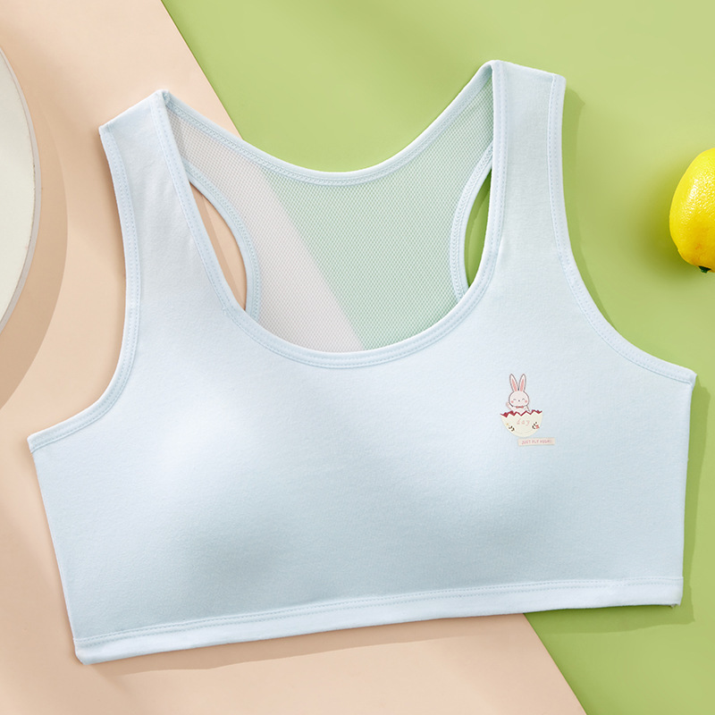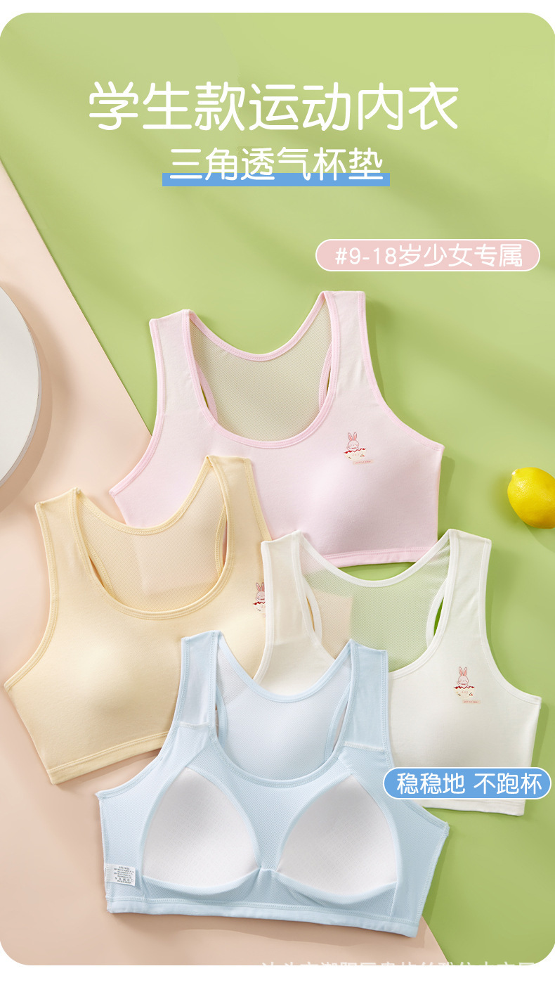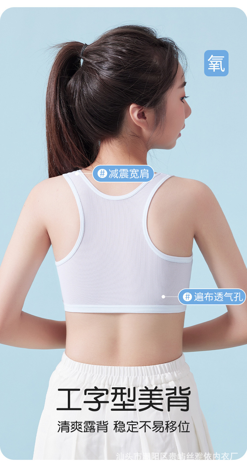 소녀의 스포츠 개발 중 학생들을위한 I 자형 조끼, 무선 고정 컵, 통기성 기지, 소녀의 가슴 포장 브래지어
