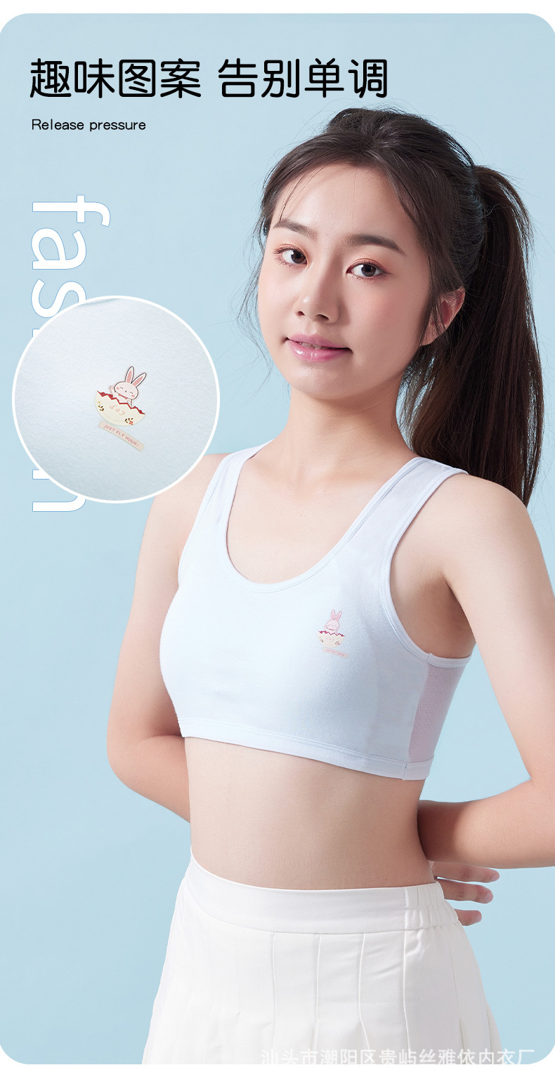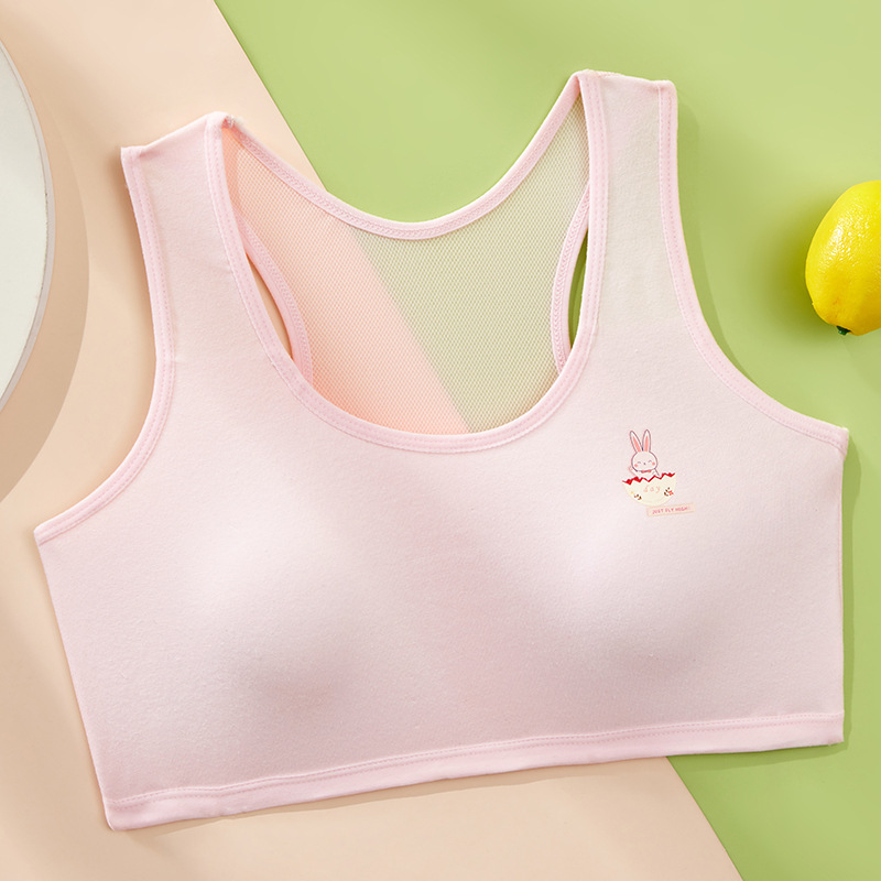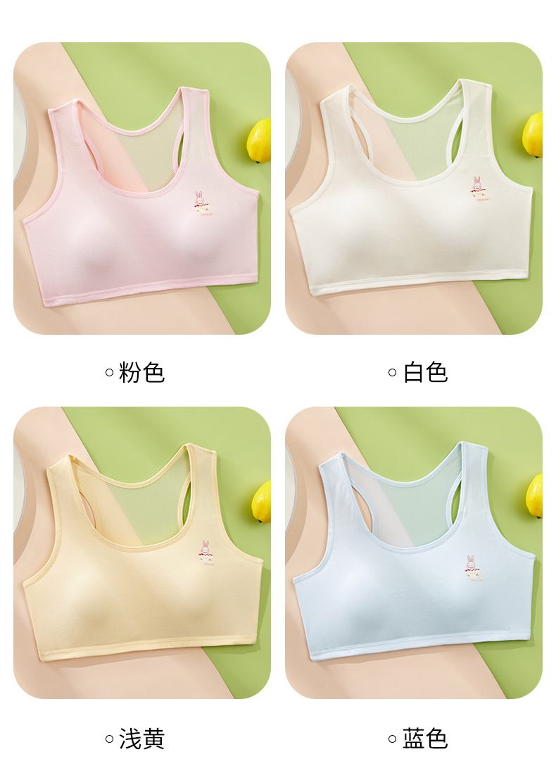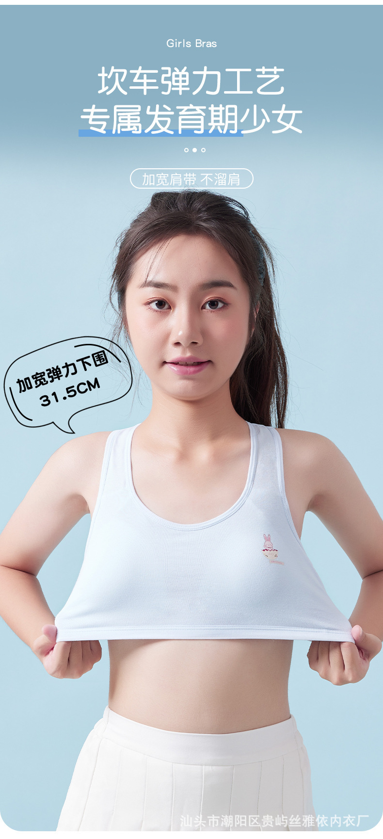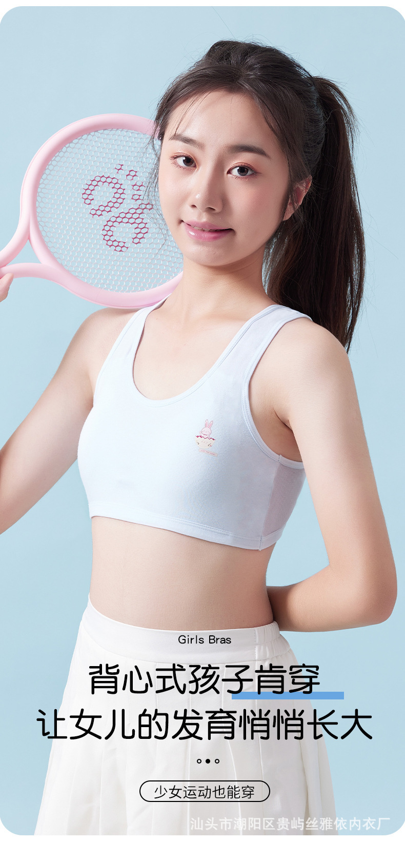 소녀의 스포츠 개발 중 학생들을위한 I 자형 조끼, 무선 고정 컵, 통기성 기지, 소녀의 가슴 포장 브래지어