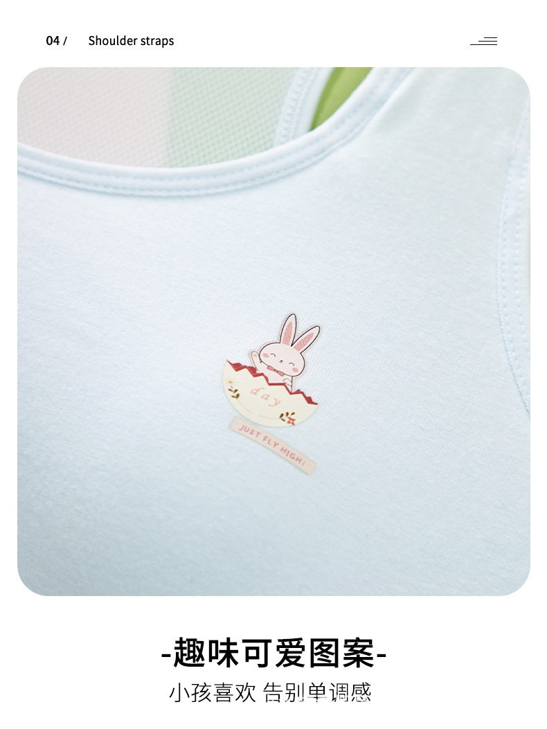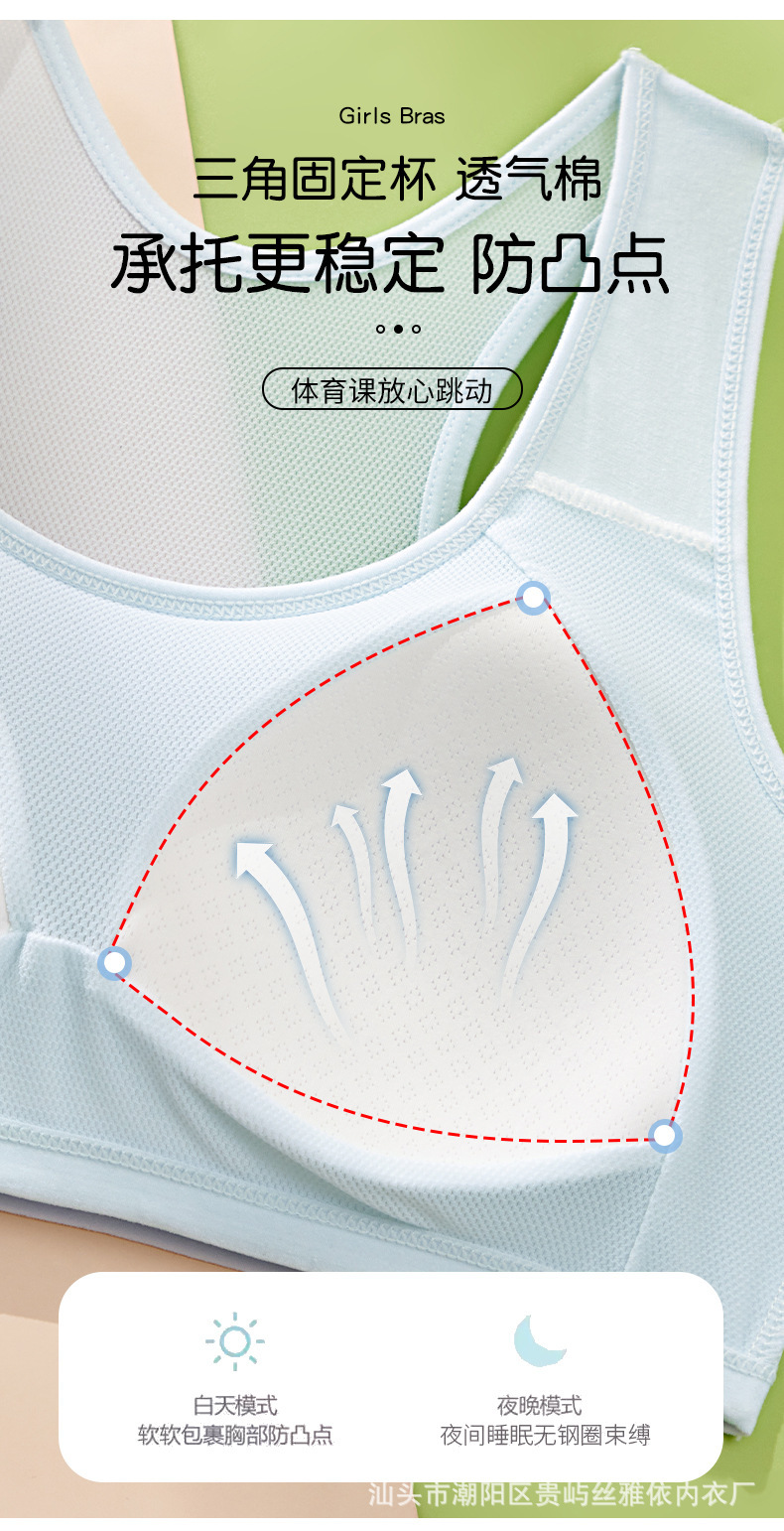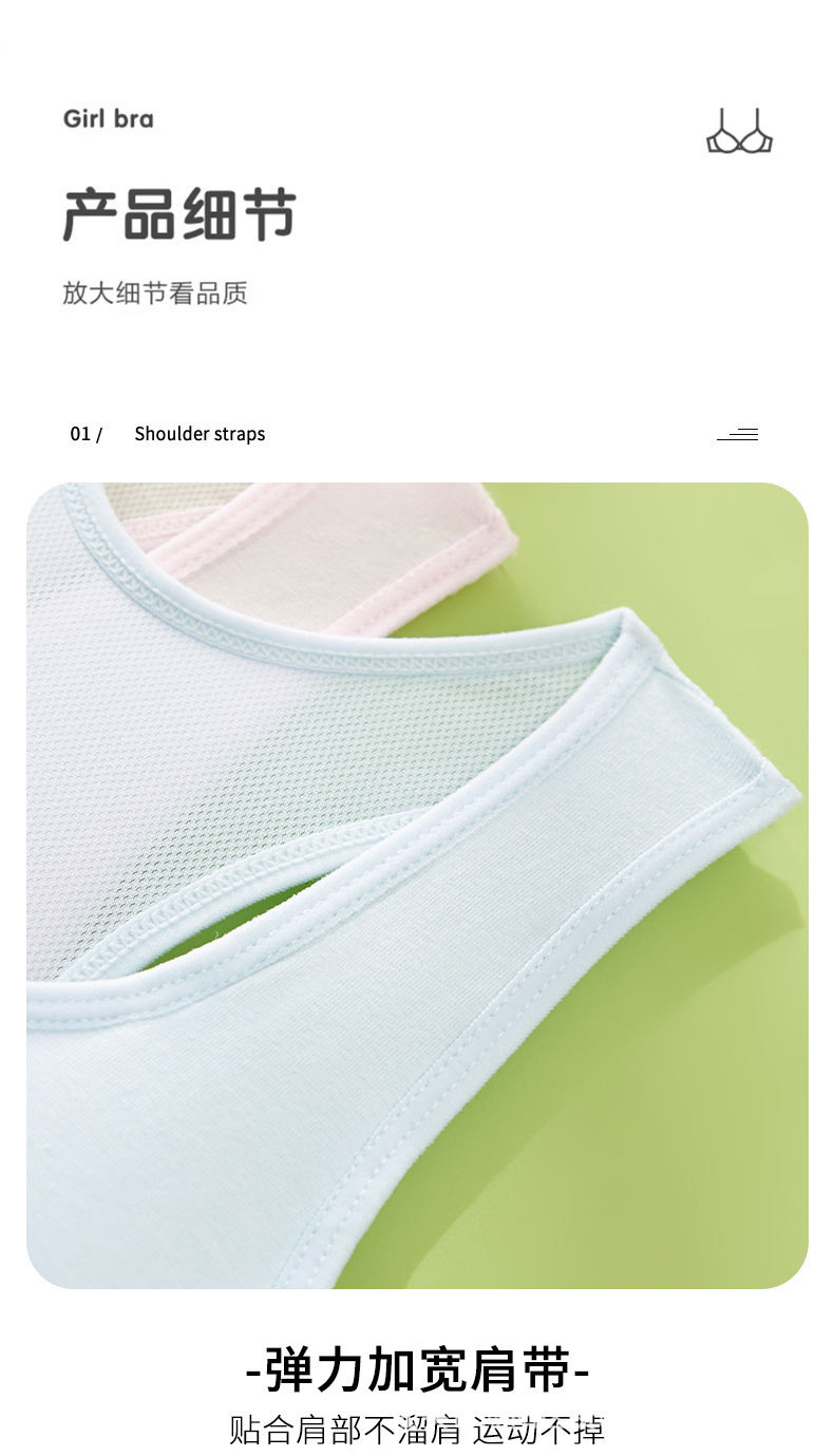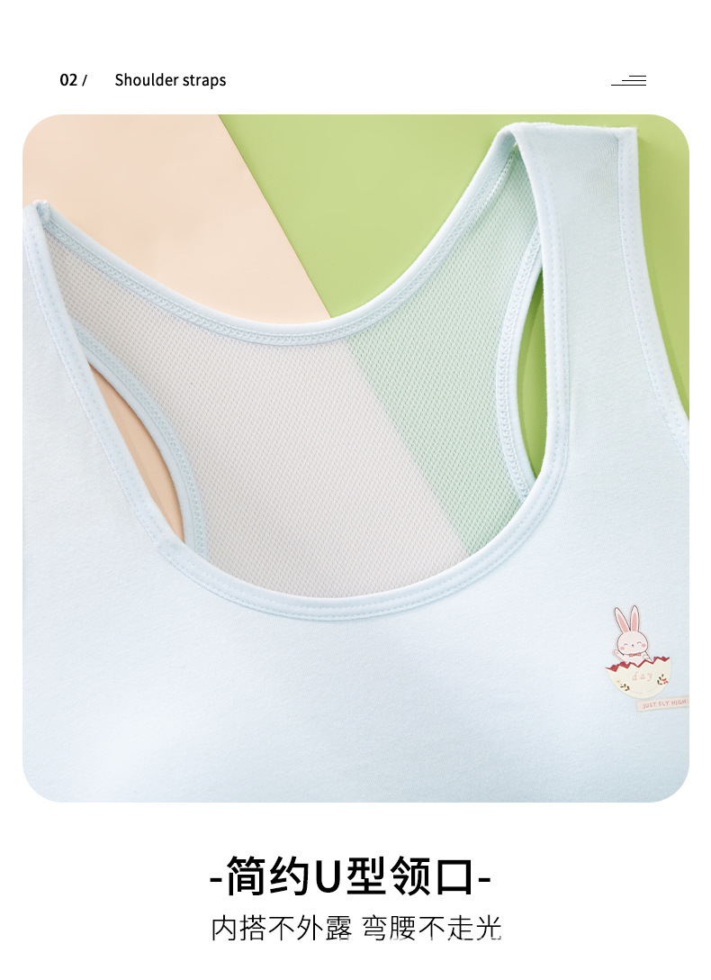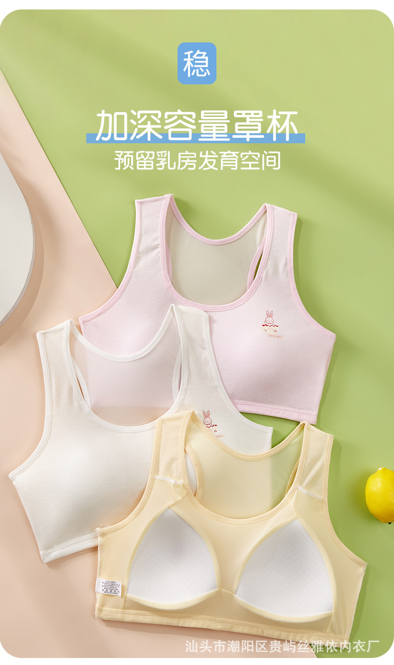 소녀의 스포츠 개발 중 학생들을위한 I 자형 조끼, 무선 고정 컵, 통기성 기지, 소녀의 가슴 포장 브래지어