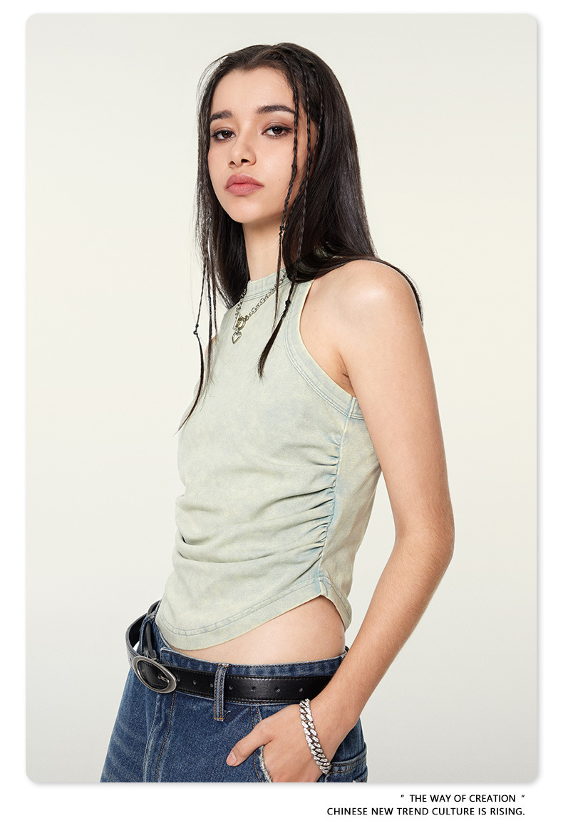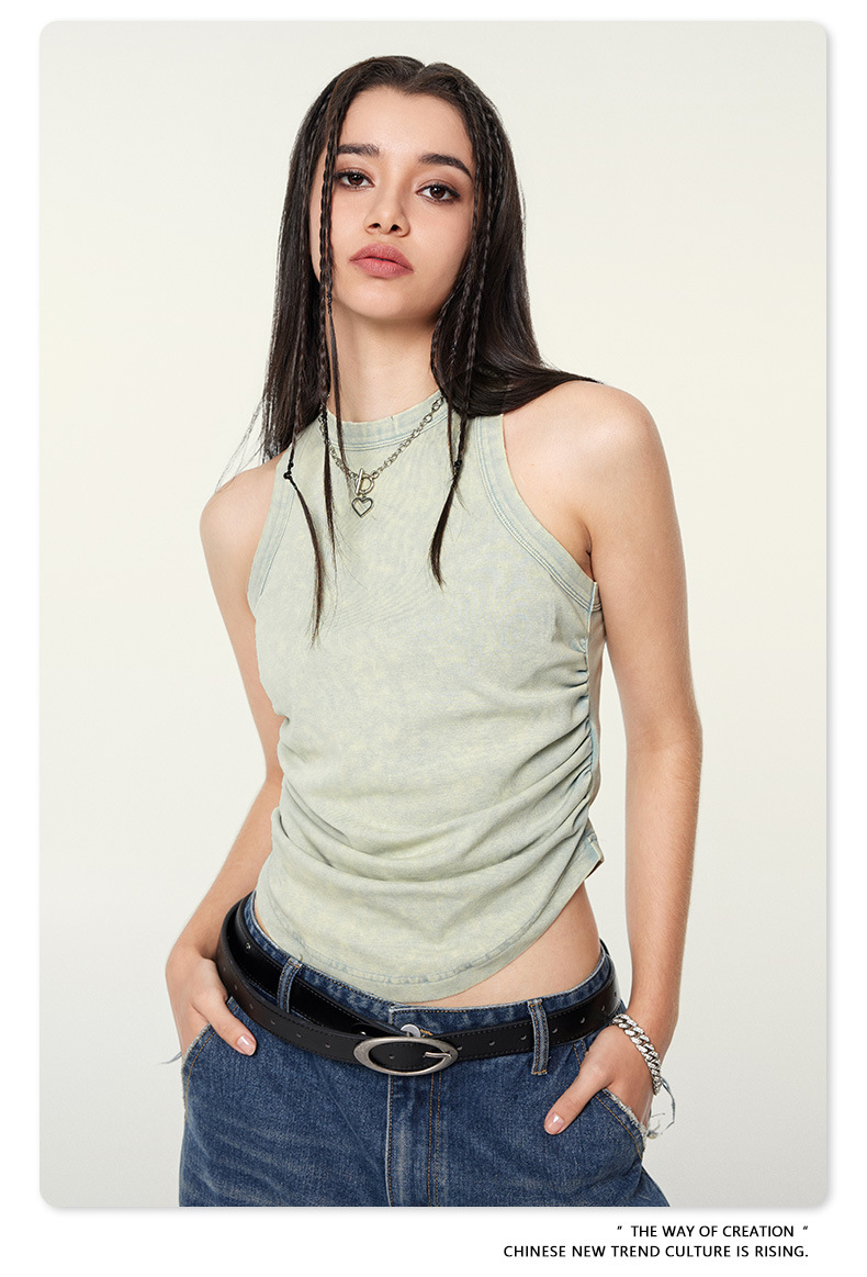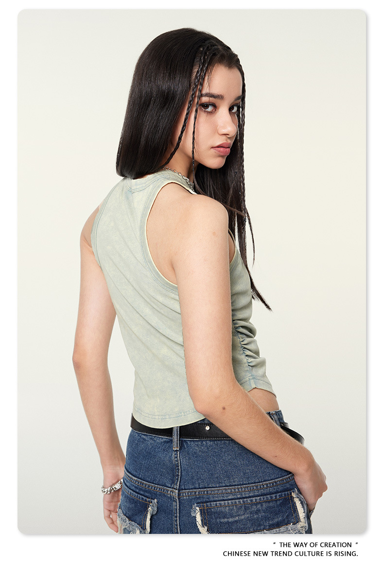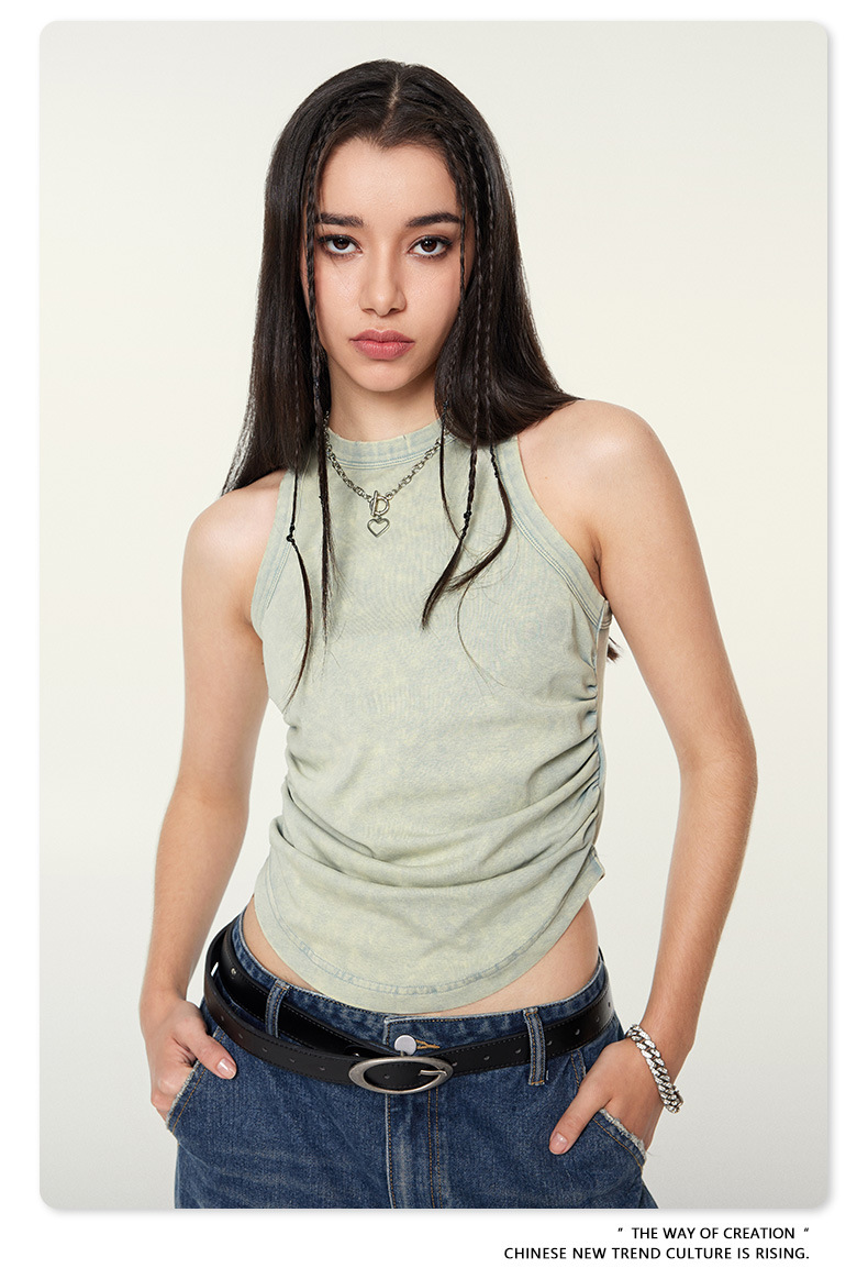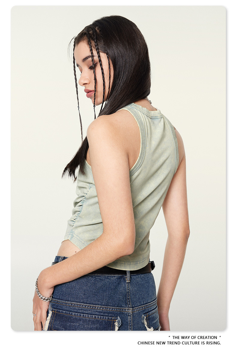 여성복 | 2025 봄/여름 신상 미국풍 빈티지 스타일 여성용 섹시한 주름 조끼스토어 가기