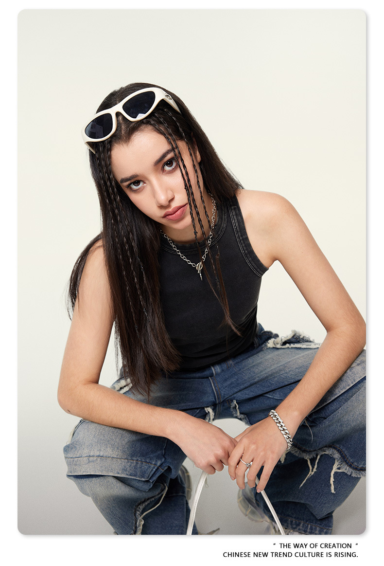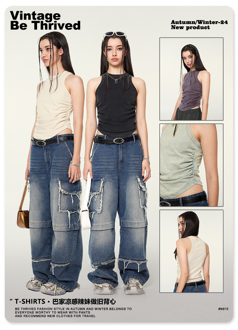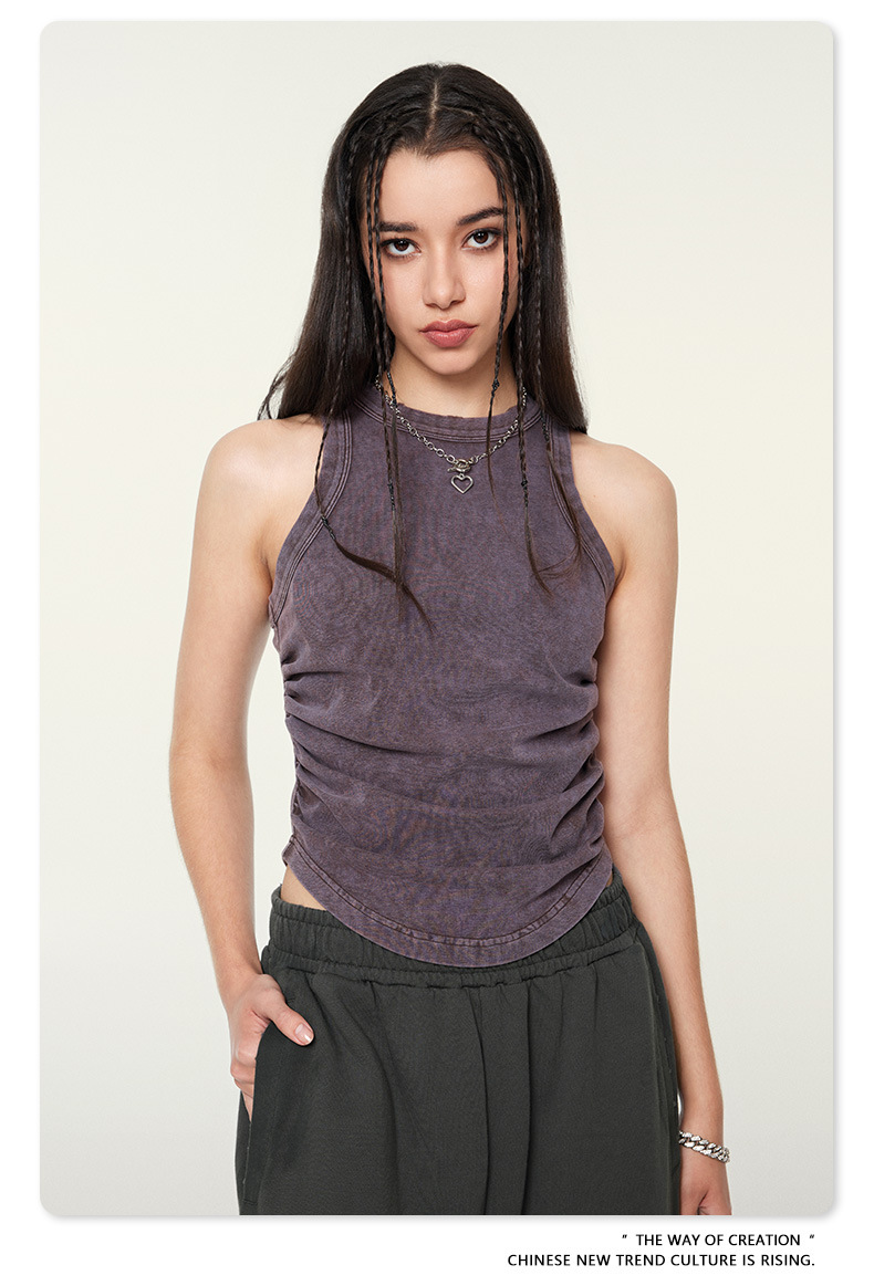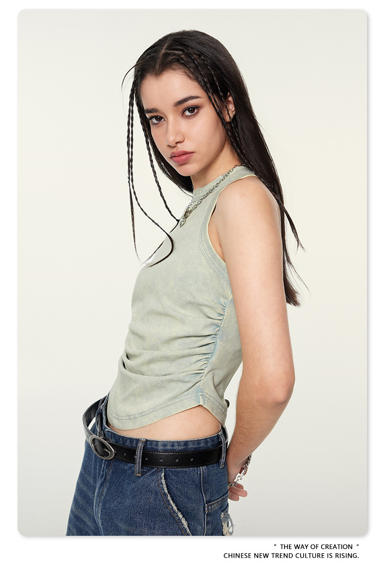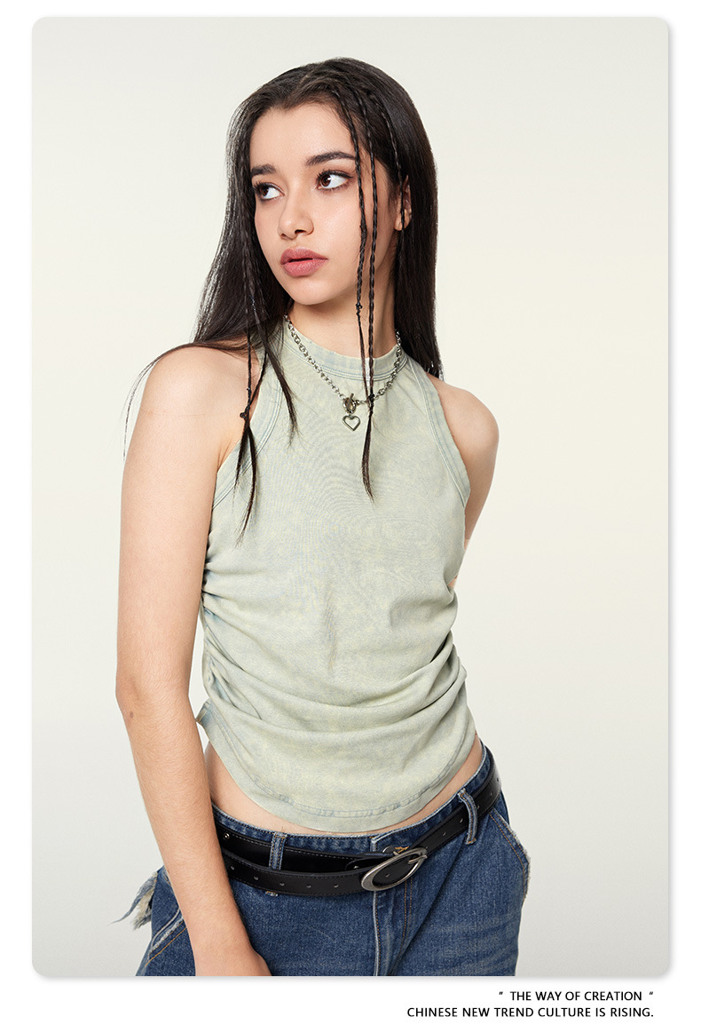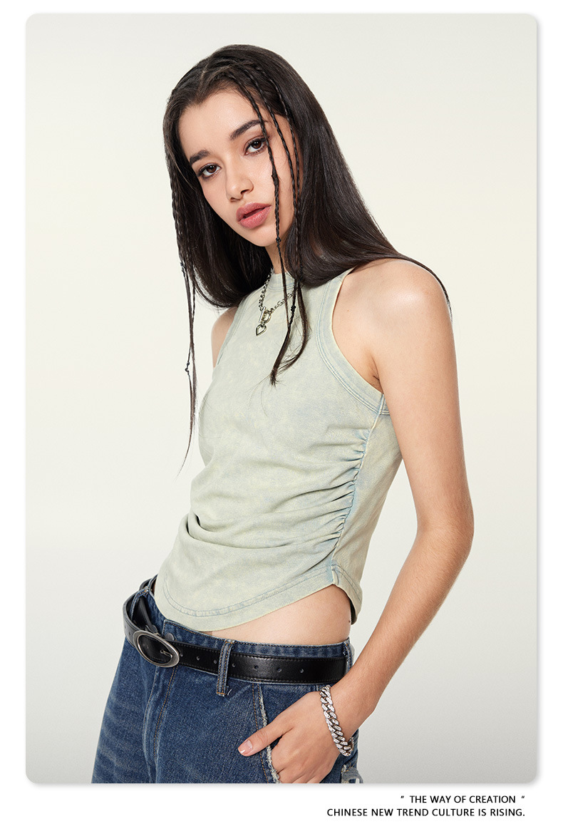 여성복 | 2025 봄/여름 신상 미국풍 빈티지 스타일 여성용 섹시한 주름 조끼스토어 가기