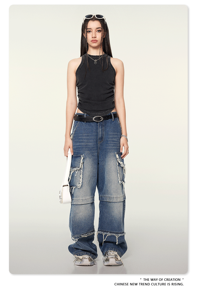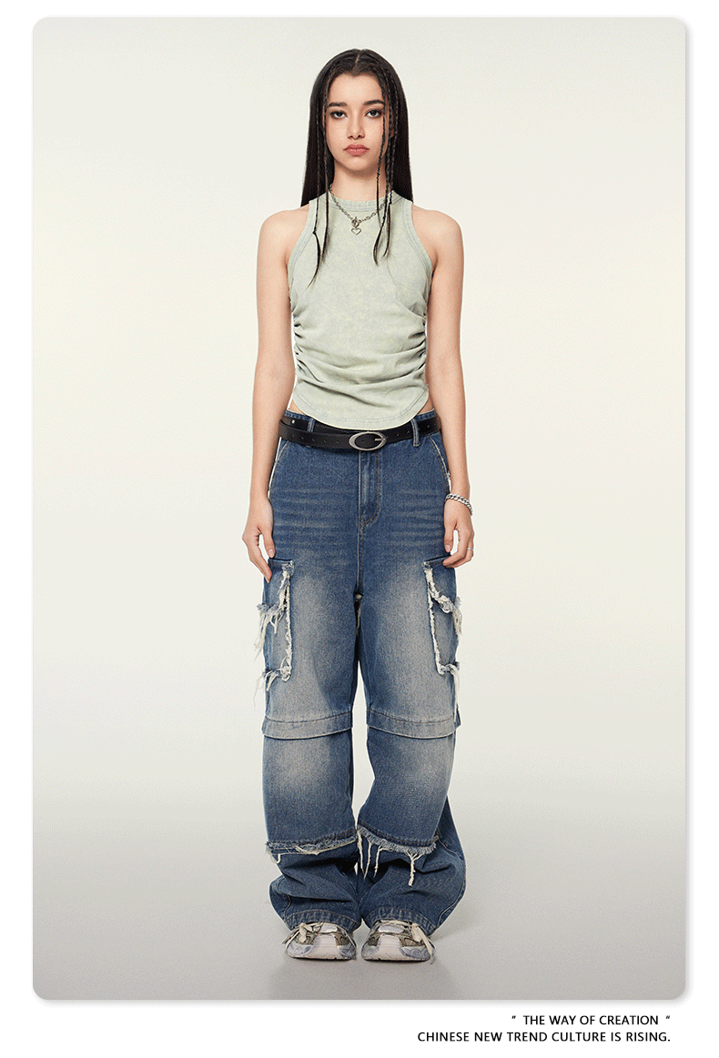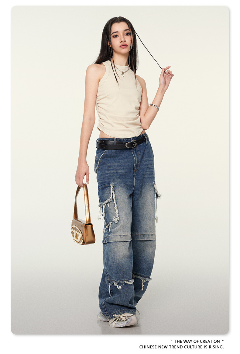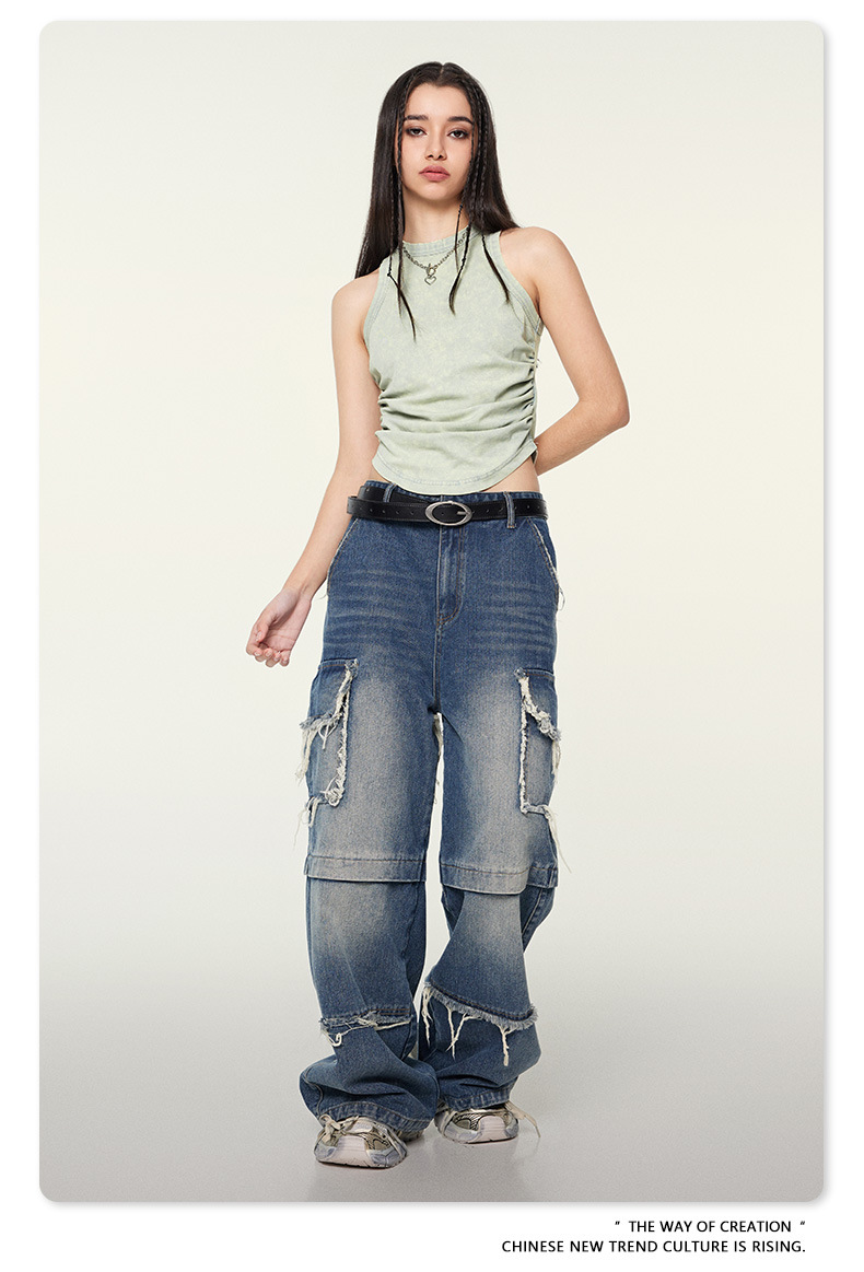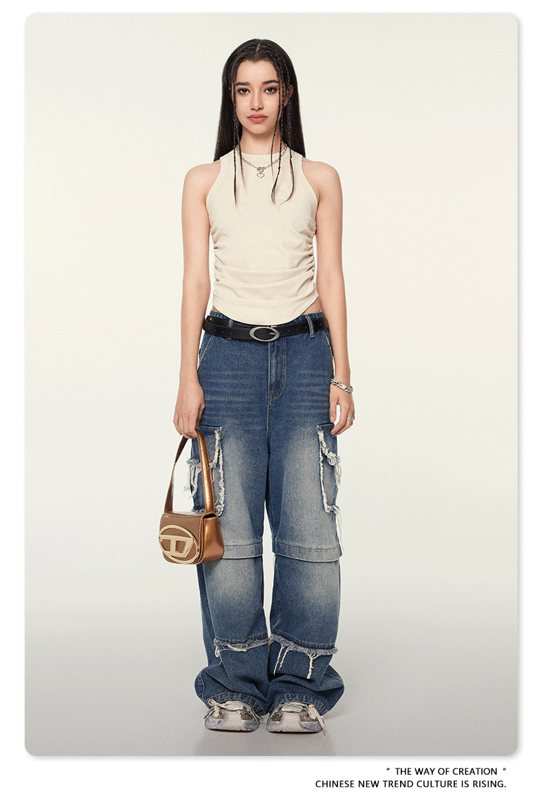 여성복 | 2025 봄/여름 신상 미국풍 빈티지 스타일 여성용 섹시한 주름 조끼스토어 가기