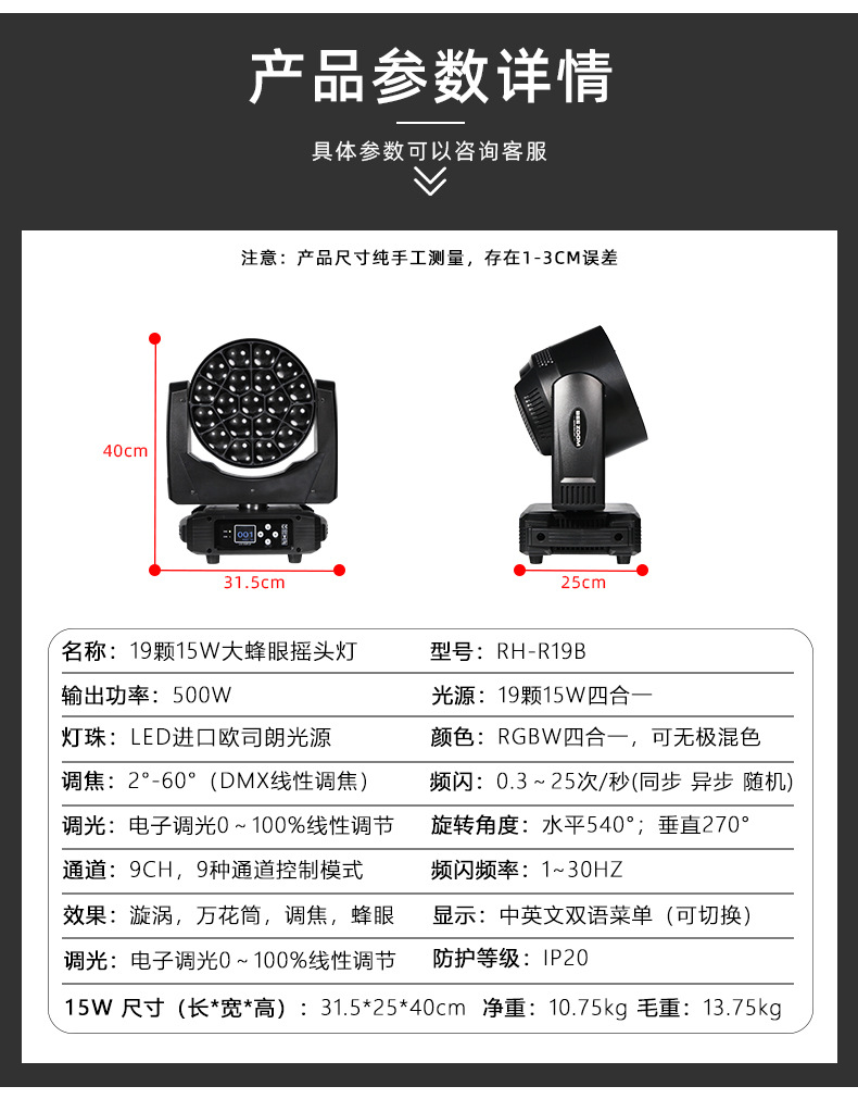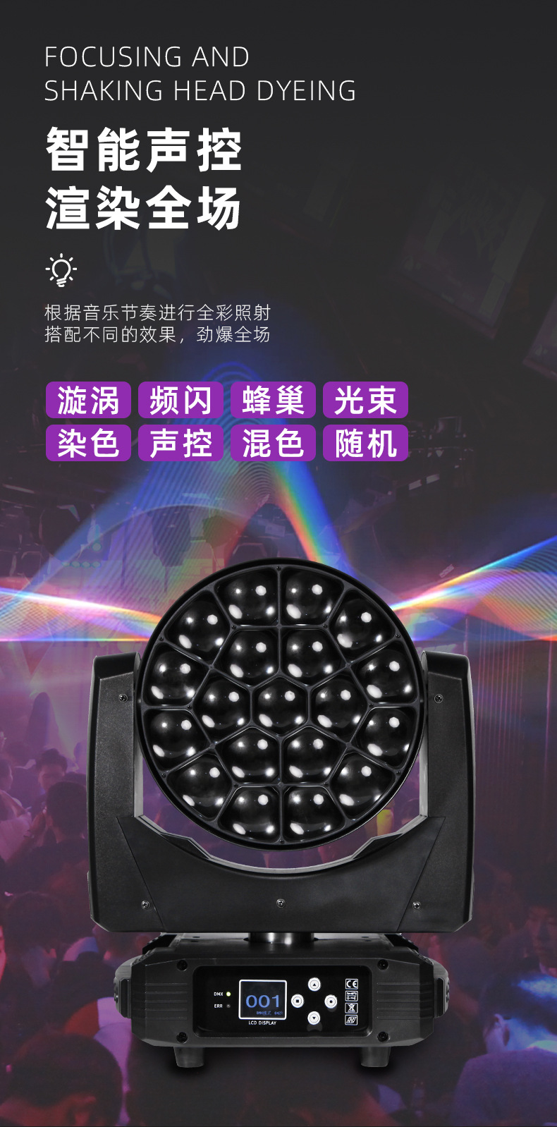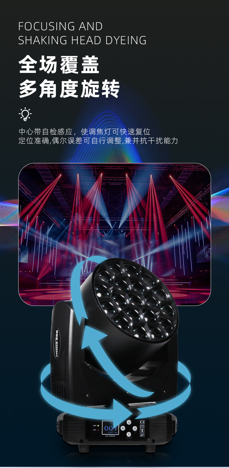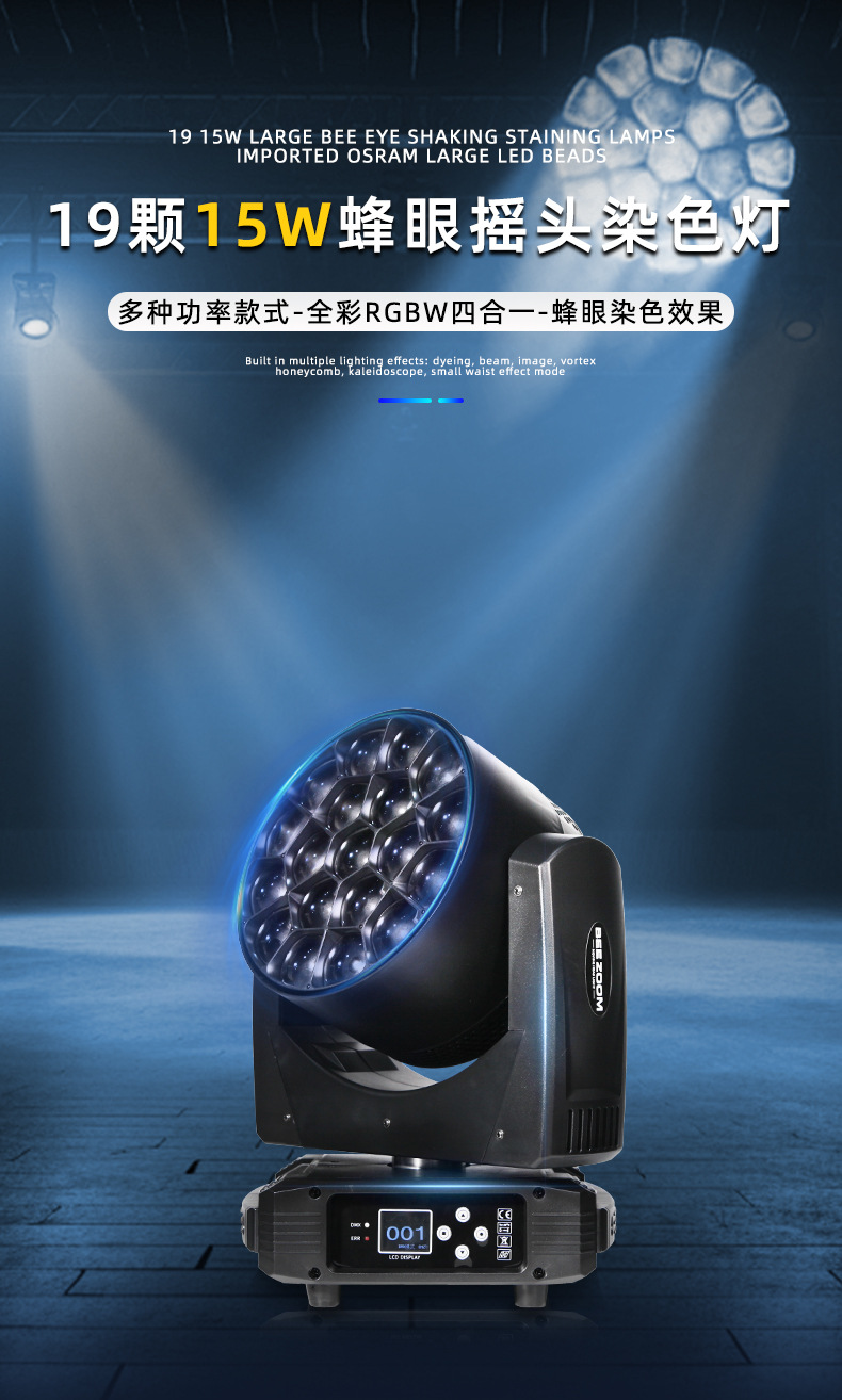 19 15W 흔들리는 머리 꿀벌 눈 초점 풀 컬러 염색 무대 바 led 화려한 회전 분위기 스포트라이트 무대 램프