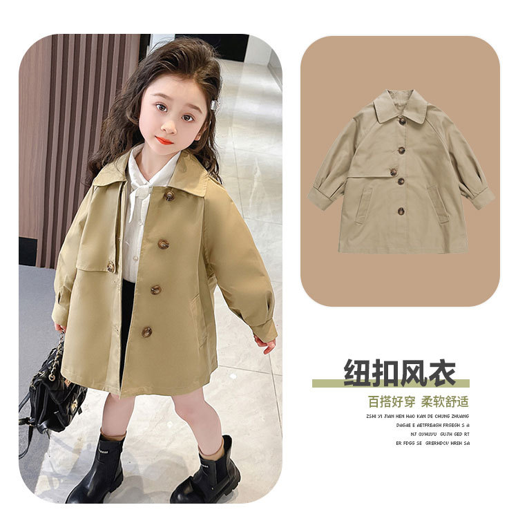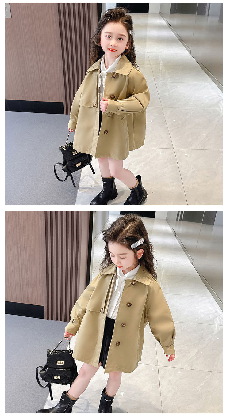 국경 간 어린이 코트 원피스 배달 봄 새로운면 중간 길이의 단색 윈드 브레이커 한국식 베이비 코트스토어 가기