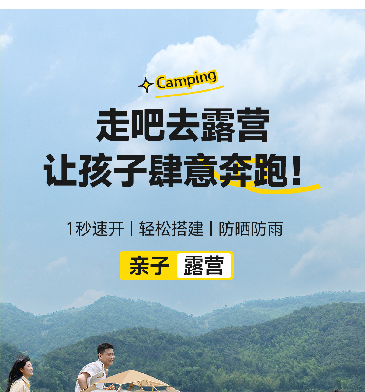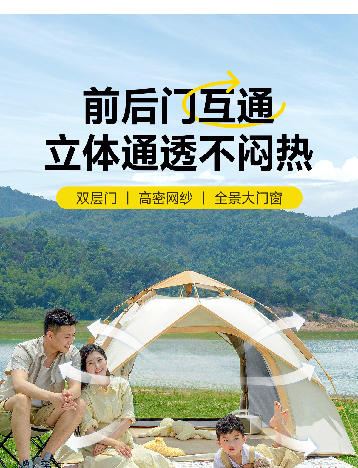 야외 캠핑, 봄나들이, 어린이 해변 그늘막, 방수 피크닉 캠핑 텐트 등에 필수품인 텐트.