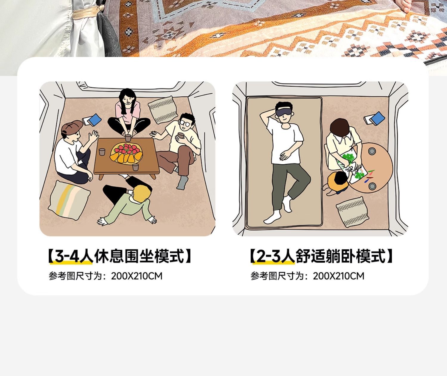 • 1 텐트 + 1 방습 매트 + 피크닉 매트