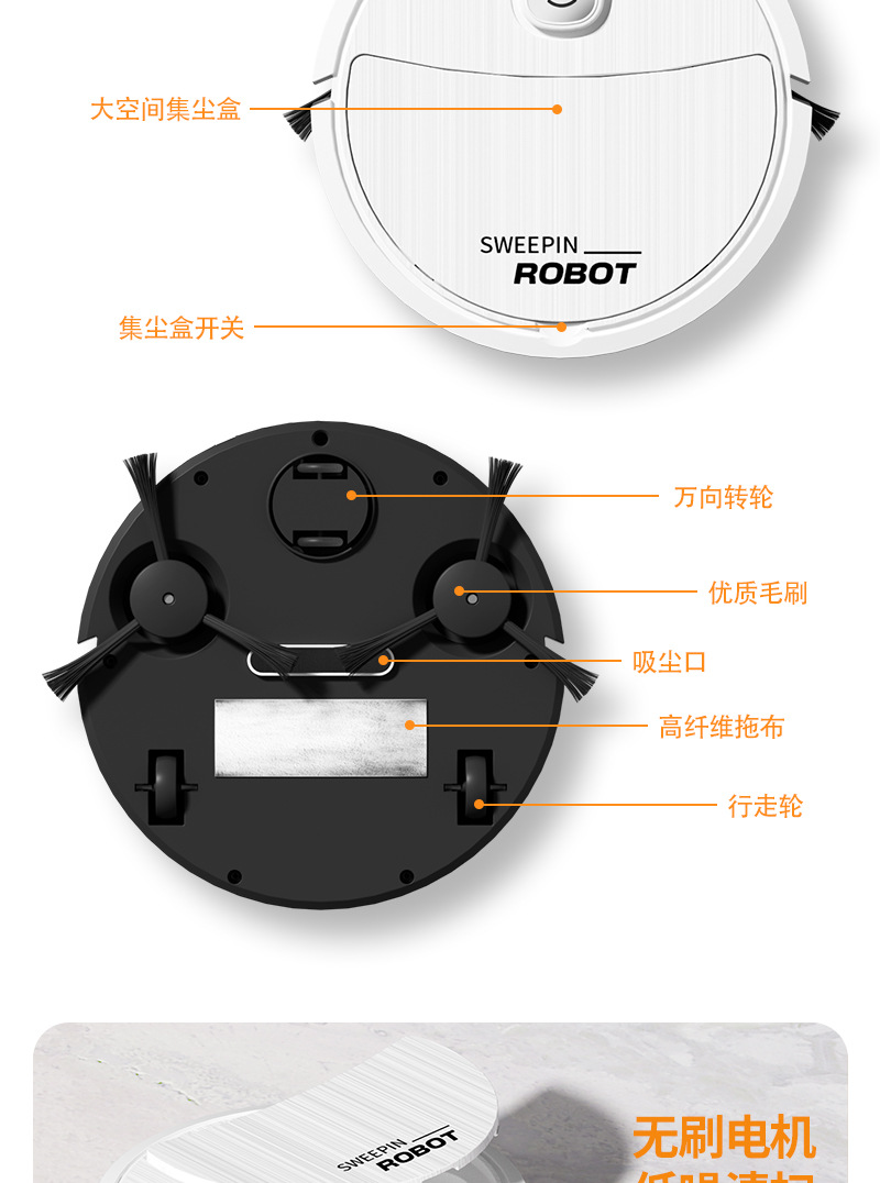 국경 독점 판매 지능형 청소 로봇 청소, 흡입 및 드래그 통합 새로운 자동 가정용 지능형 진공 청소기