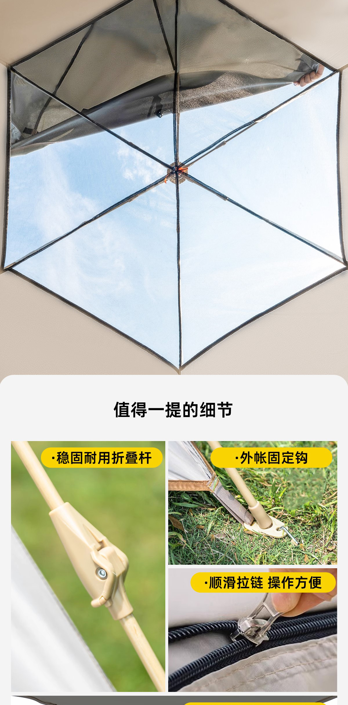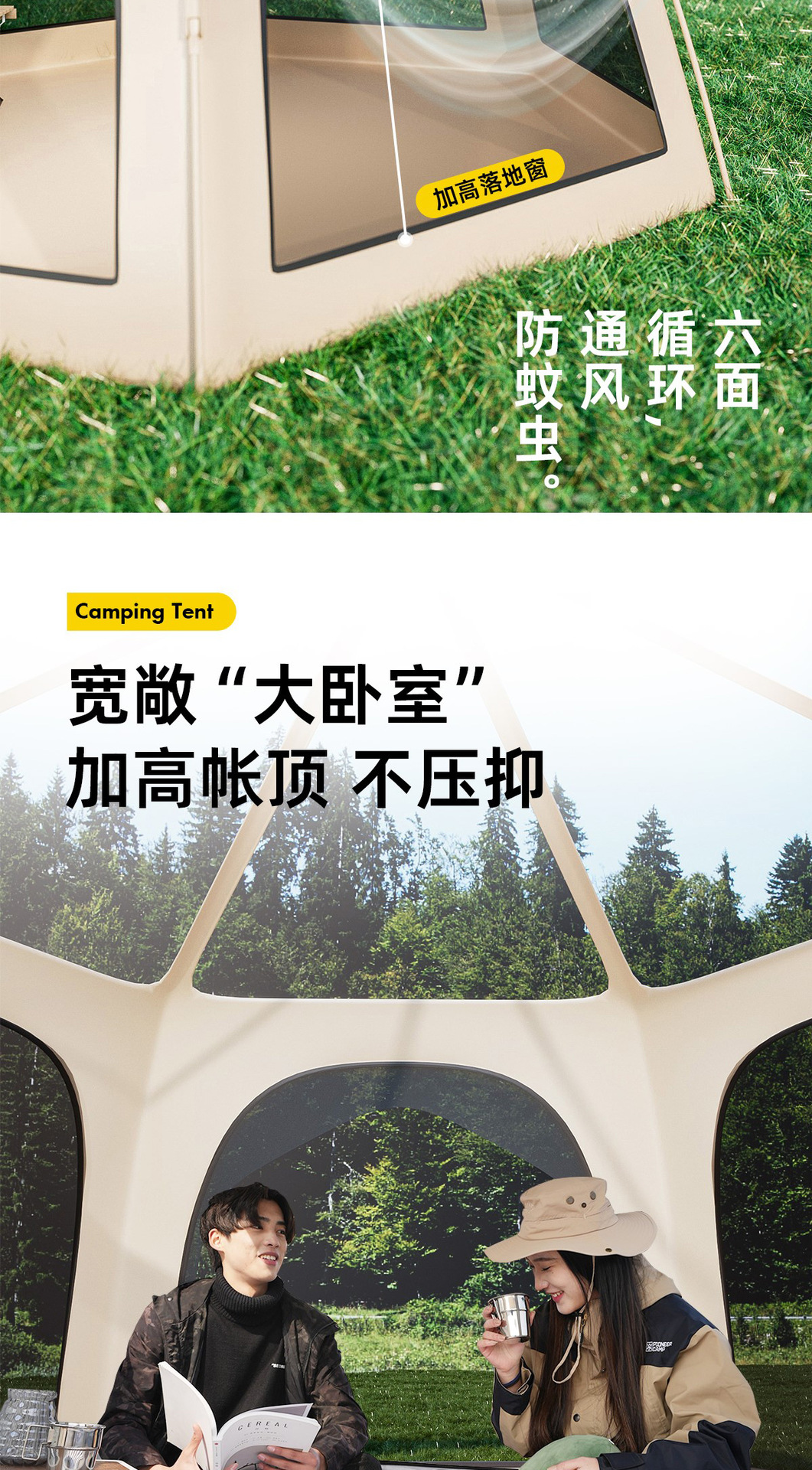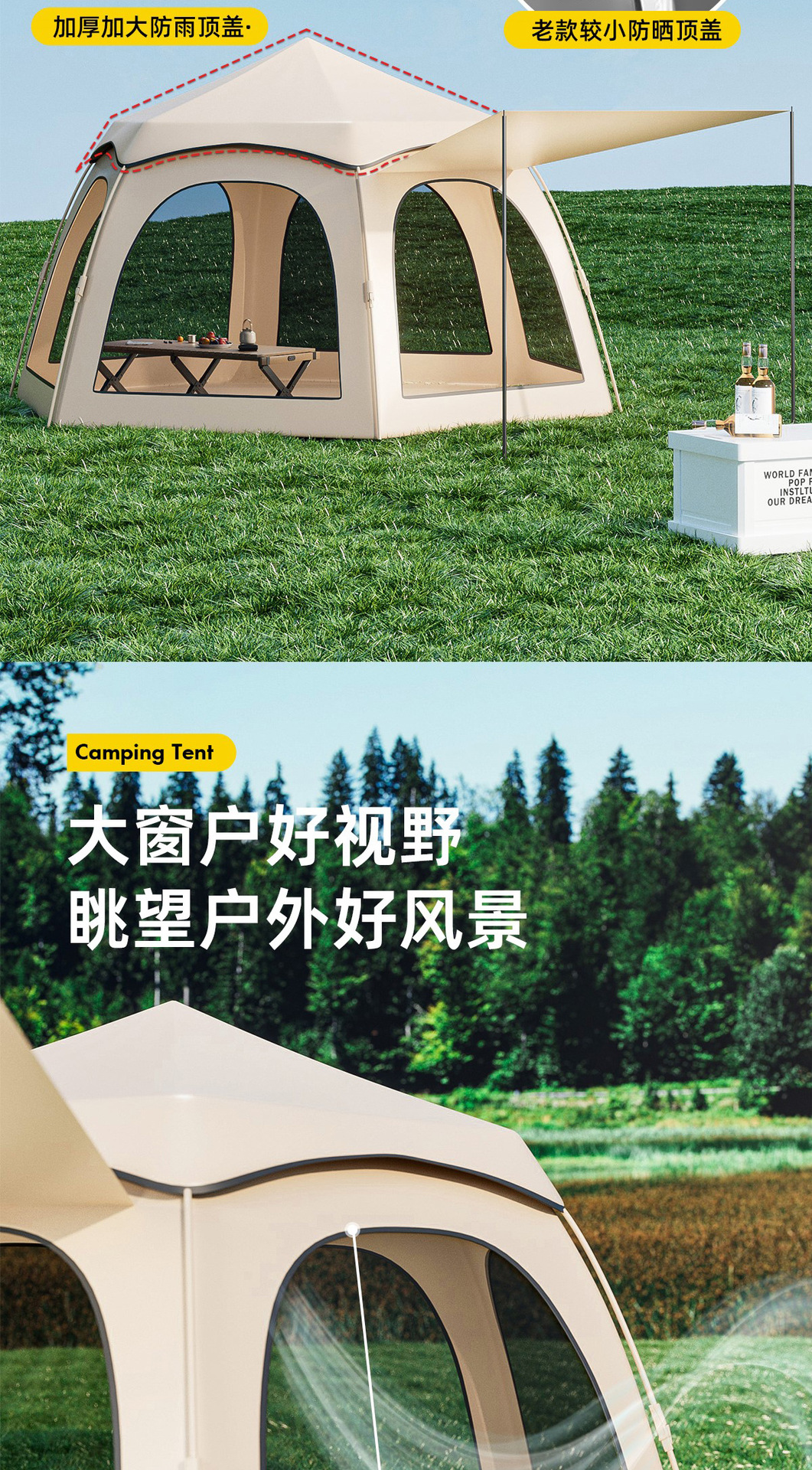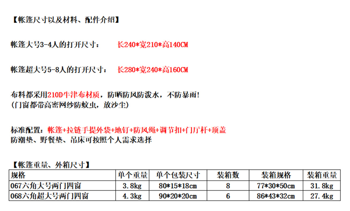 • 2 개의 문과 4 개의 창문이있는 새로운 육각형 텐트