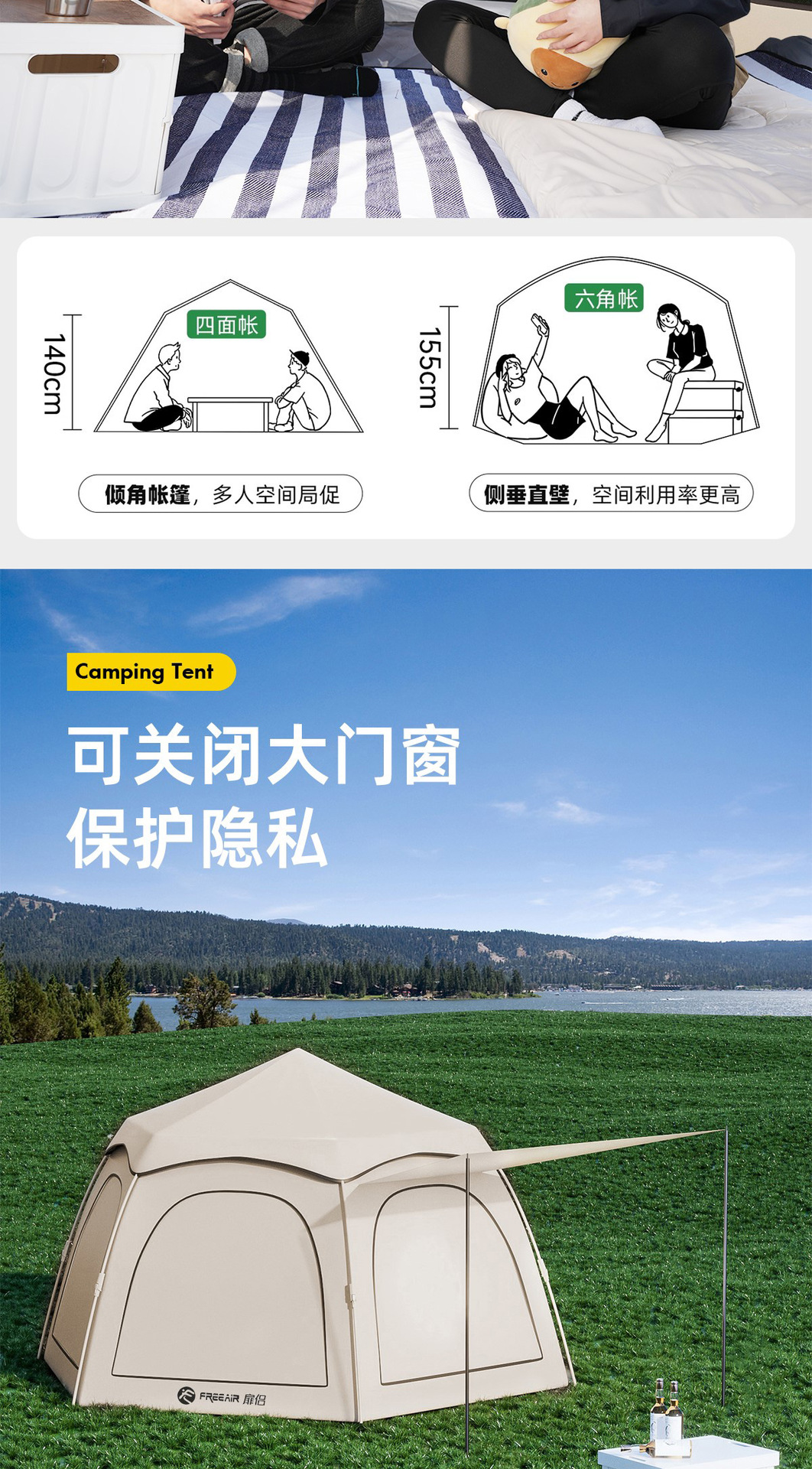 • 단일 텐트 + 방습 매트 + 피크닉 매트