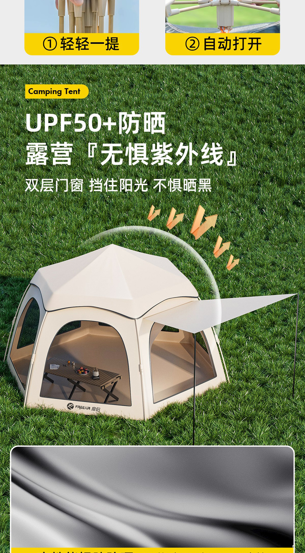 텐트 야외 캠핑 해변 휴대용 접이식 자동 빠른 오프닝 육각형 텐트 캠핑 비 방지 자외선 차단제 도매