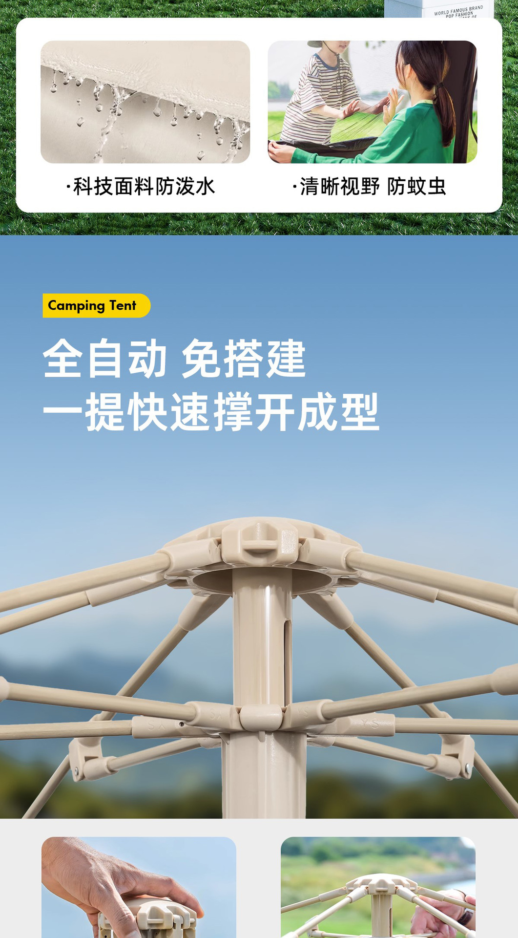 텐트 야외 캠핑 해변 휴대용 접이식 자동 빠른 오프닝 육각형 텐트 캠핑 비 방지 자외선 차단제 도매스토어 가기