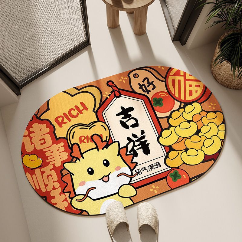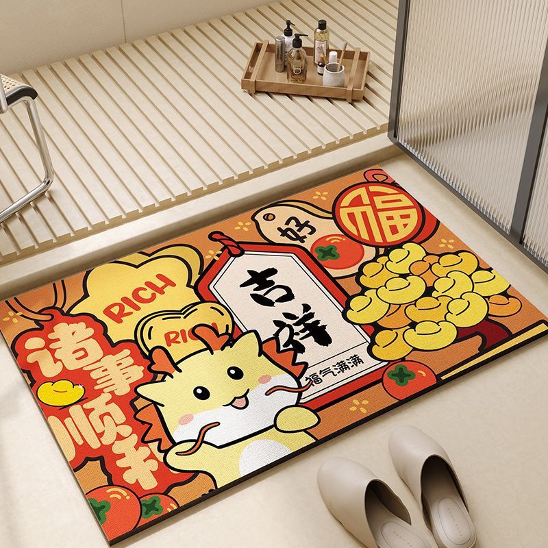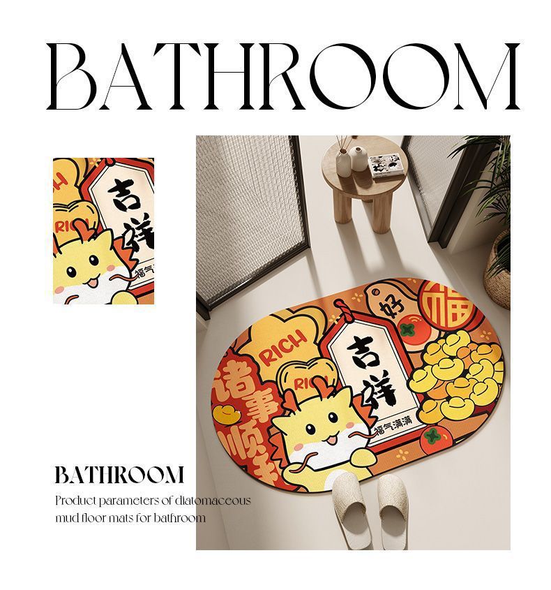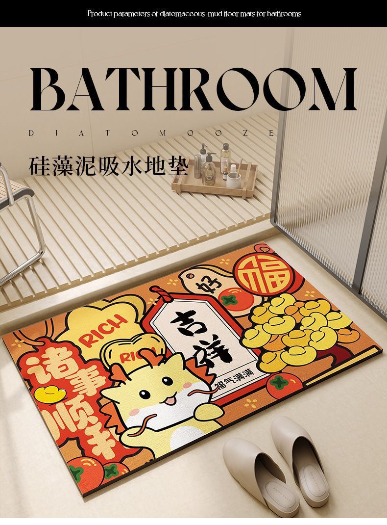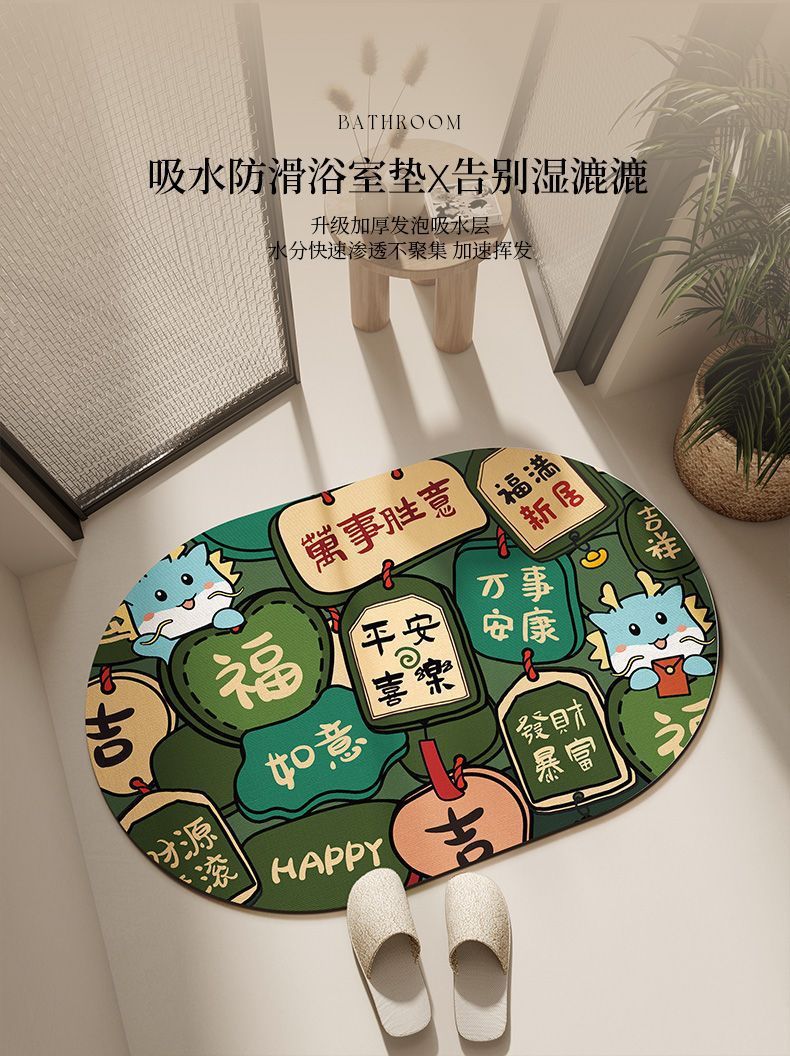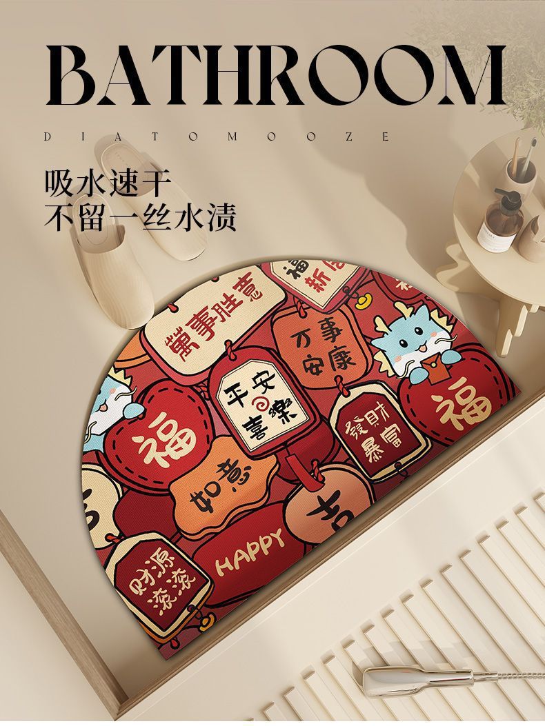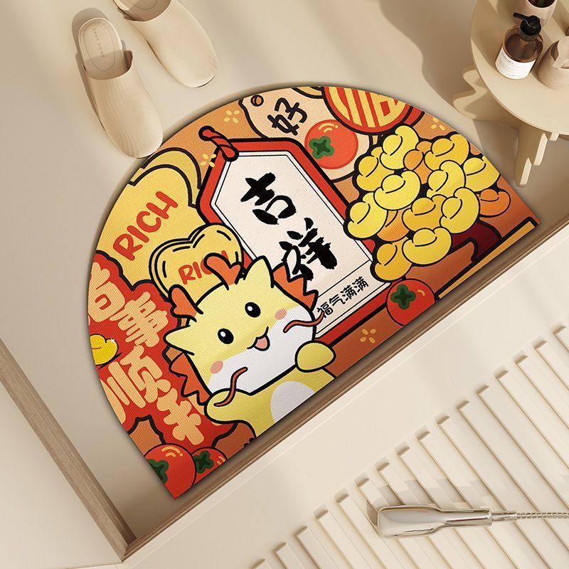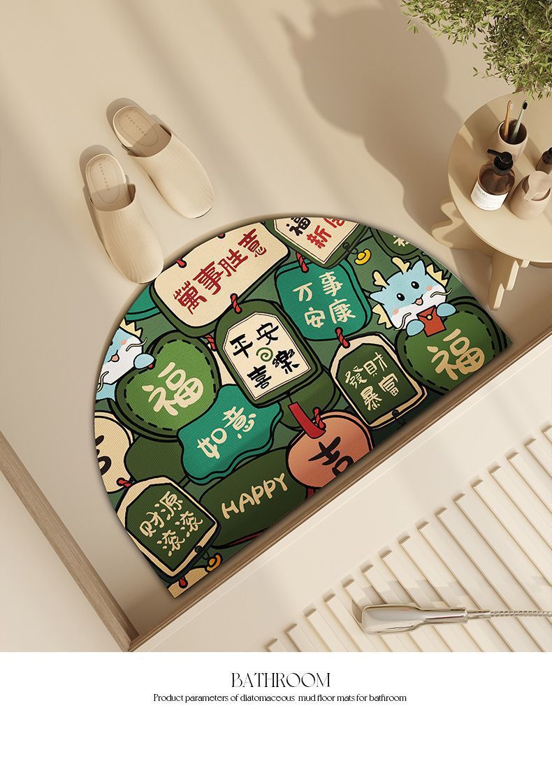 실리카겔 진흙 매트 가정용 강력 흡수 귀여운 만화 반원형 발매트 화장실 입구 미끄럼 방지 욕실 매트스토어 가기