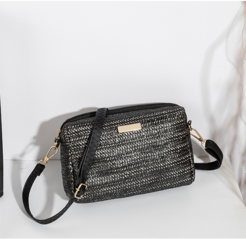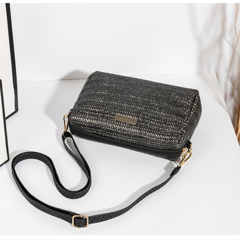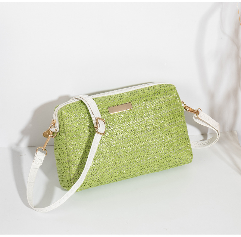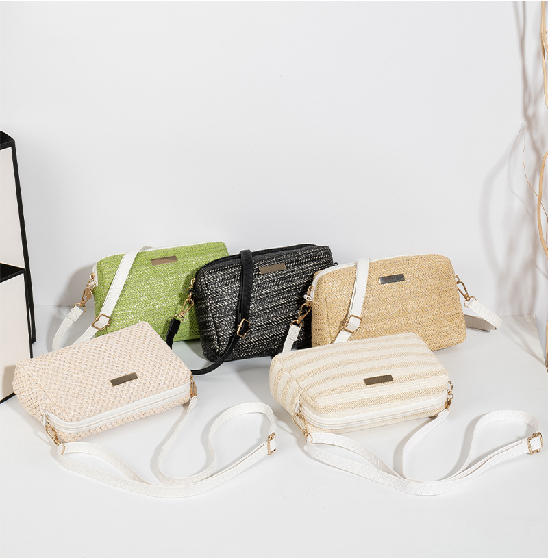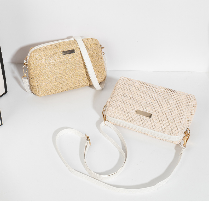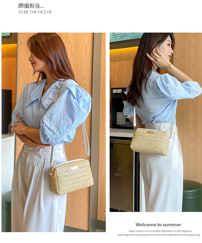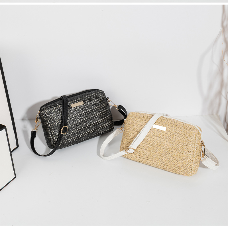 2024 새로운 여성 가방 짠 어깨 가방 메신저 가방 패션 밀짚 비치 가방 대외 무역 카메라 가방