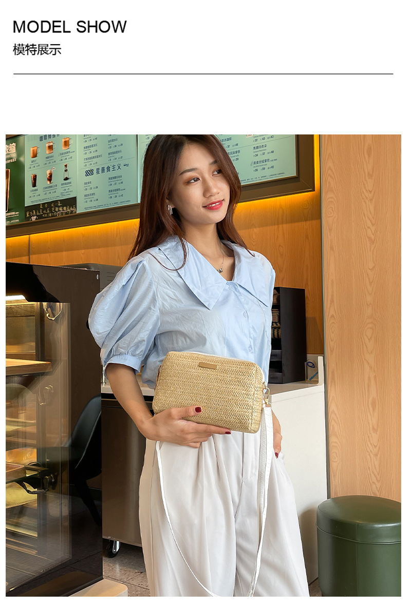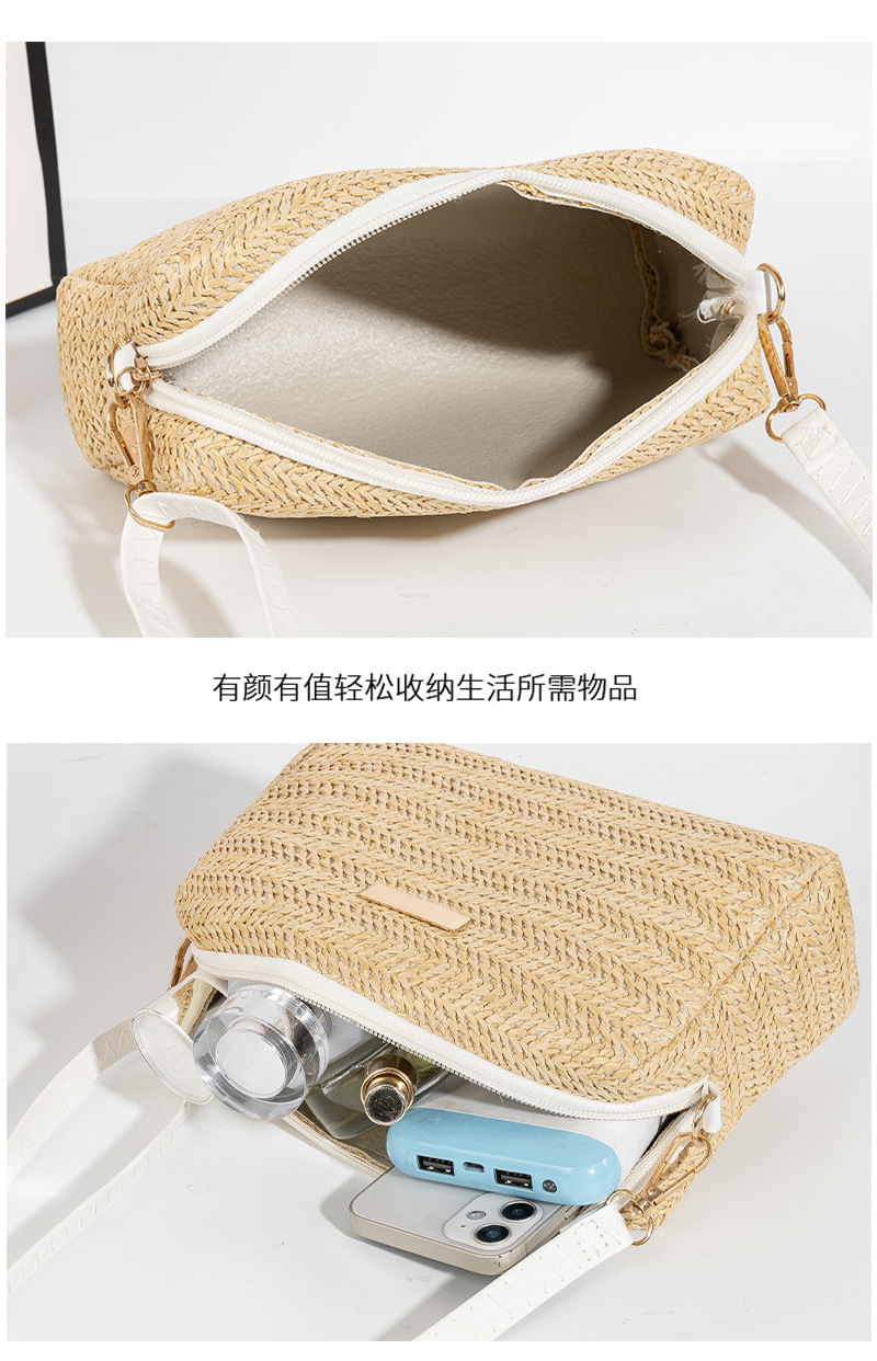 2024 새로운 여성 가방 짠 어깨 가방 메신저 가방 패션 밀짚 비치 가방 대외 무역 카메라 가방스토어 가기