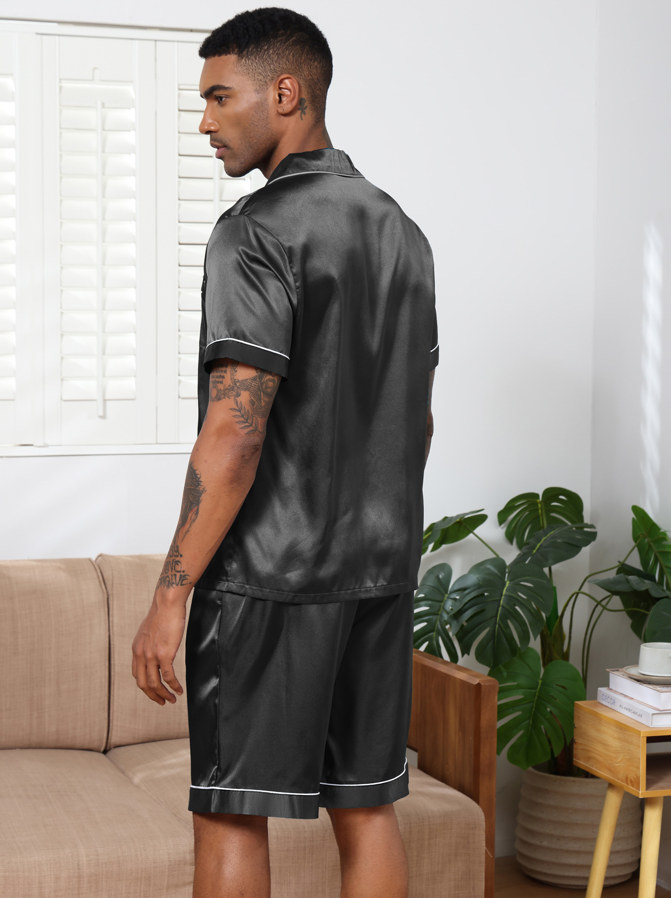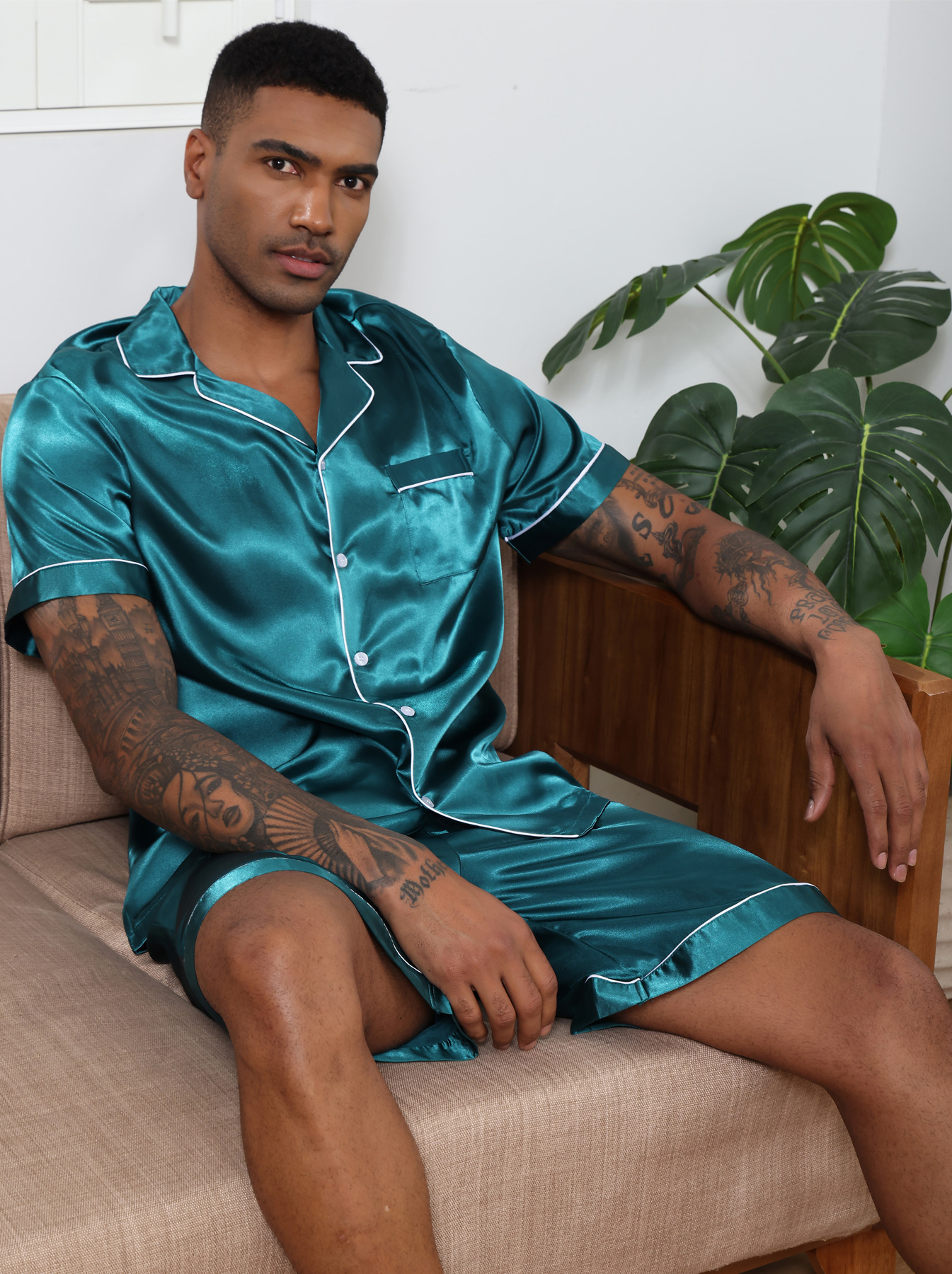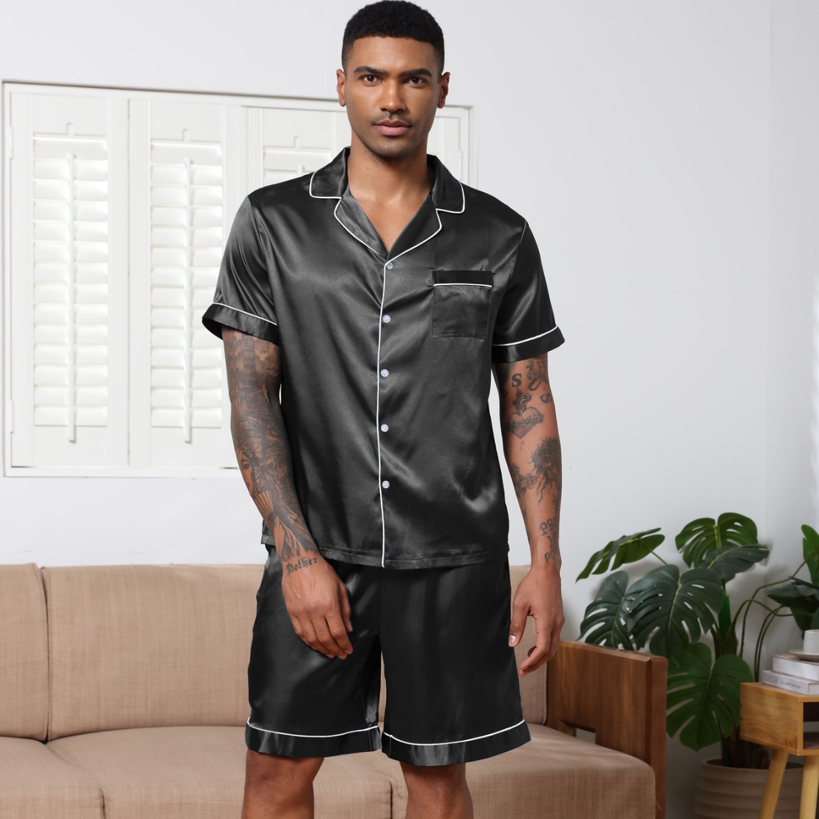 국경 간 유럽 사이즈 남성 플러스 사이즈 느슨한 홈웨어 여름 남성 통기성 얇은 짧은 소매 반바지 새틴 파자마 세트스토어 가기