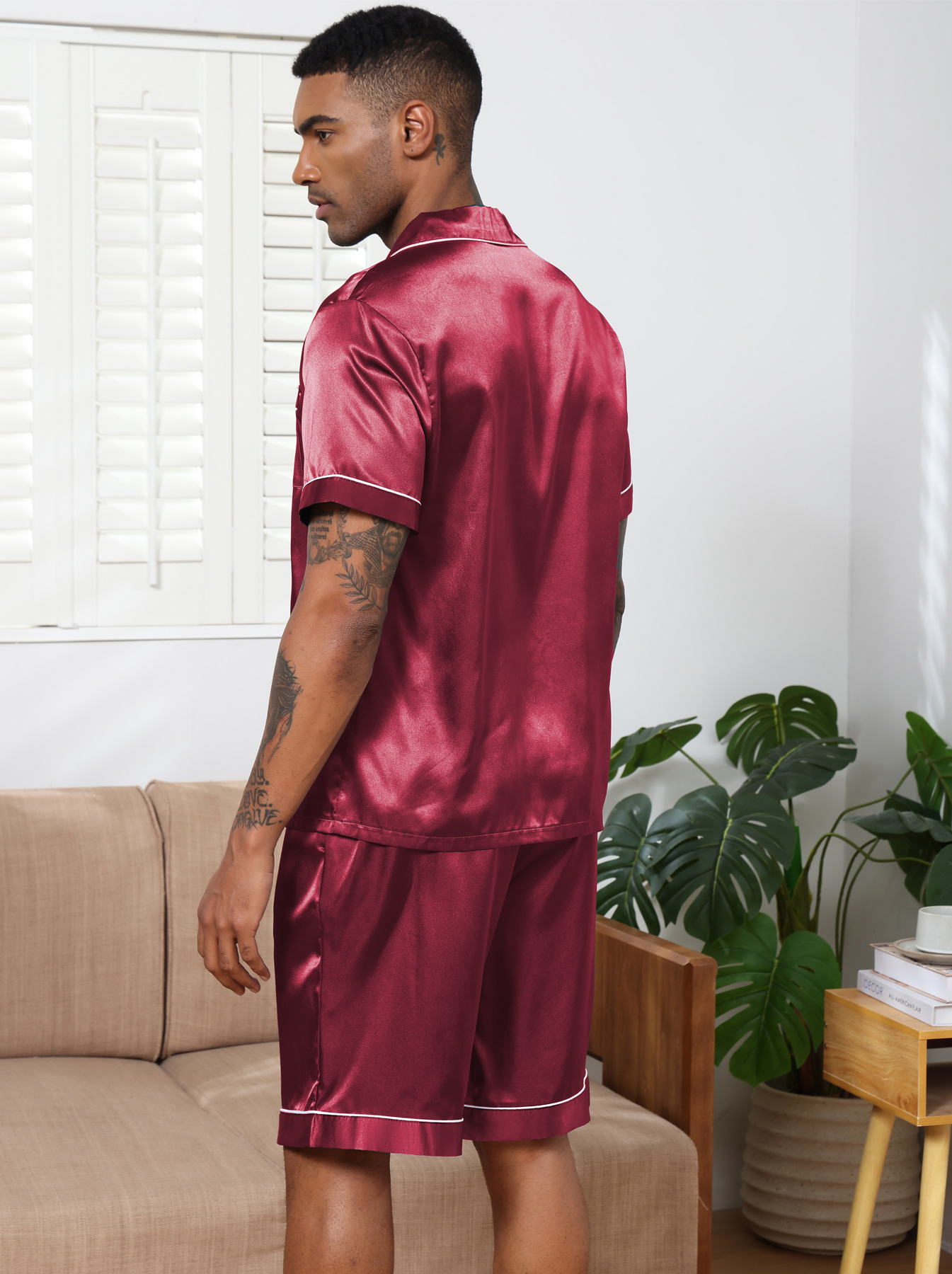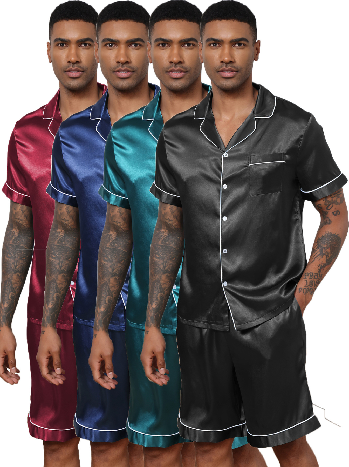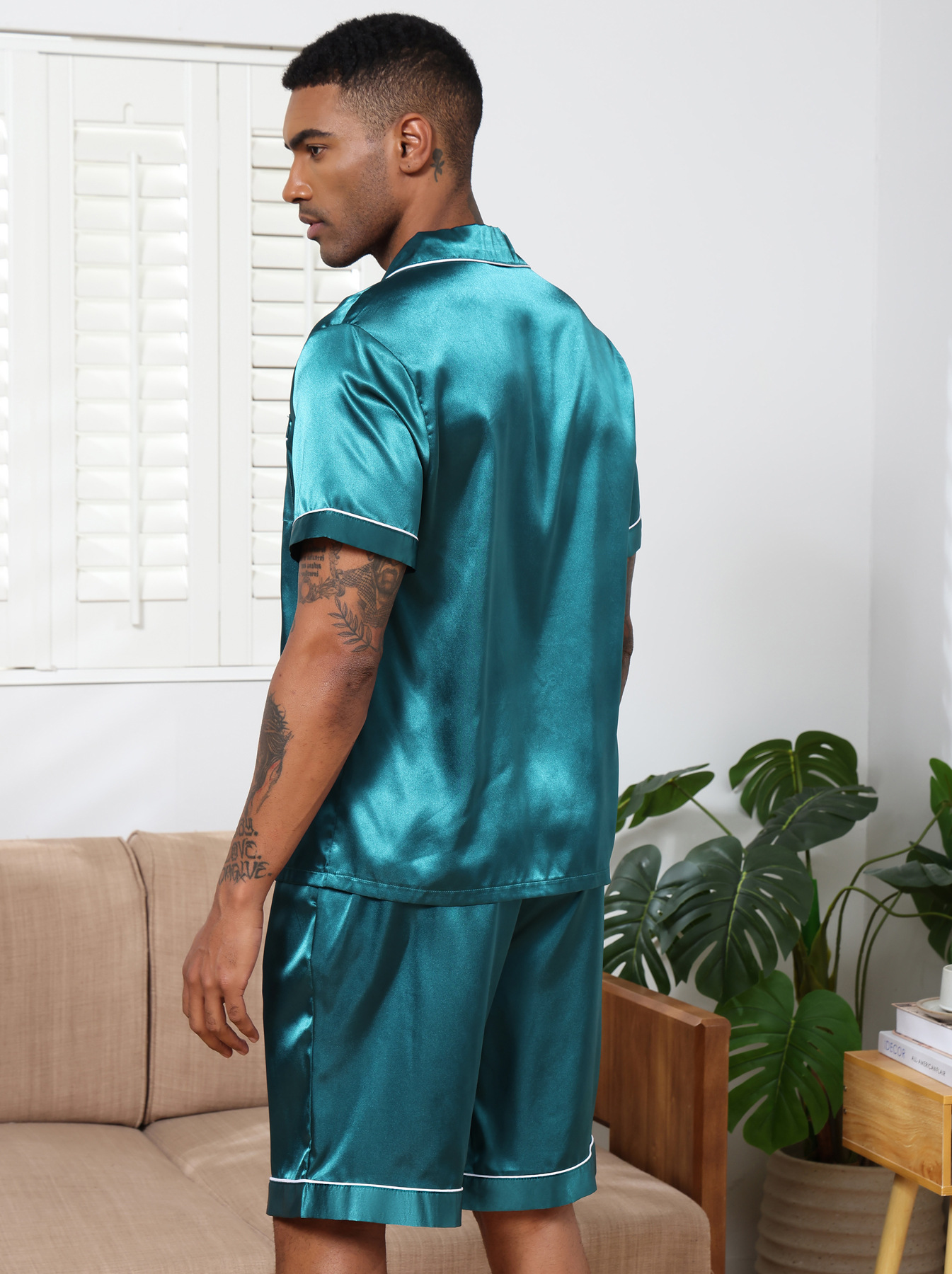 국경 간 유럽 사이즈 남성 플러스 사이즈 느슨한 홈웨어 여름 남성 통기성 얇은 짧은 소매 반바지 새틴 파자마 세트스토어 가기