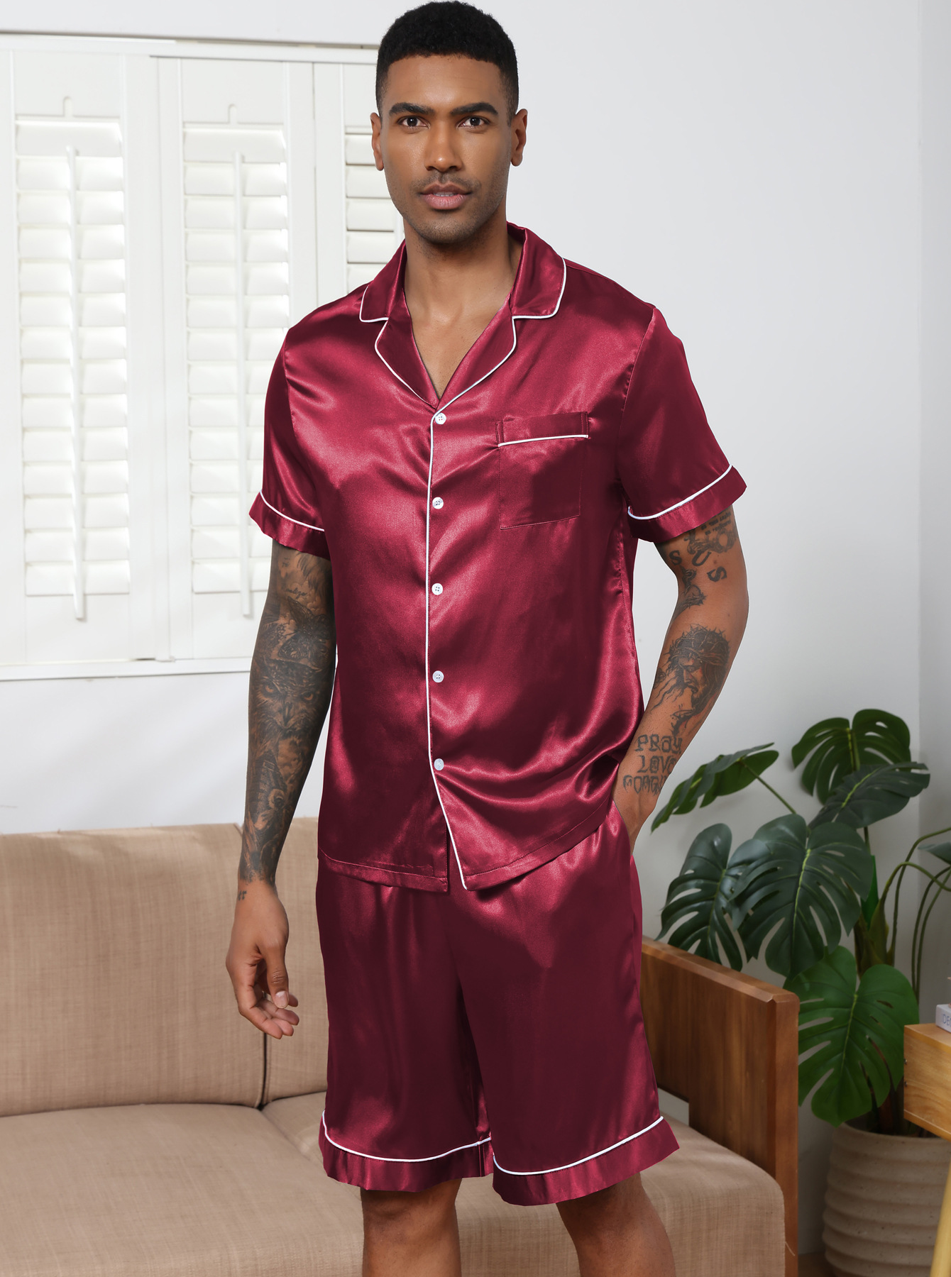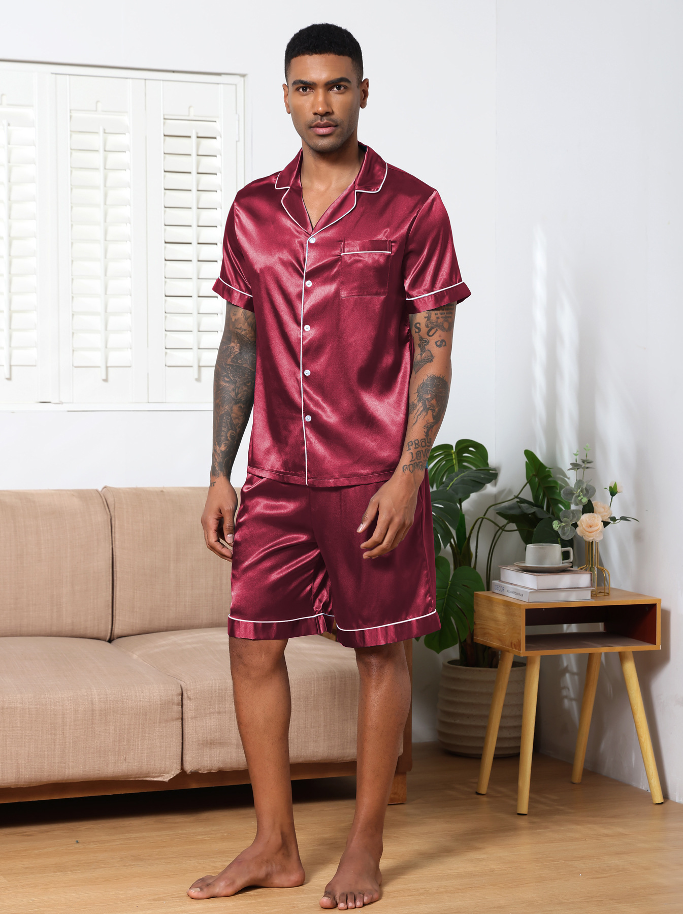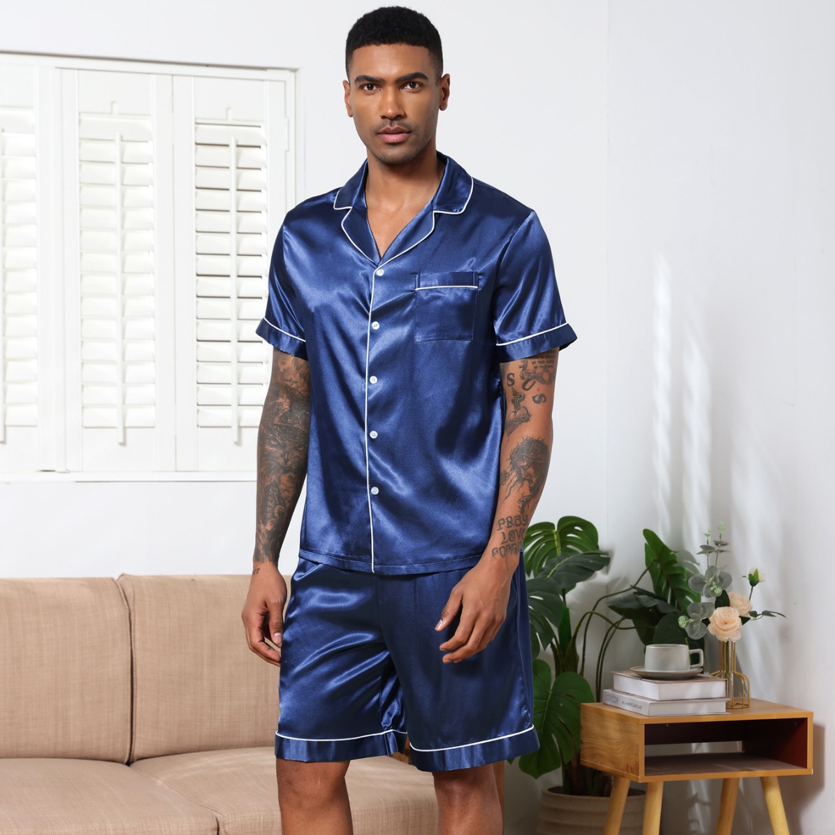 국경 간 유럽 사이즈 남성 플러스 사이즈 느슨한 홈웨어 여름 남성 통기성 얇은 짧은 소매 반바지 새틴 파자마 세트