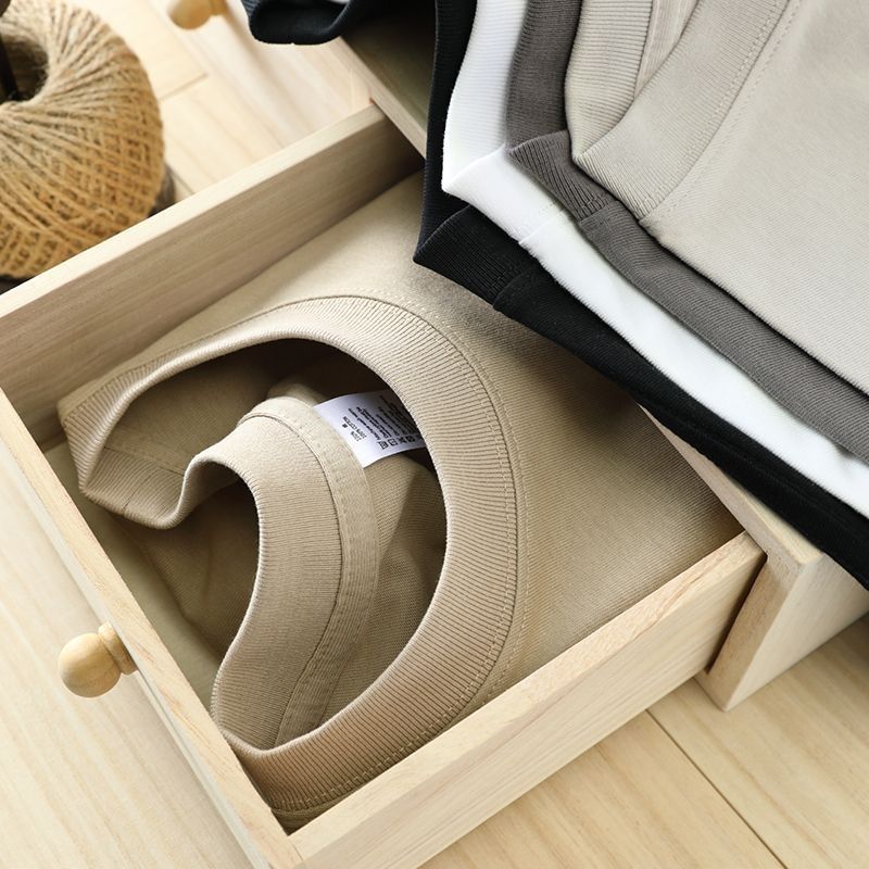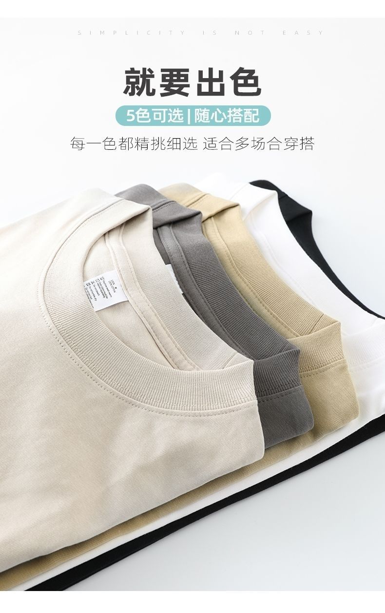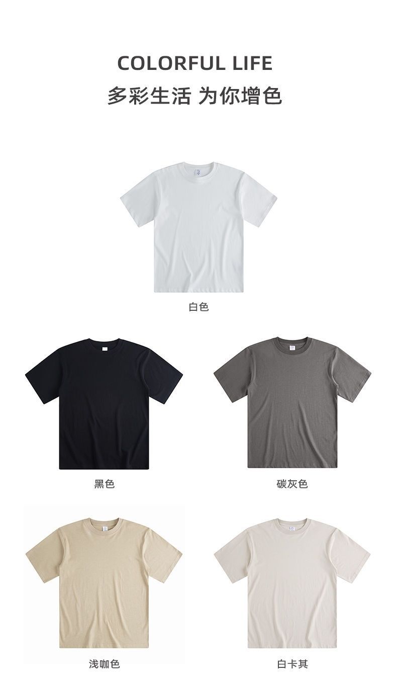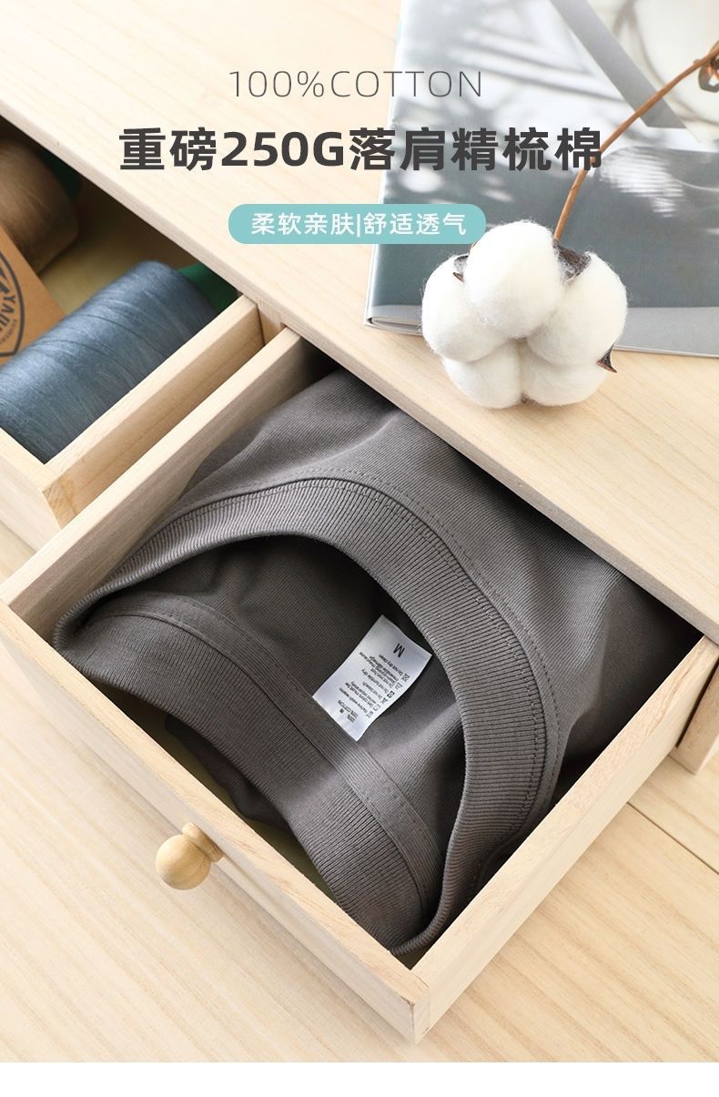 헤비급 250G 순수 코튼 티셔츠 남성용 루즈 캐주얼 오프 숄더 남성용 반팔 셔츠 솔리드 컬러 반팔 티셔츠 여름스토어 가기