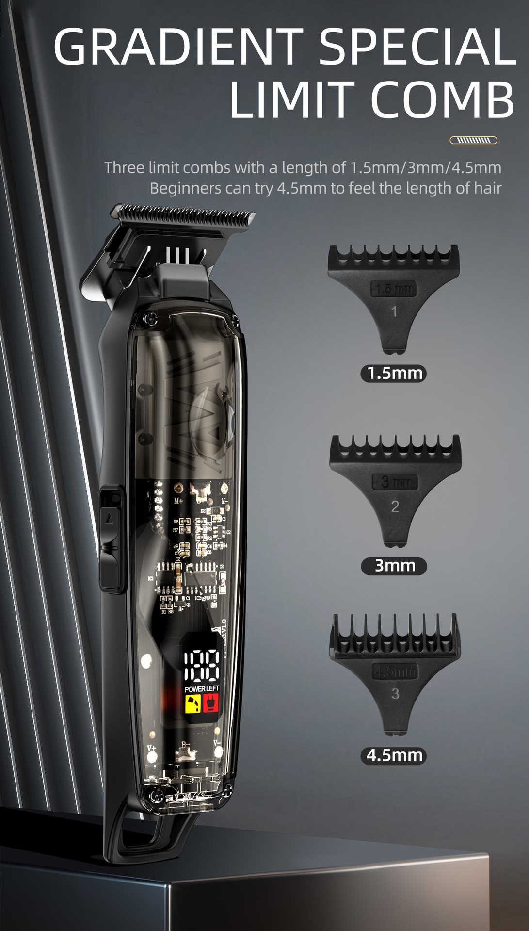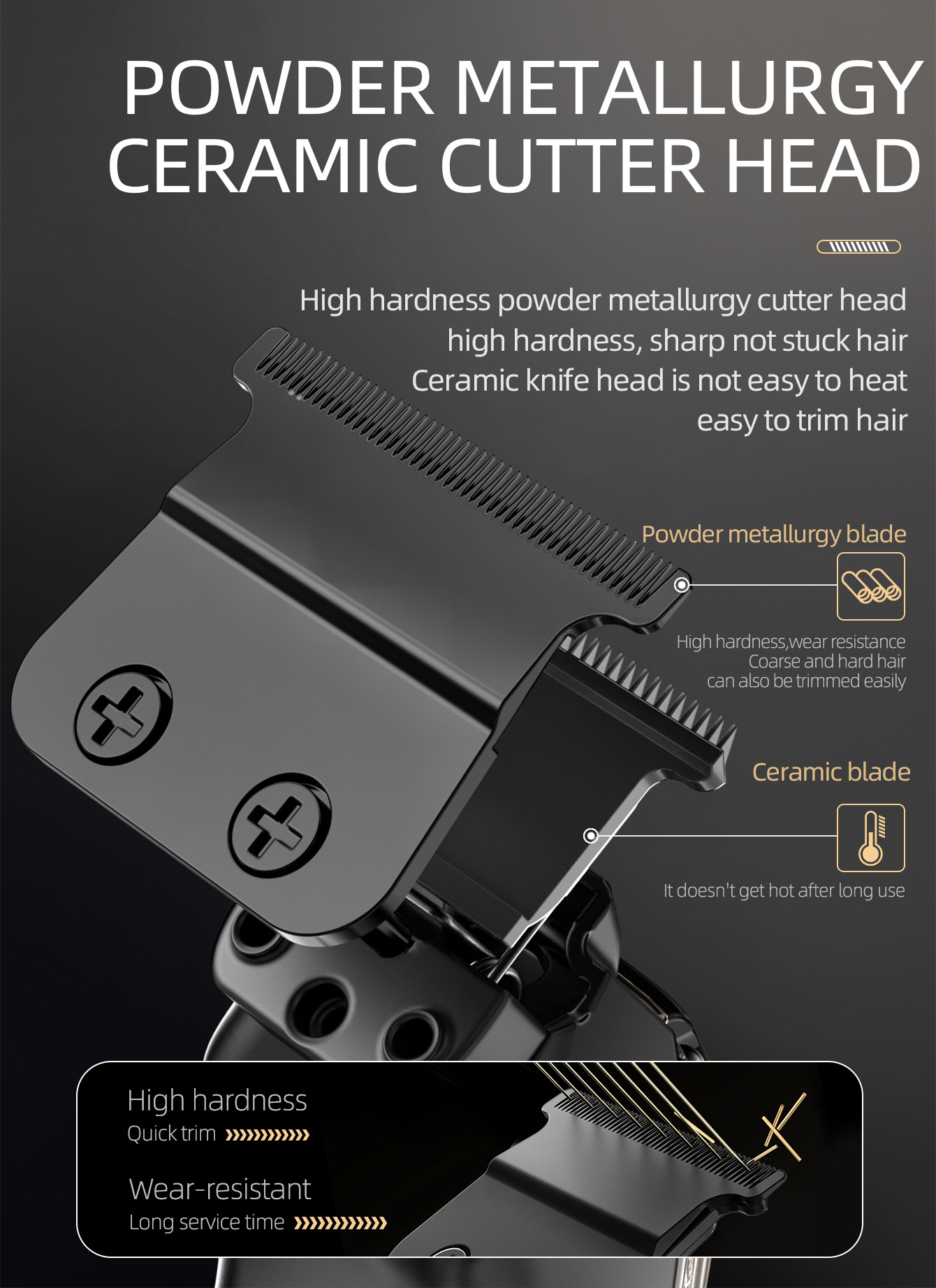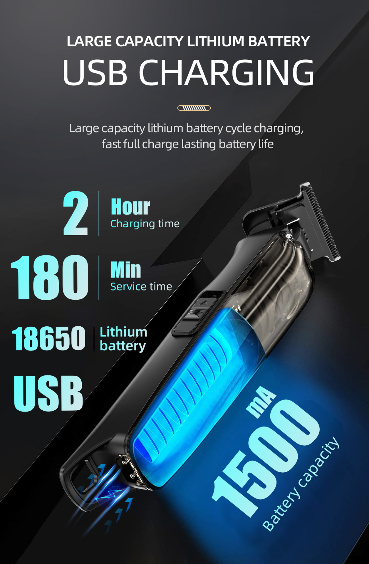 SHEIN 국경 핫 세일 전기 헤어 클리퍼 오일 헤드 조각 전기 클리퍼 DLC 파우더 경화 골드 커터 헤드 USB 충전