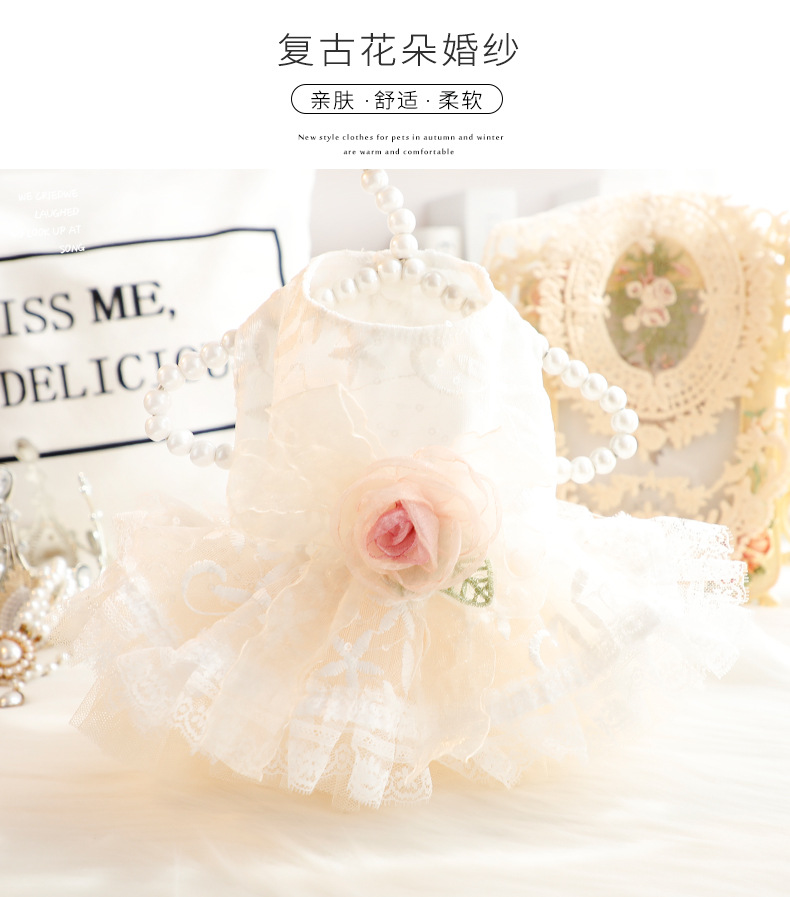 개 옷 봄과 여름 얇은 고양이 공주 웨딩 드레스 복고풍 꽃 작은 개 애완 동물 5599 국경 간 도매스토어 가기