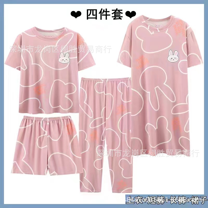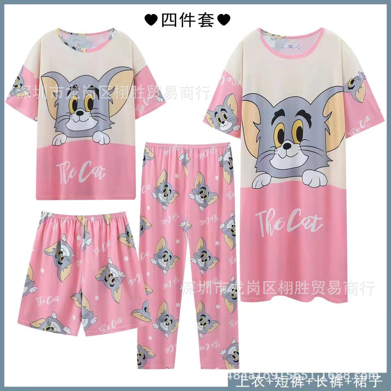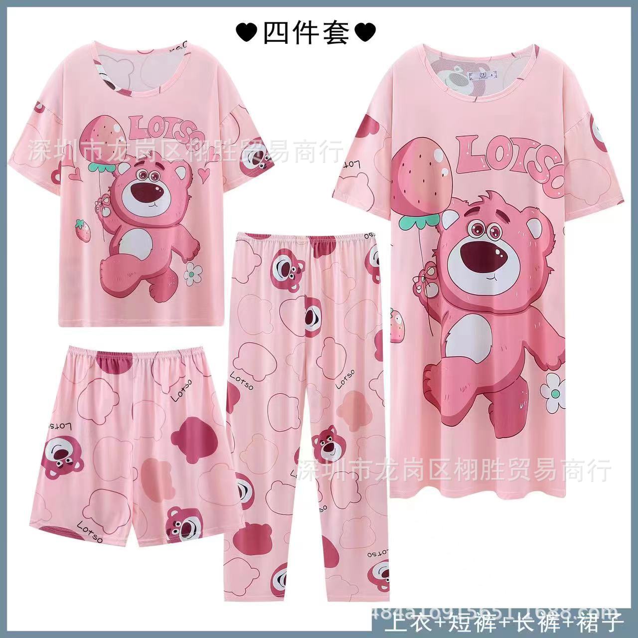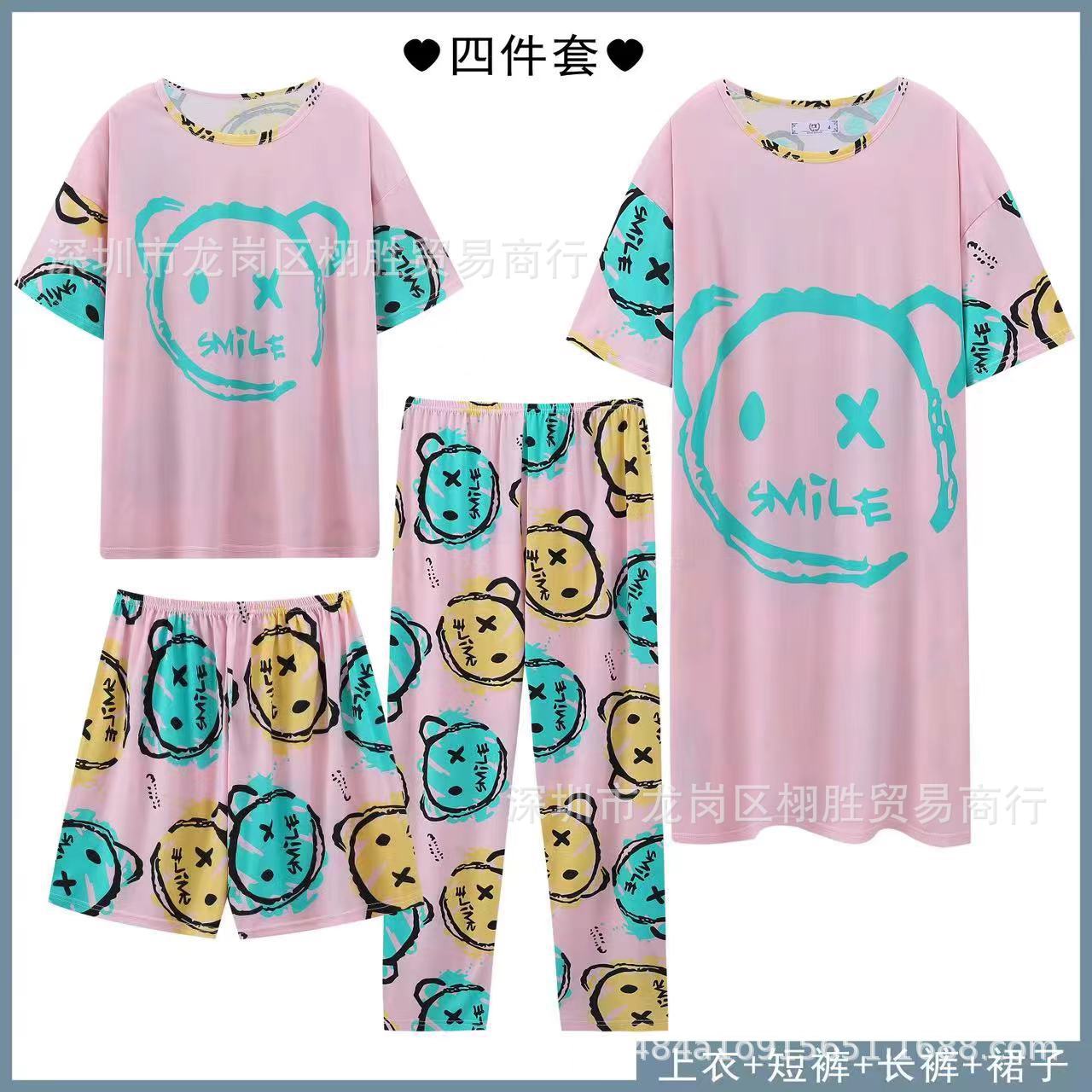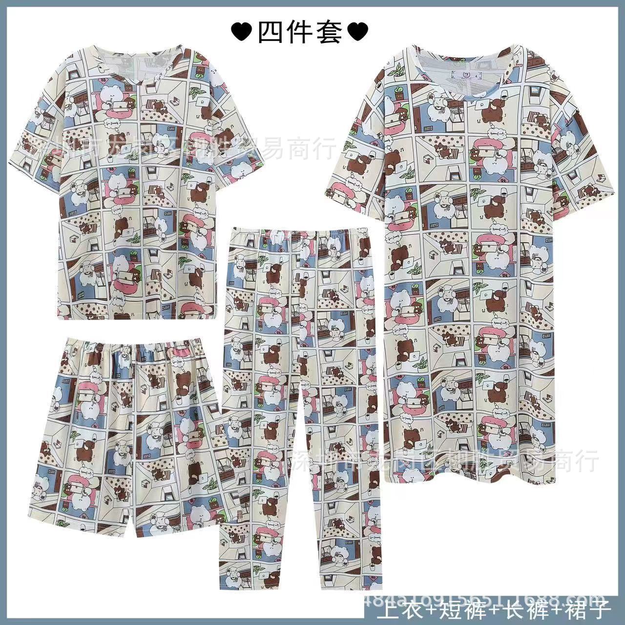 도매 인기있는 크로스 보더 파자마 여성 3 종 반팔 반바지 홈웨어 세트 잠옷스토어 가기