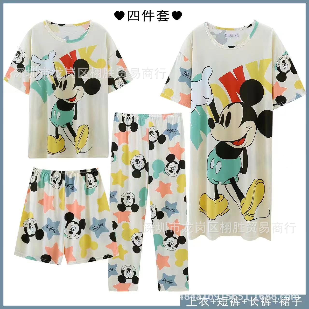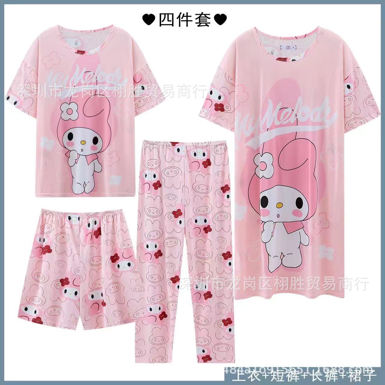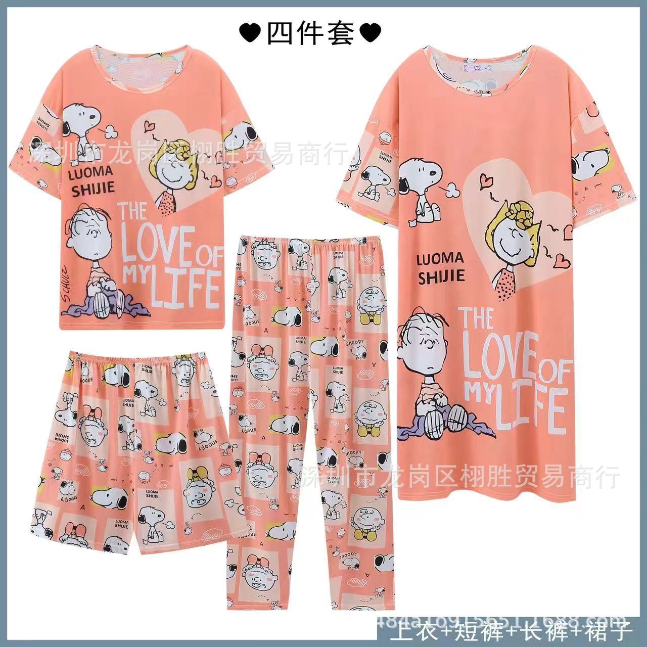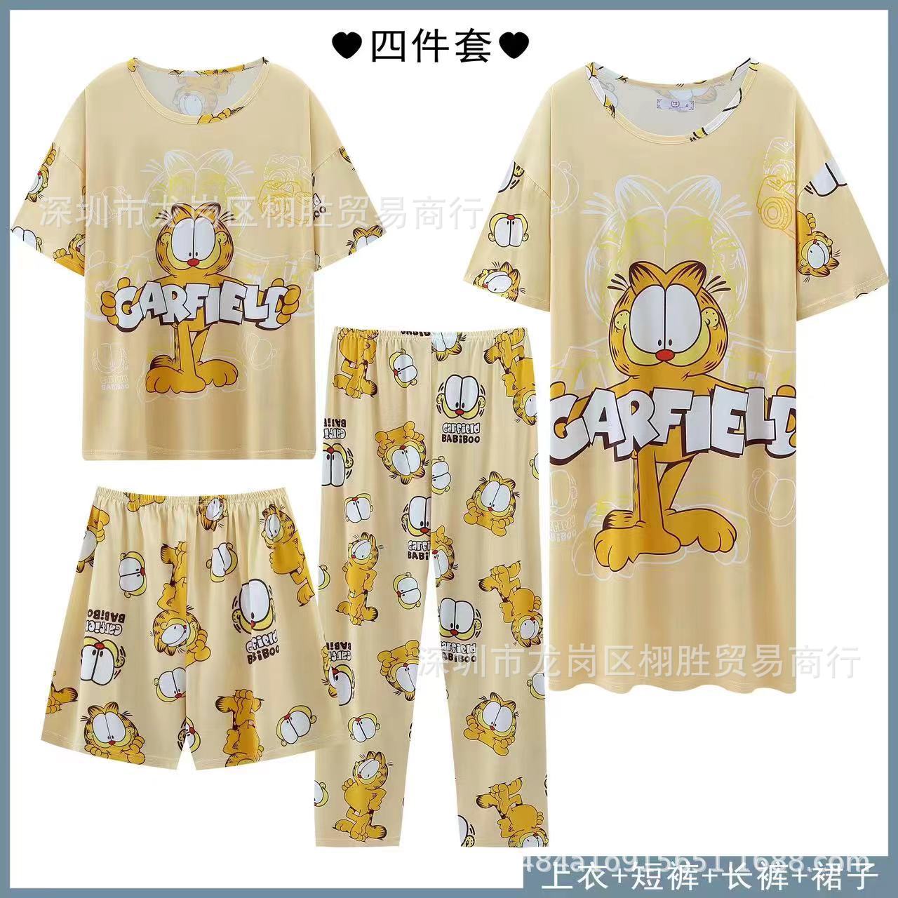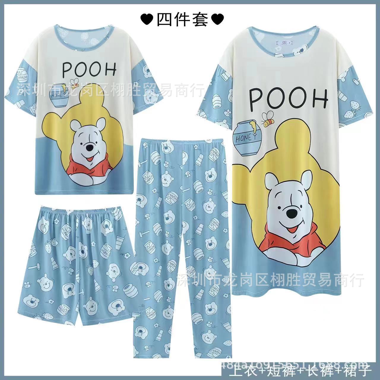 도매 인기있는 크로스 보더 파자마 여성 3 종 반팔 반바지 홈웨어 세트 잠옷스토어 가기