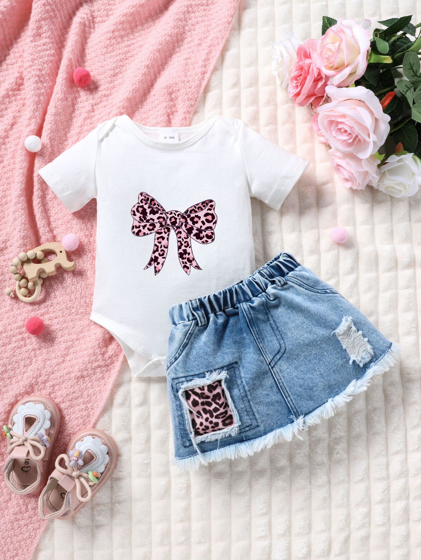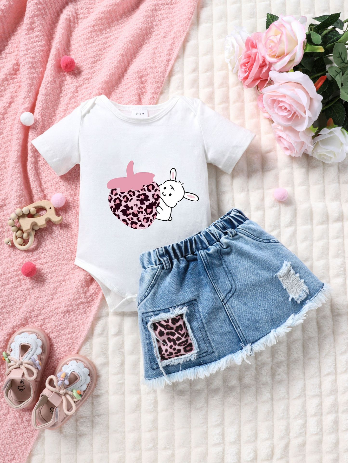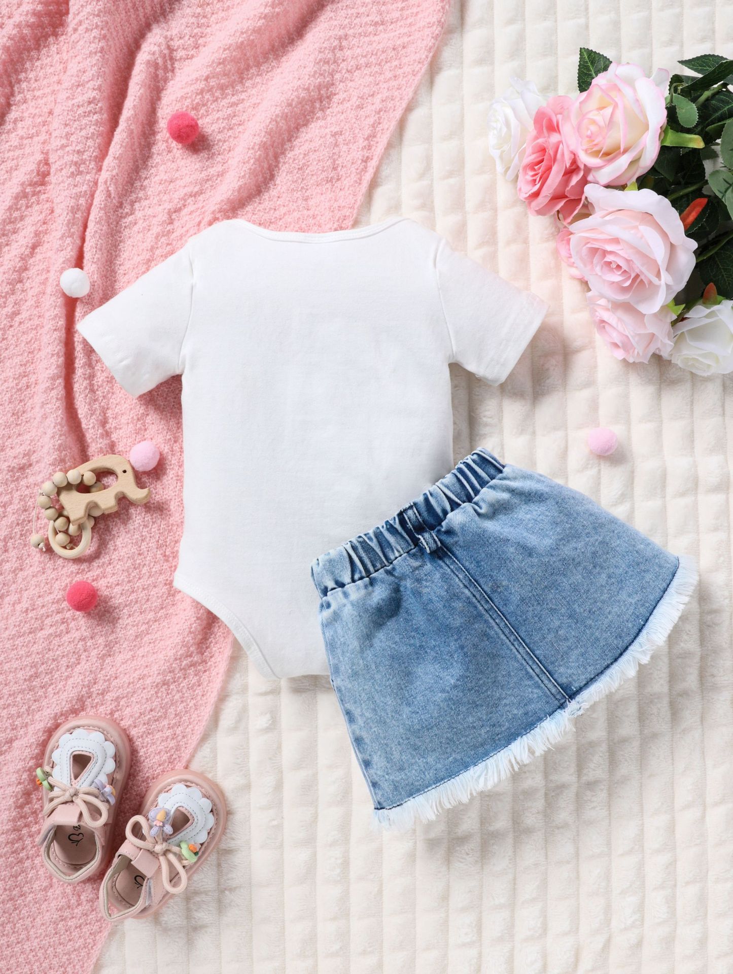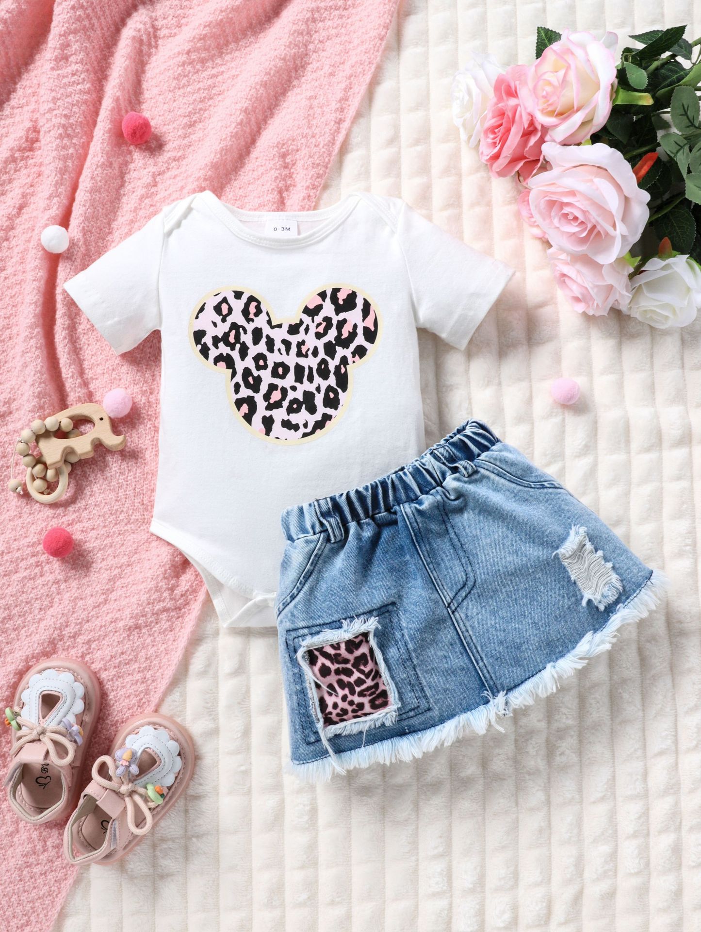 어린이 의류 여름 유럽과 미국 소녀 유아 아기 인쇄 반팔 롬퍼 데님 짧은 치마 어린이 세트