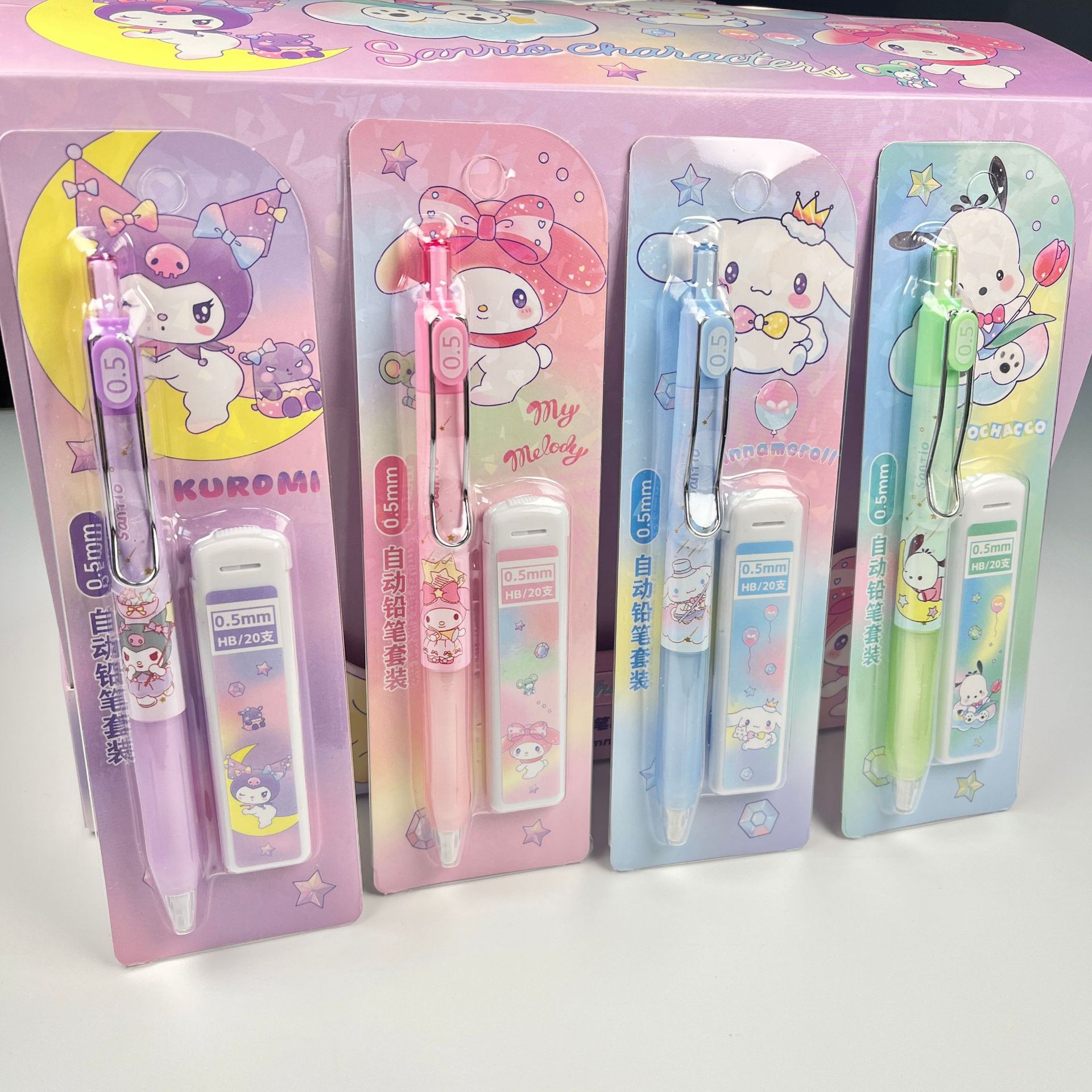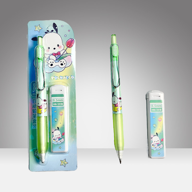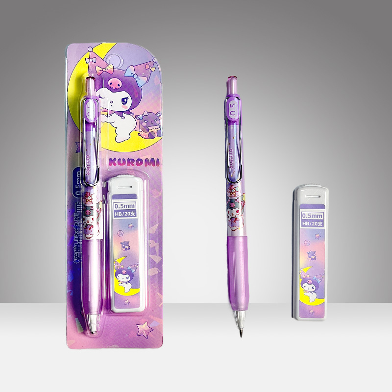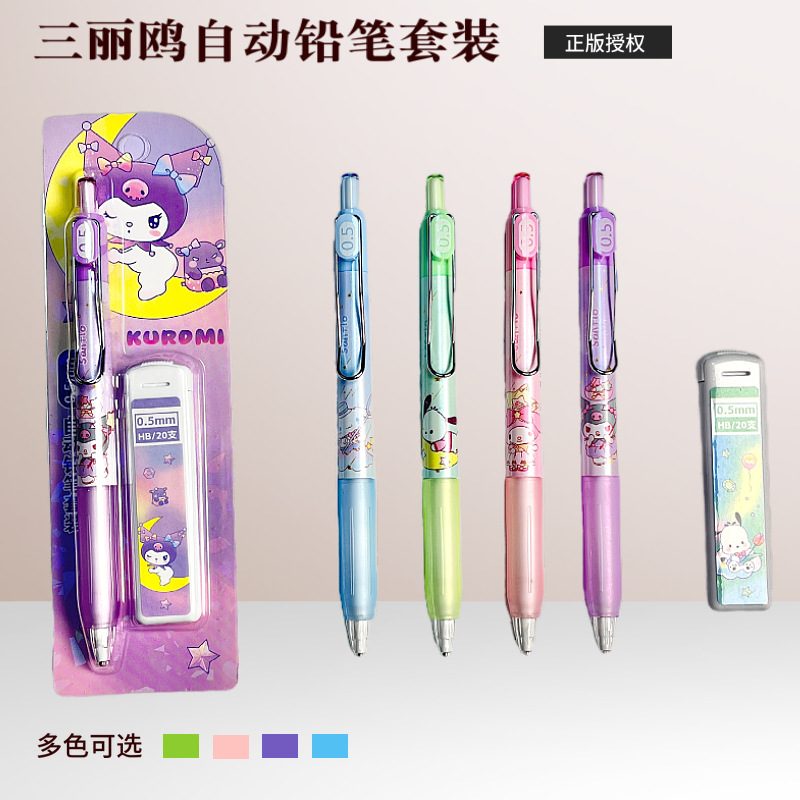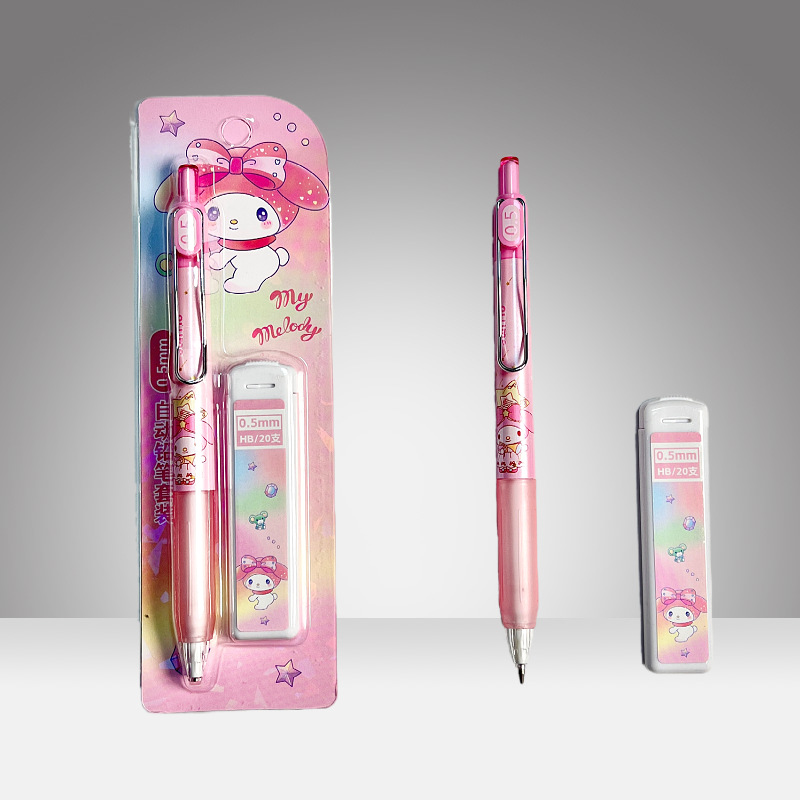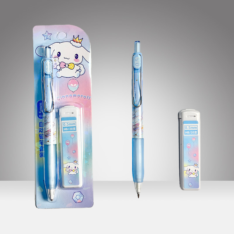 산리오 자동 연필 세트, 예쁜 디자인의 어린이용 0.5mm 샤프펜슬 세트, 깎을 필요 없는 연필, 깨지지 않는 심