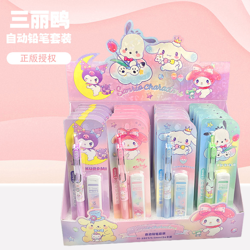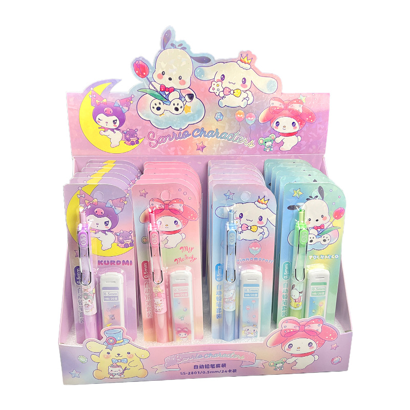 산리오 자동 연필 세트, 예쁜 디자인의 어린이용 0.5mm 샤프펜슬 세트, 깎을 필요 없는 연필, 깨지지 않는 심스토어 가기