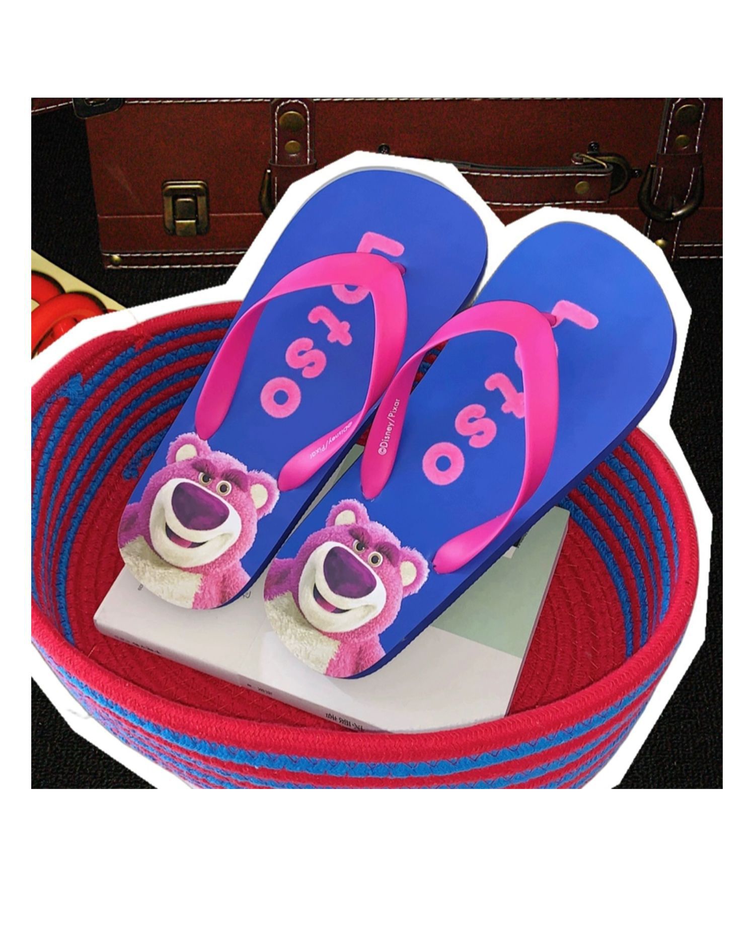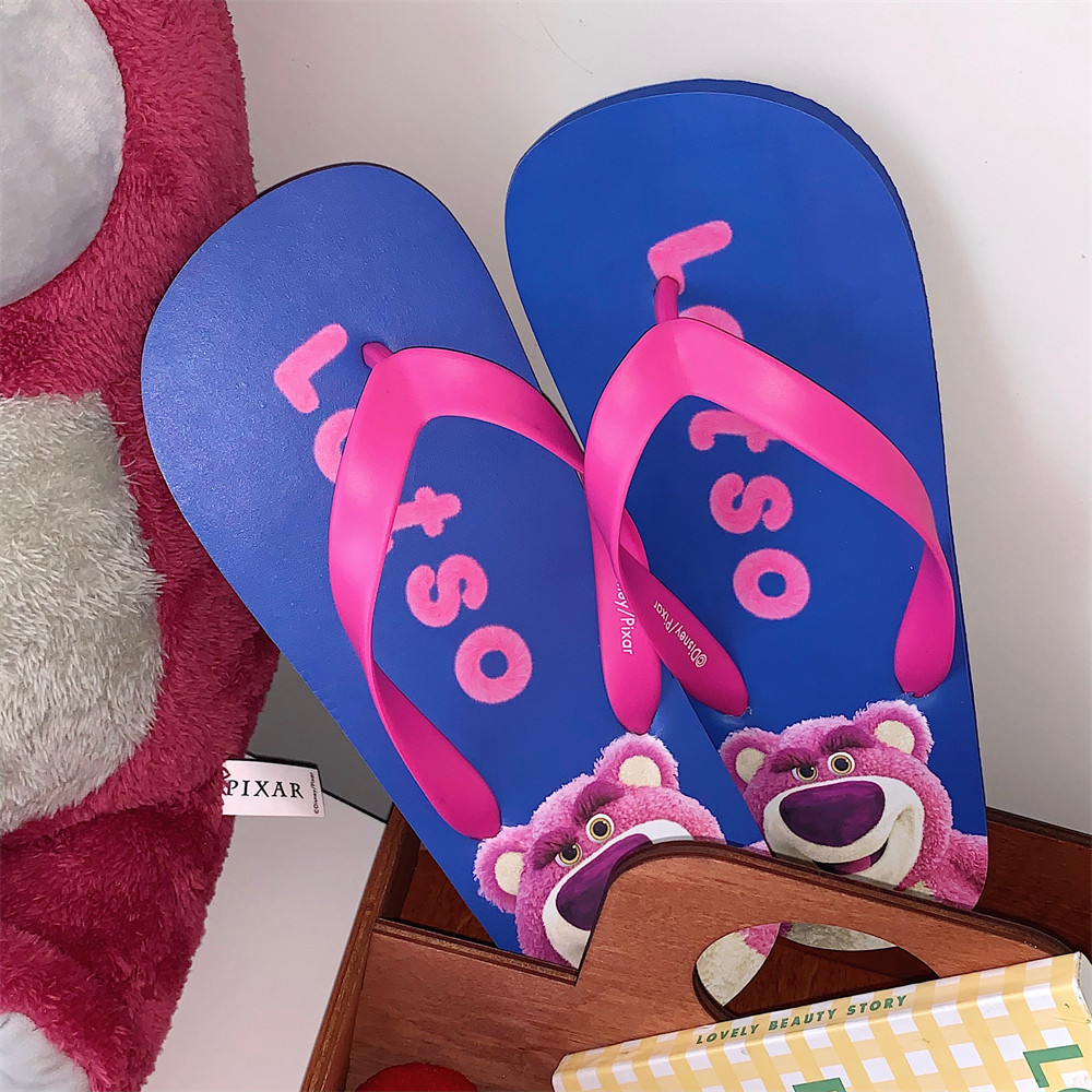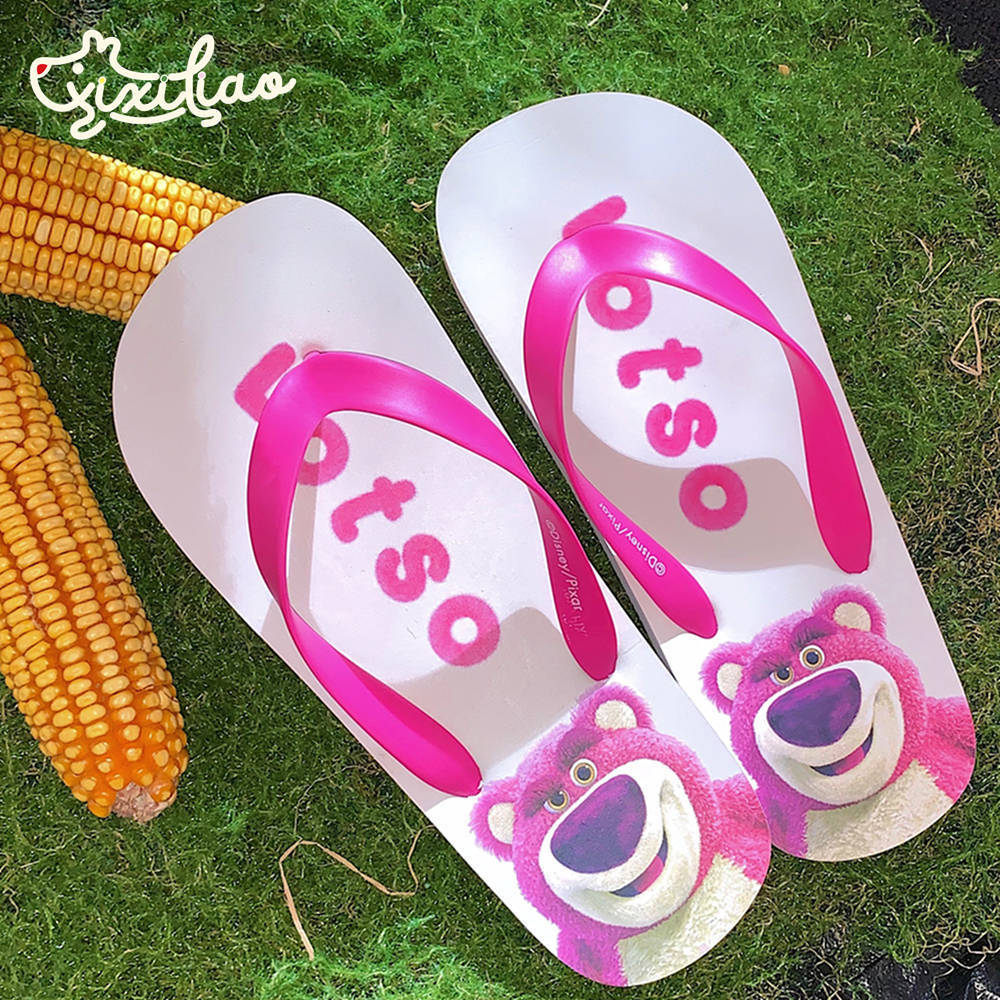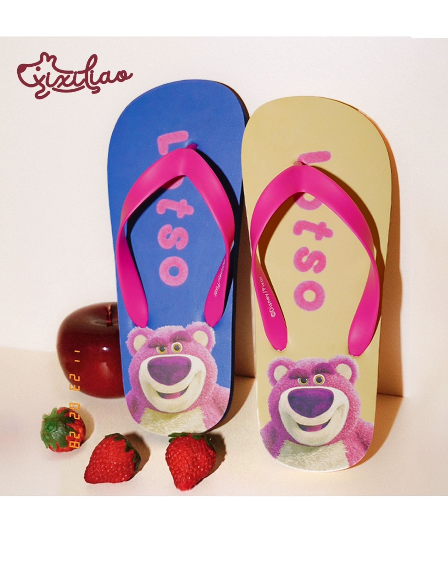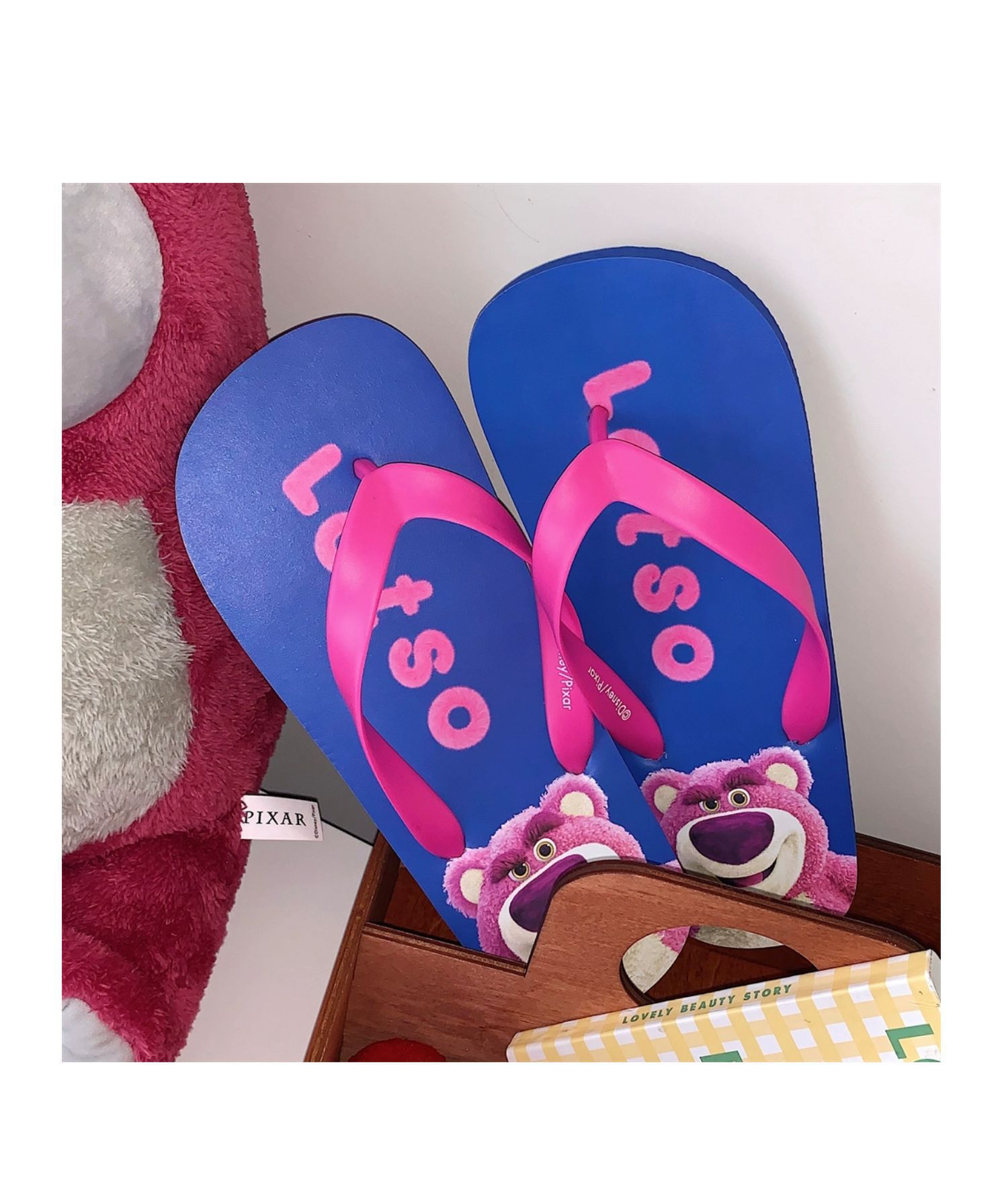 얇은 토이 스토리 귀여운 편지 딸기 곰 소녀 여름 새로운 부드러운 바닥 편안한 플립 플롭스토어 가기