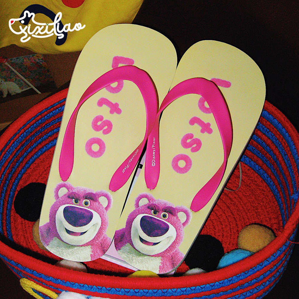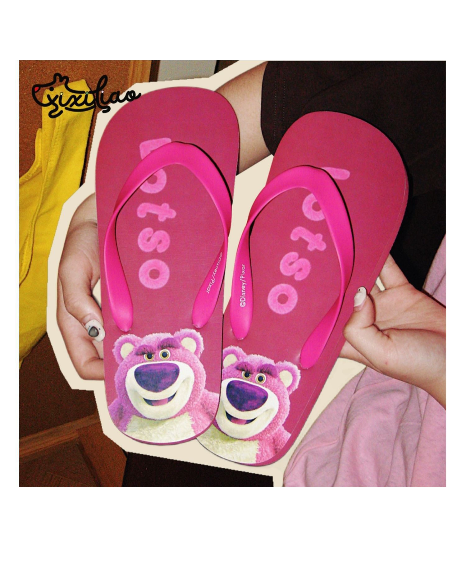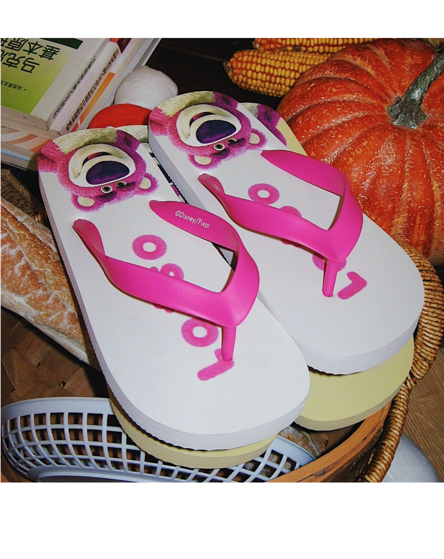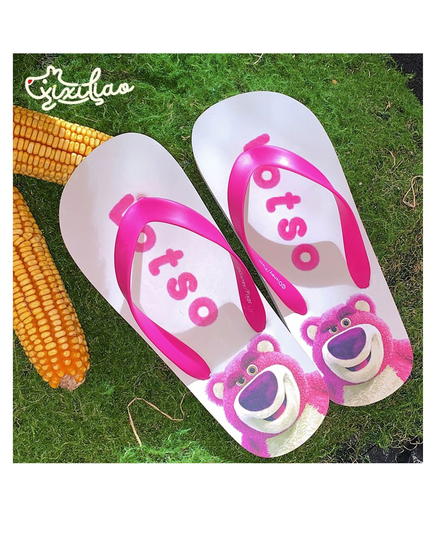 얇은 토이 스토리 귀여운 편지 딸기 곰 소녀 여름 새로운 부드러운 바닥 편안한 플립 플롭스토어 가기