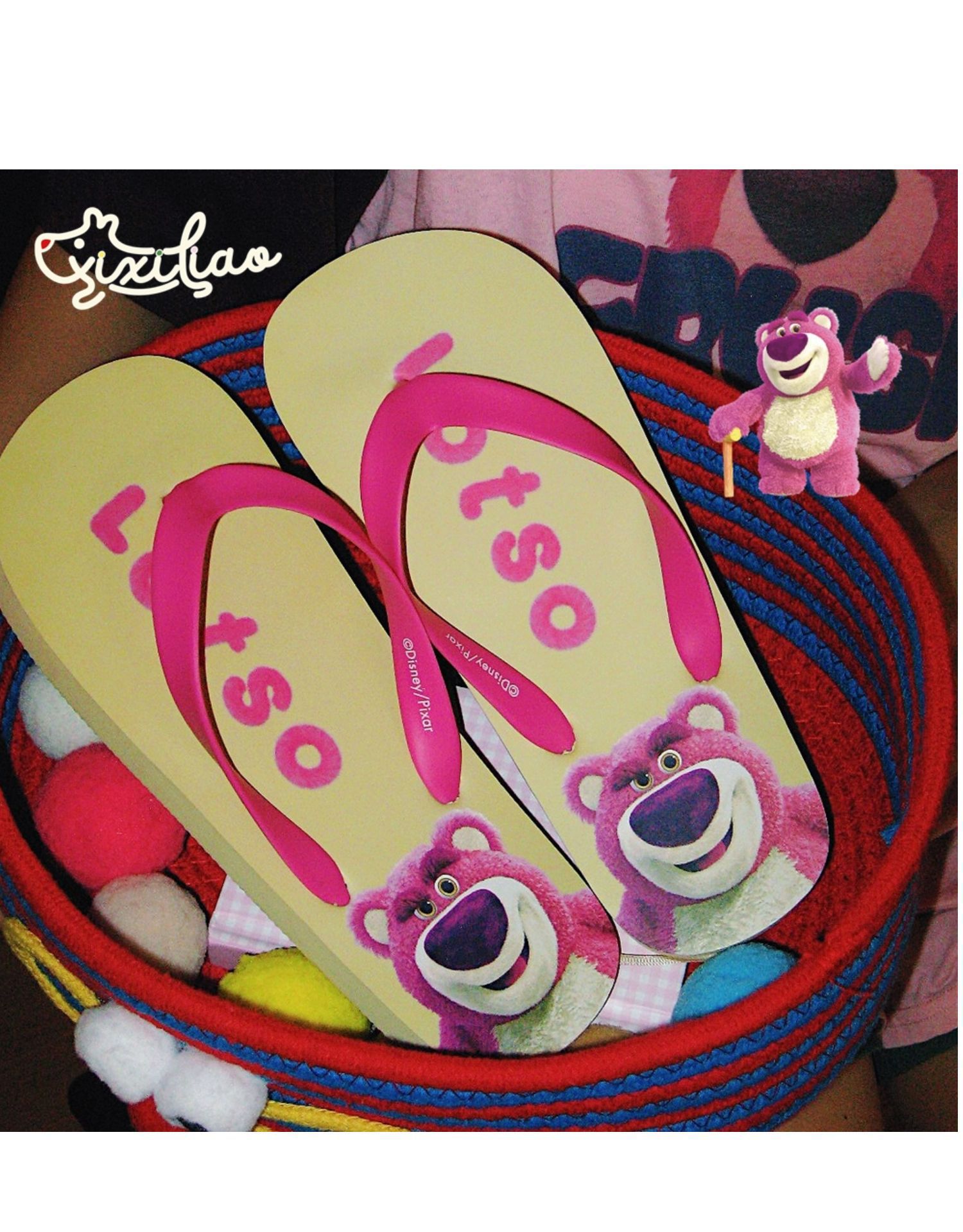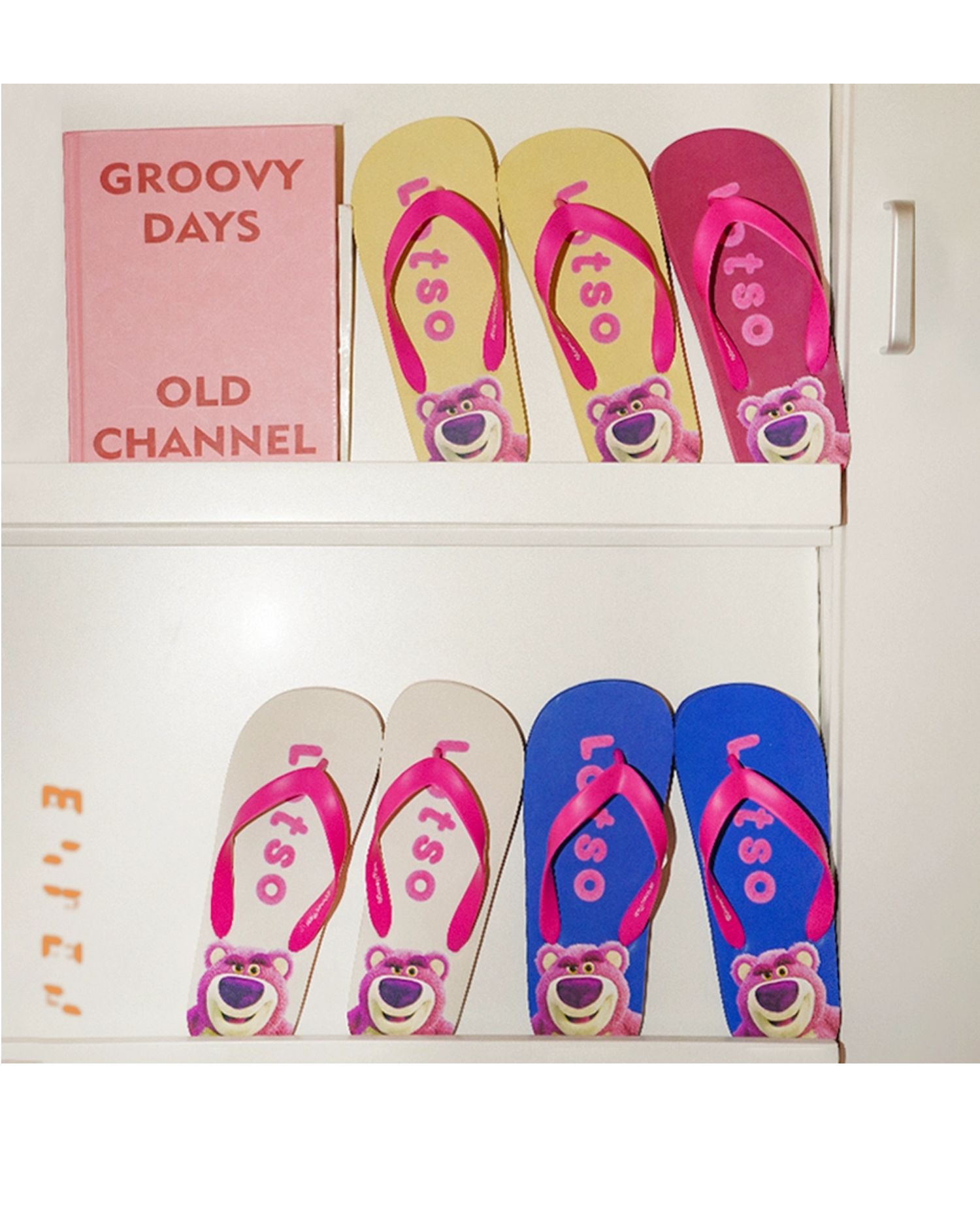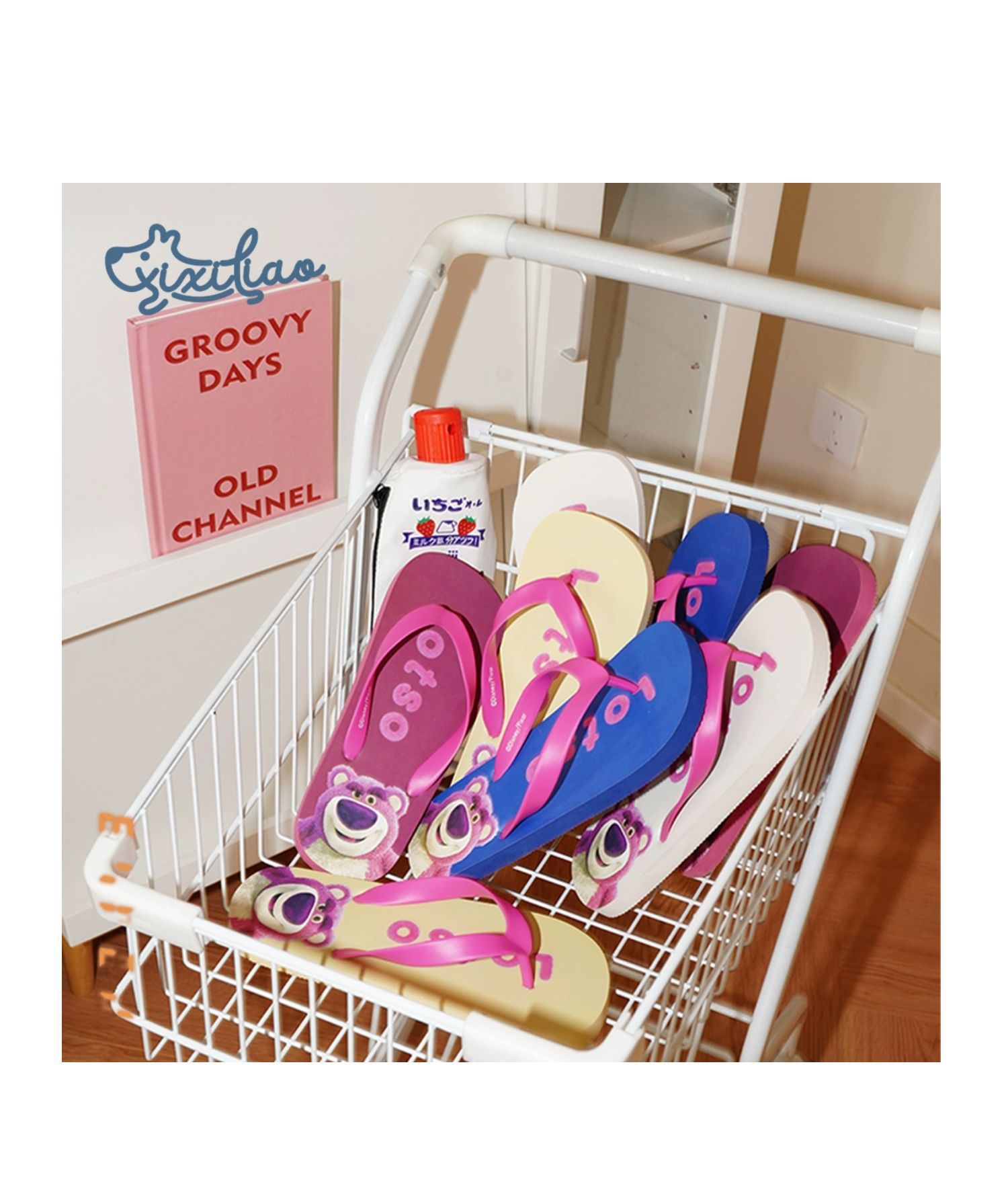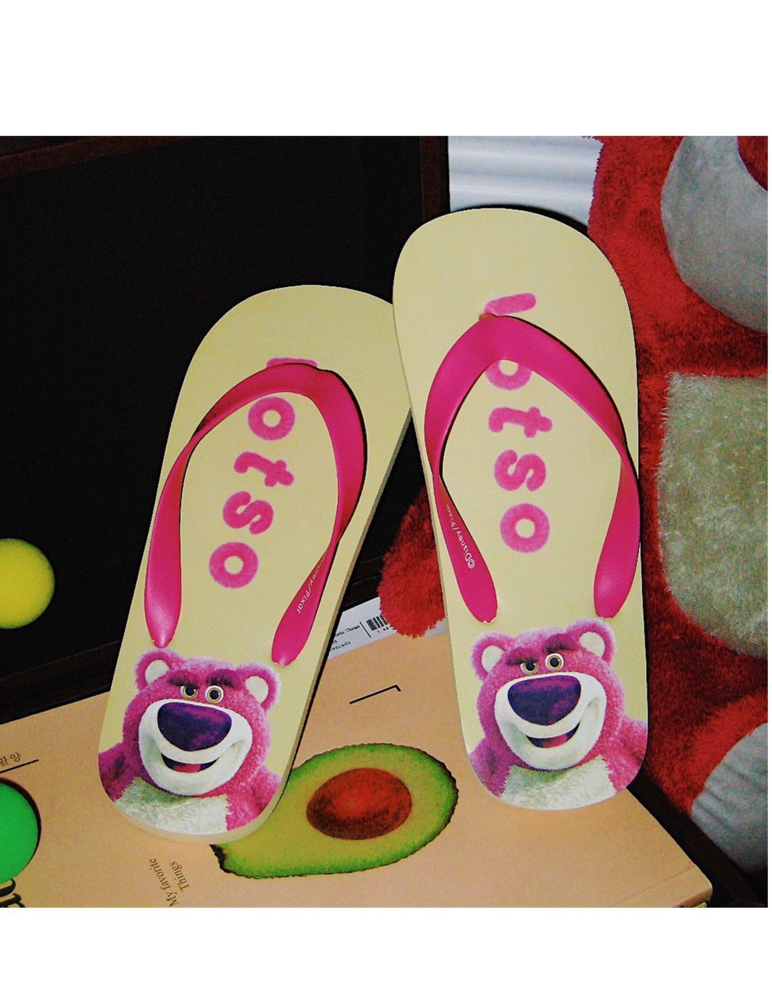 얇은 토이 스토리 귀여운 편지 딸기 곰 소녀 여름 새로운 부드러운 바닥 편안한 플립 플롭스토어 가기