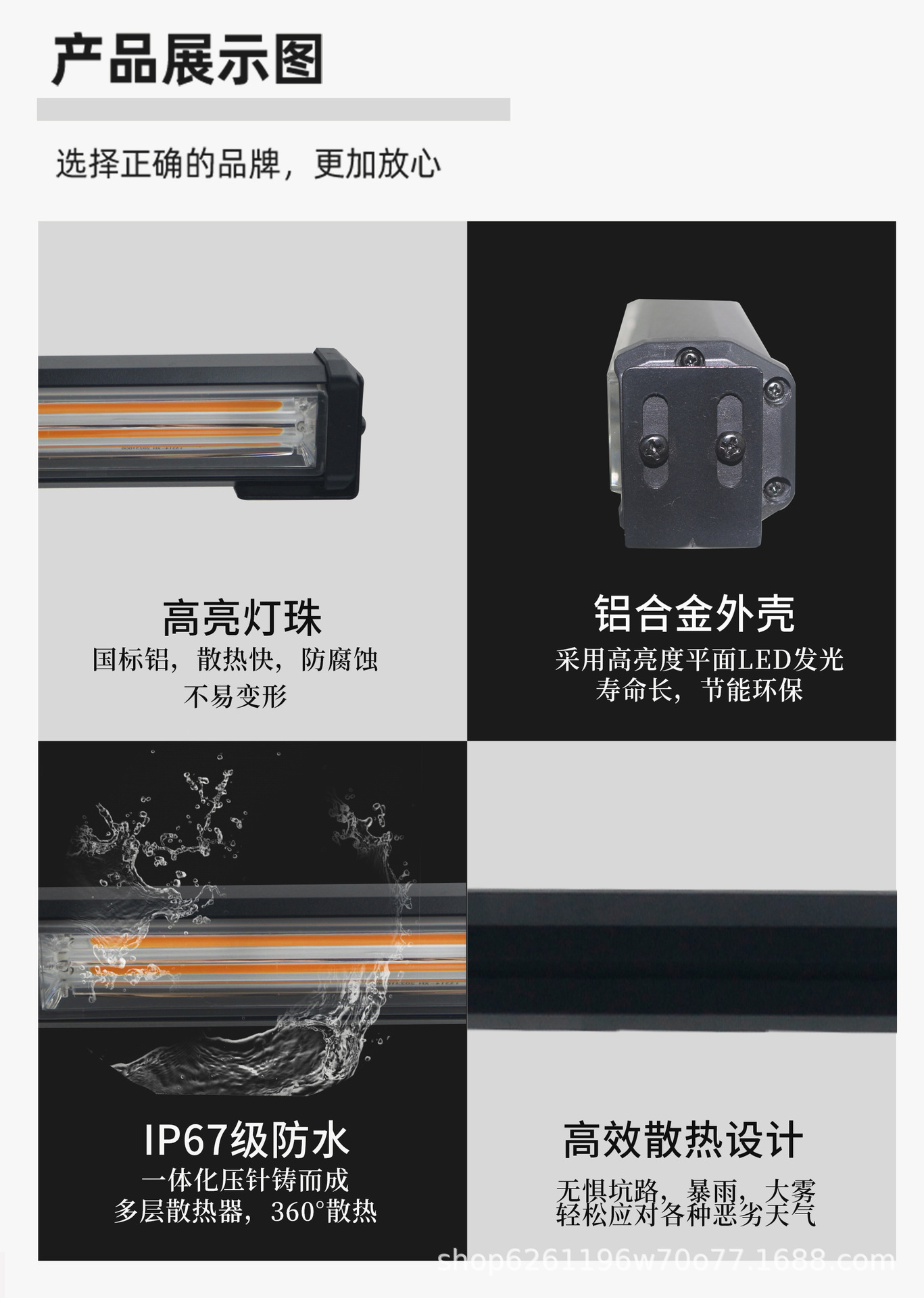 COB7 단면 스트라이프 라이트 LED 중망등 안전 구조차 지붕 신호등 경고 점멸등 초강력