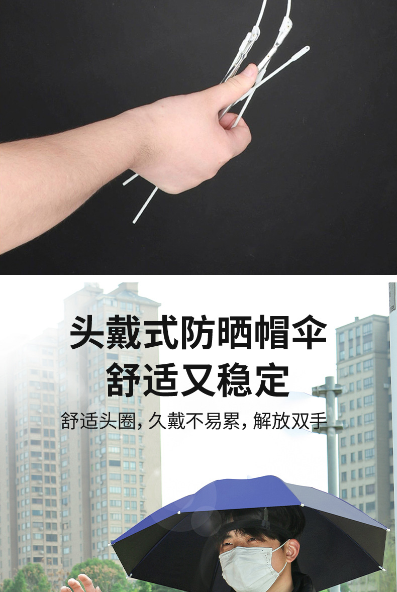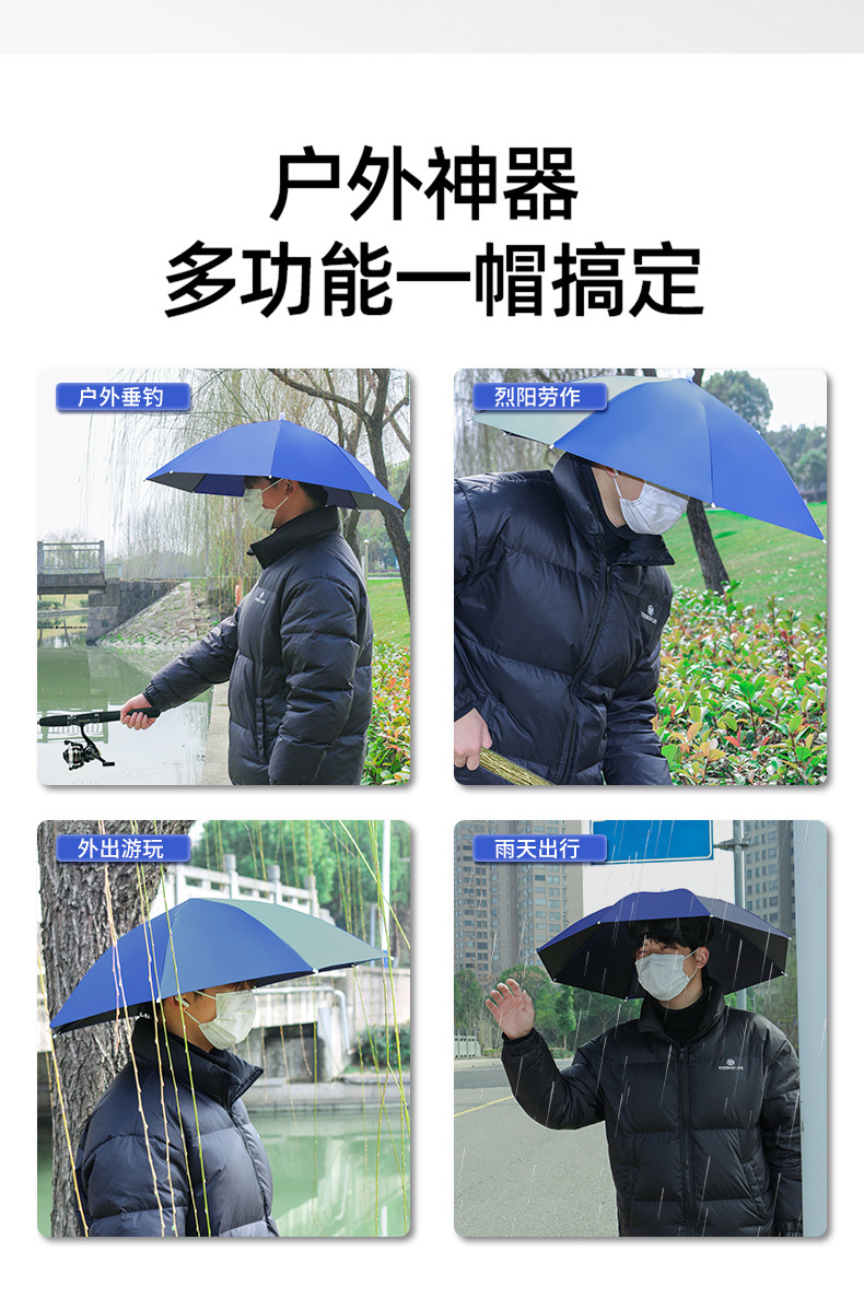 모자 우산 머리 장착 우산 맞춤형 로고 모자 낚시 머리 장착 우산 태양 우산 야외 태양 보호 비 방지 접이식 우산