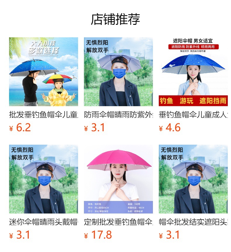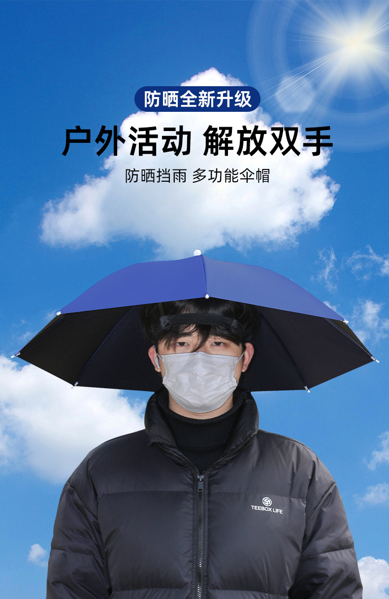 모자 우산 머리 장착 우산 맞춤형 로고 모자 낚시 머리 장착 우산 태양 우산 야외 태양 보호 비 방지 접이식 우산스토어 가기