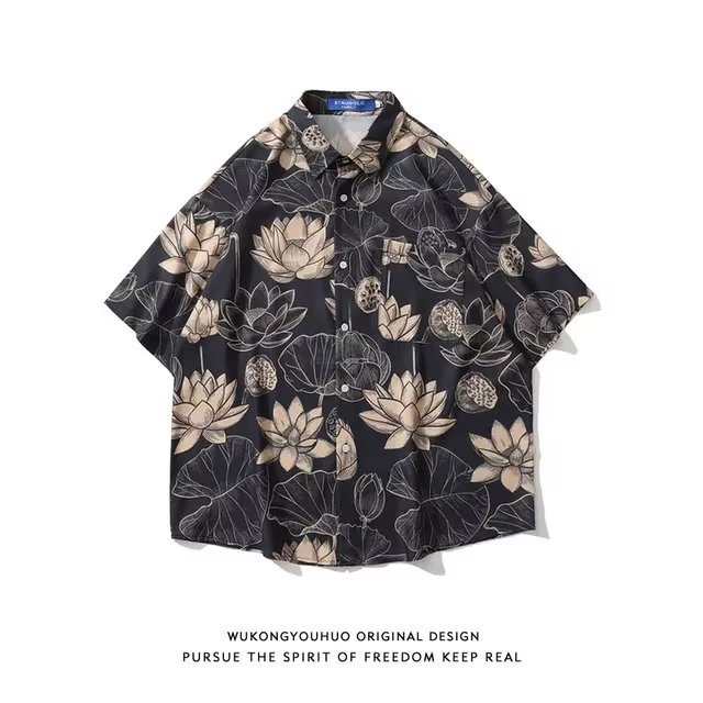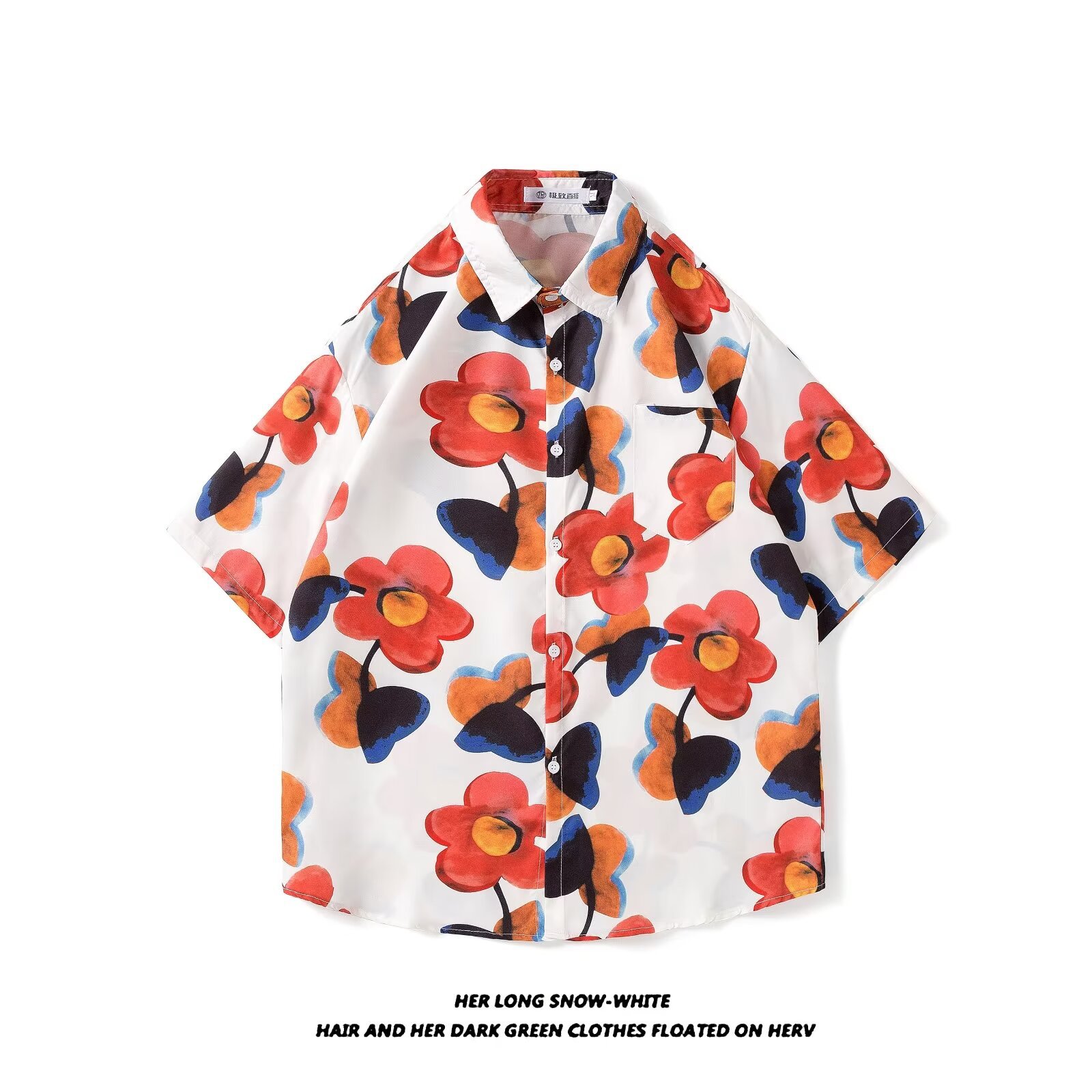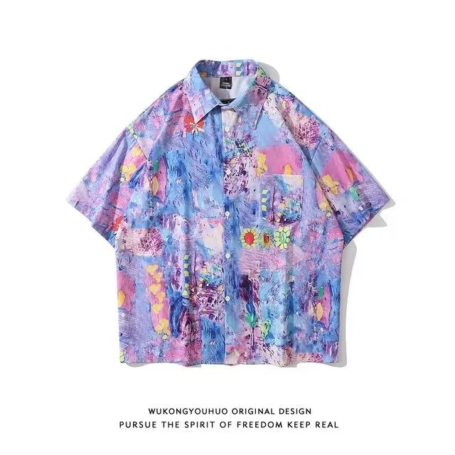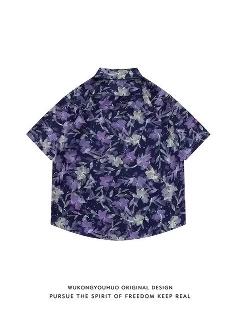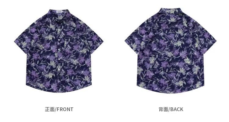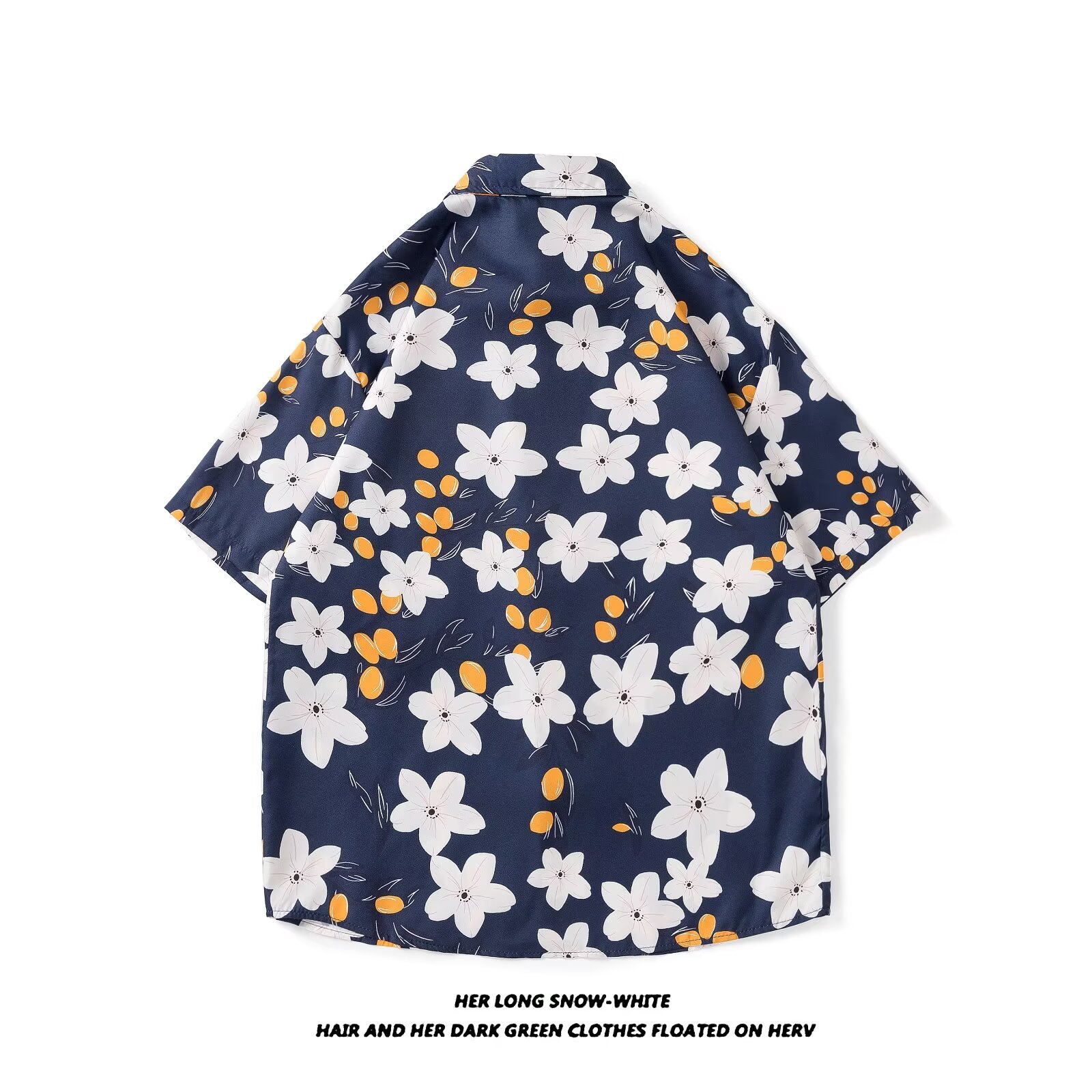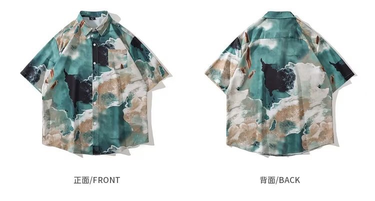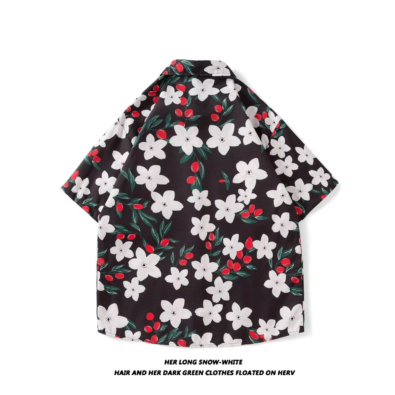 레트로 그린 유화 꽃 틈새 게으른 트렌디 인 캐주얼 예술적 짧은 소매 꽃 셔츠 남성 하와이스토어 가기