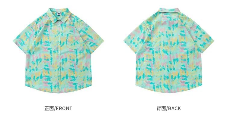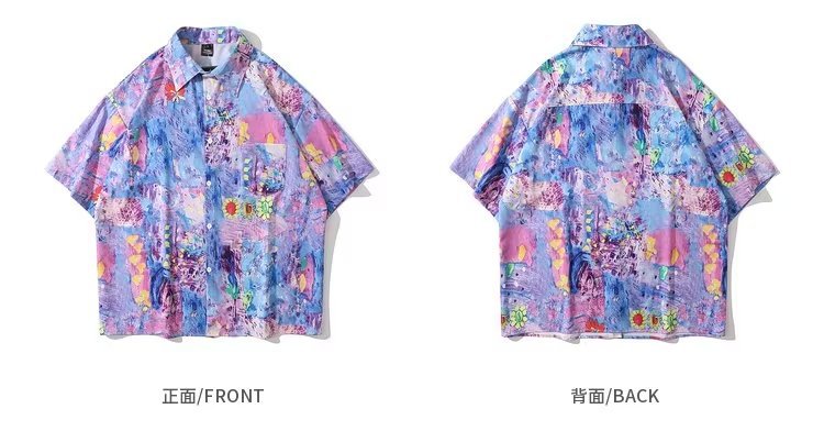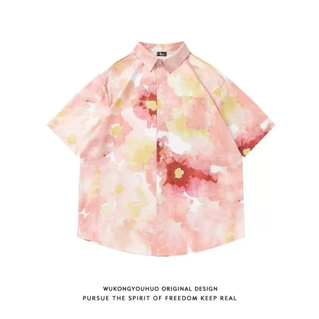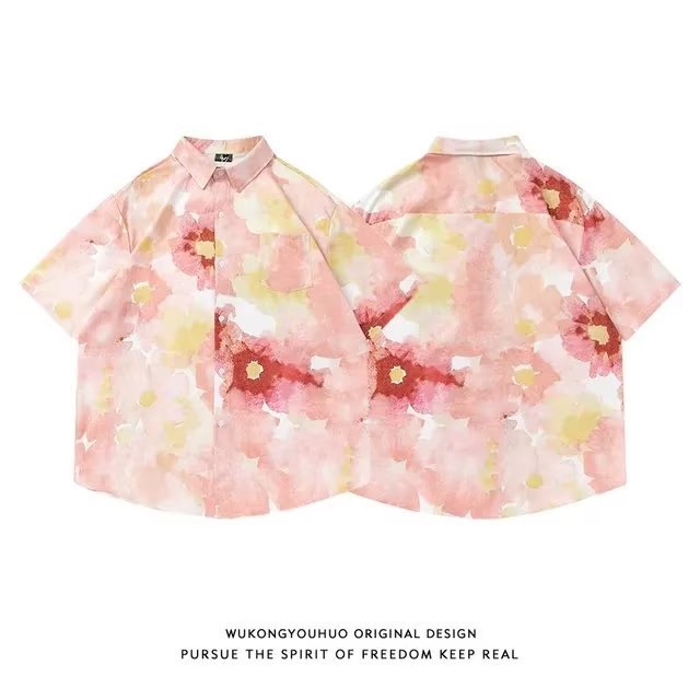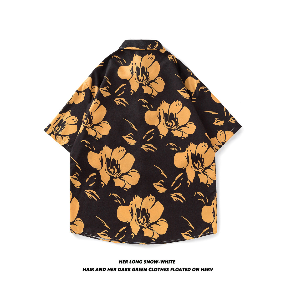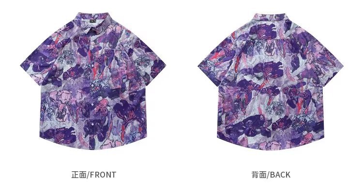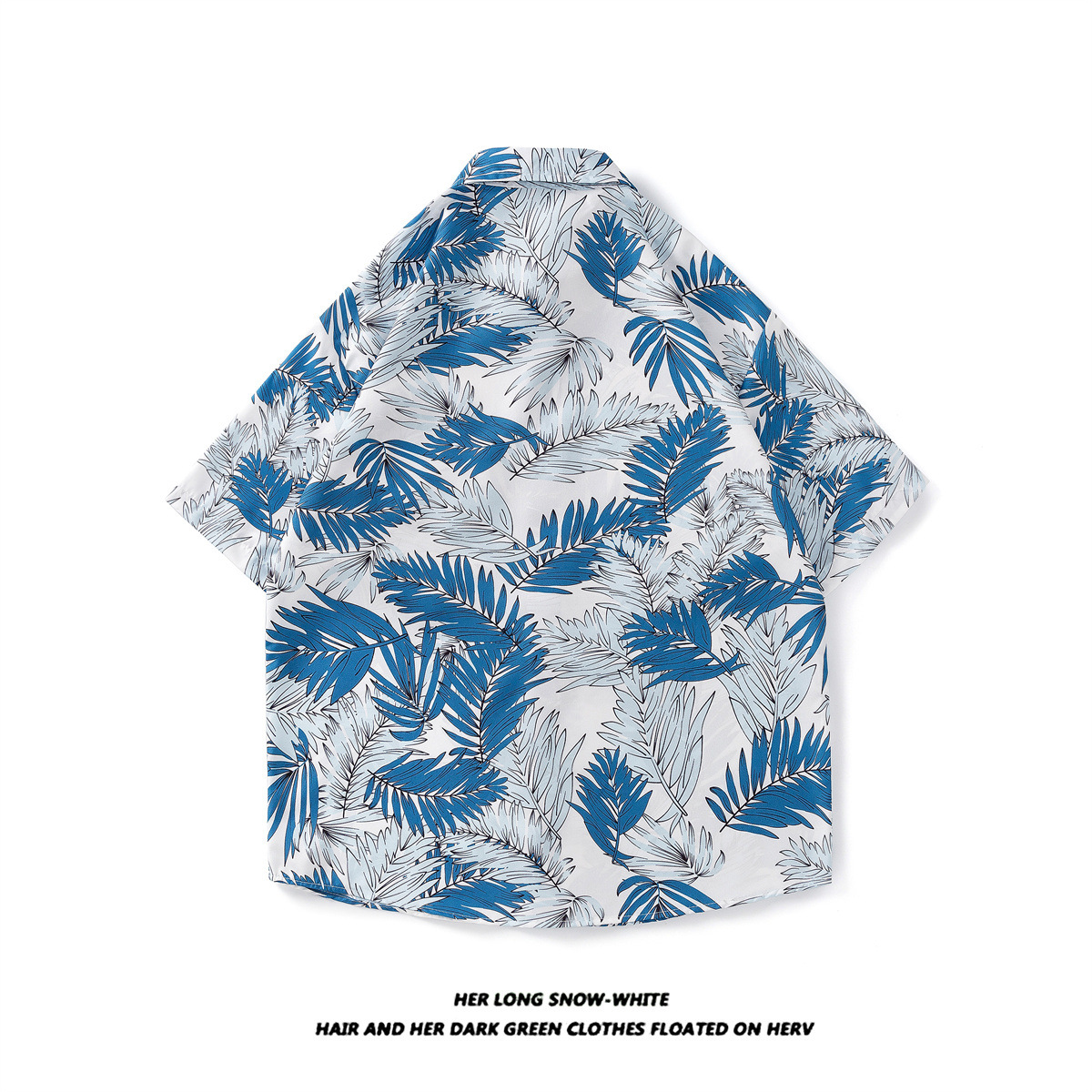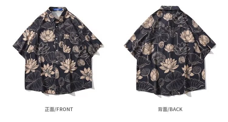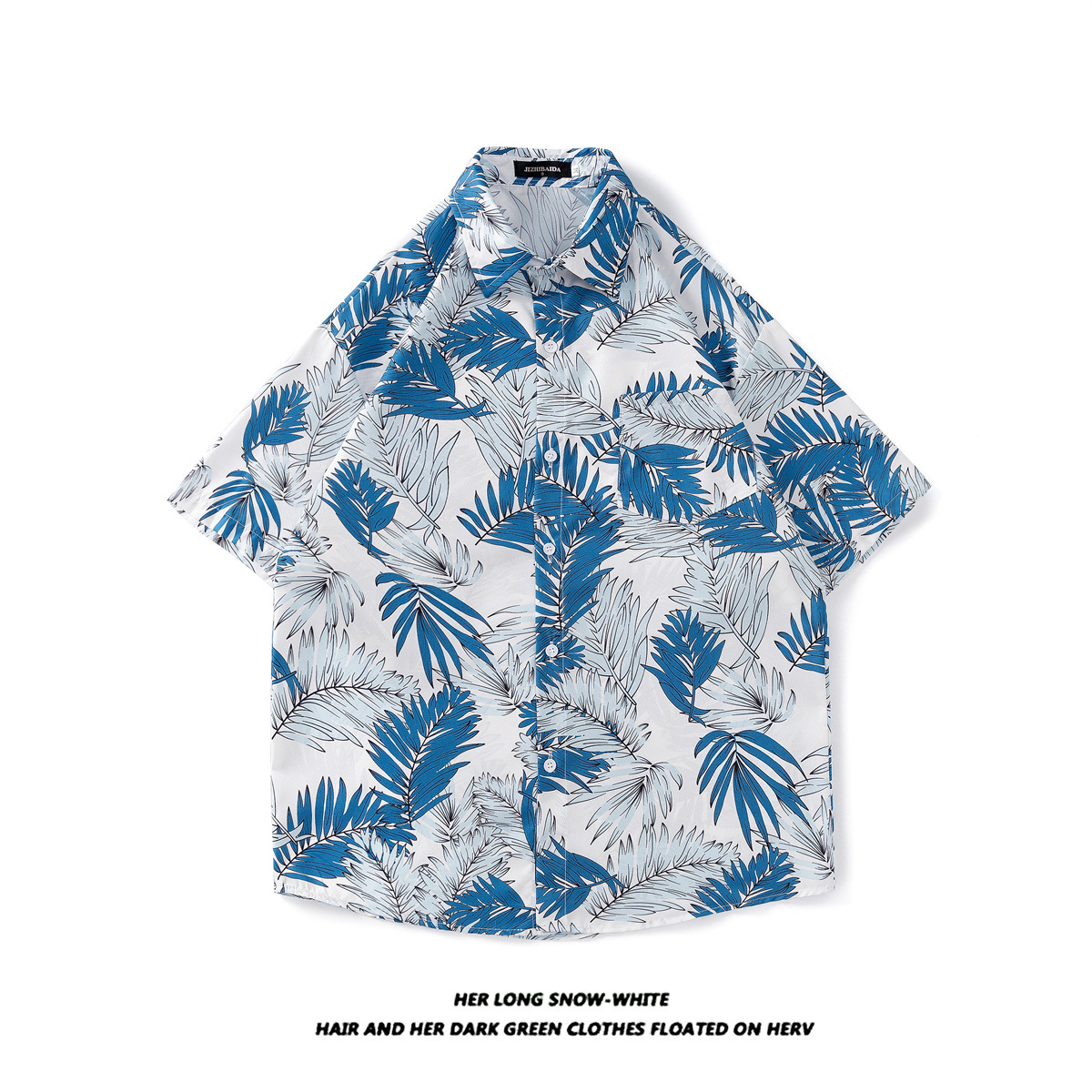 레트로 그린 유화 꽃 틈새 게으른 트렌디 인 캐주얼 예술적 짧은 소매 꽃 셔츠 남성 하와이스토어 가기
