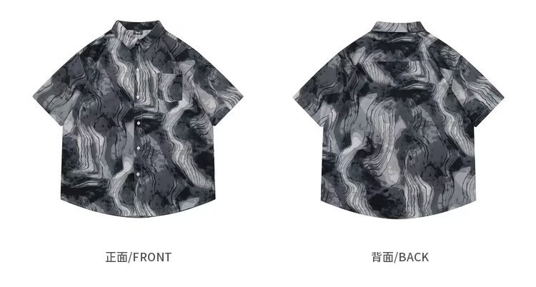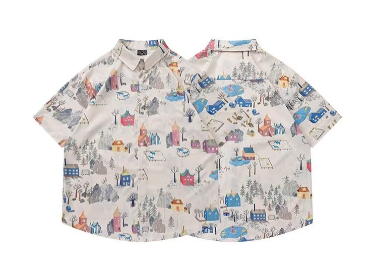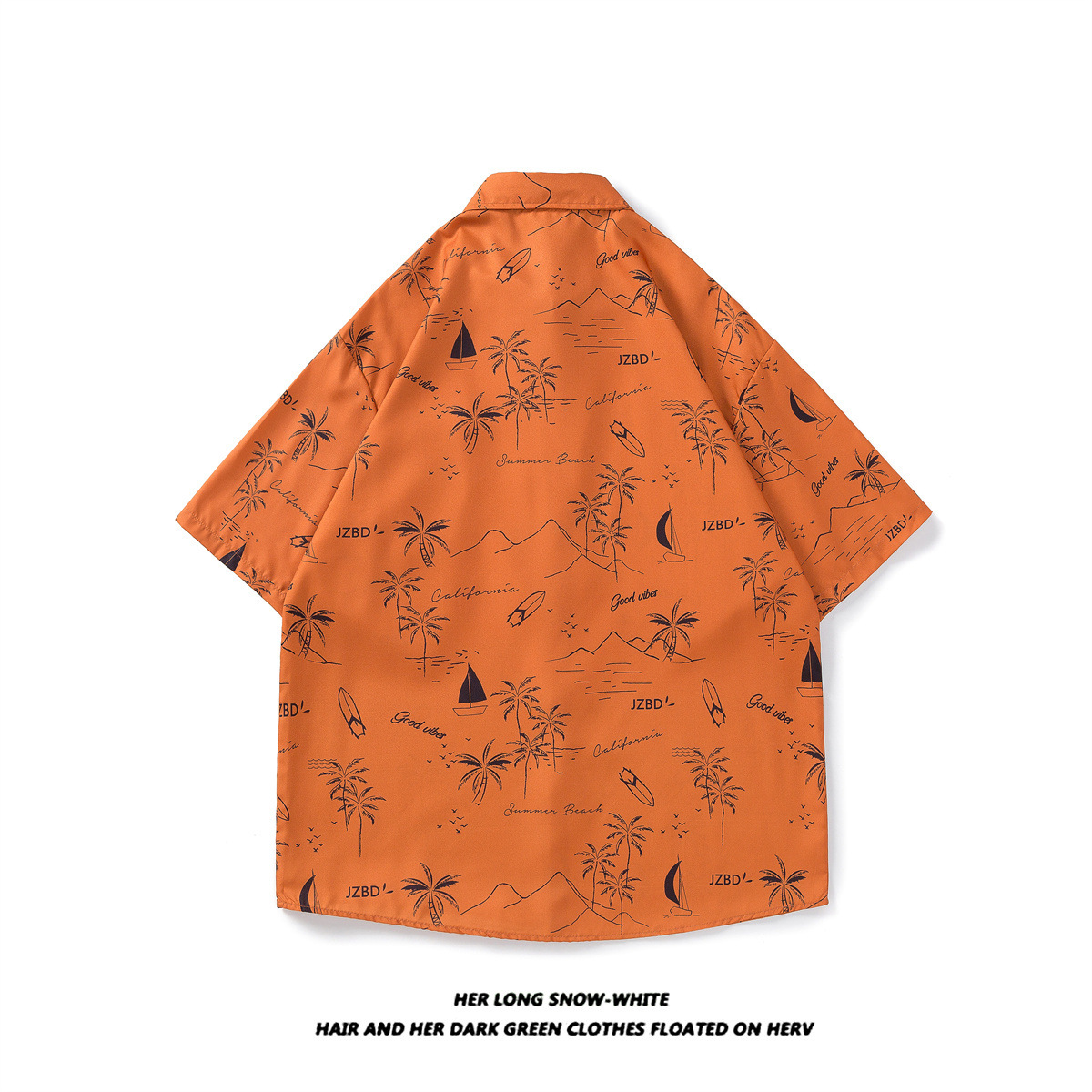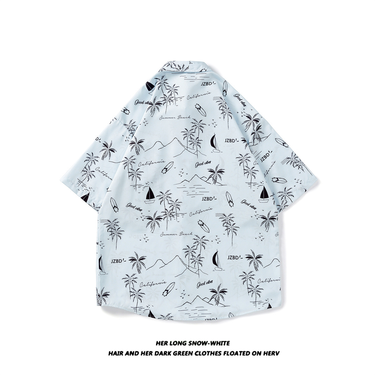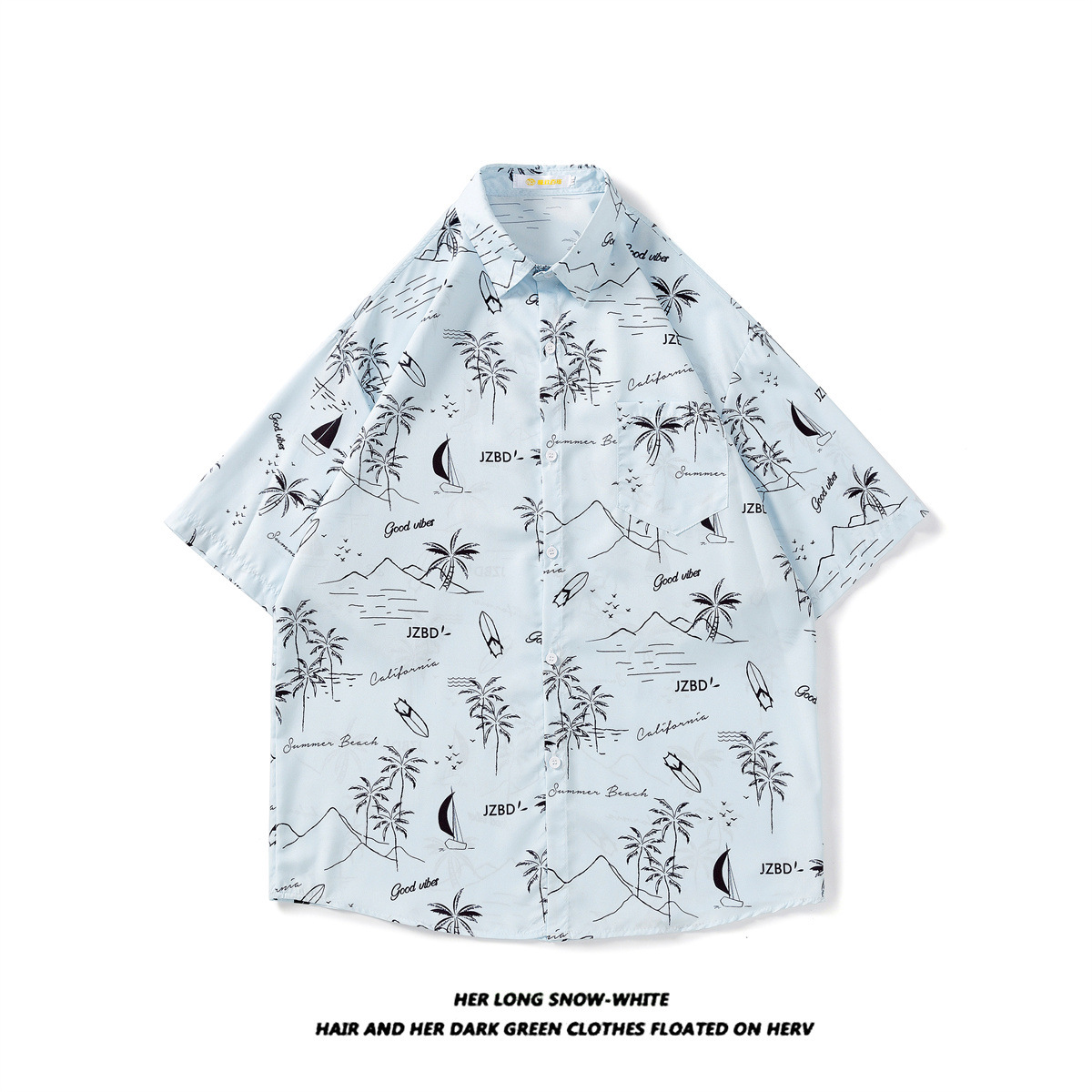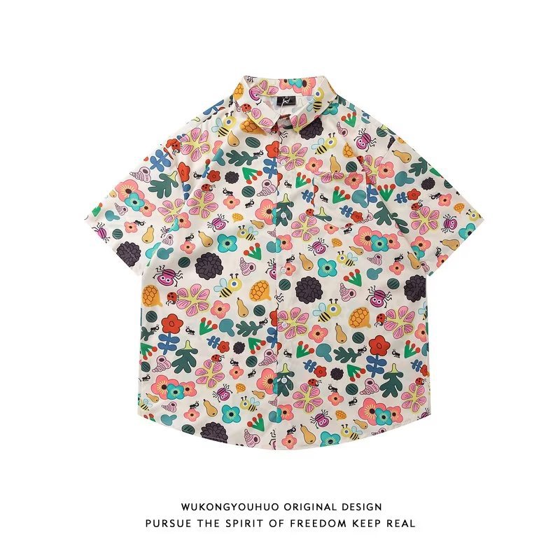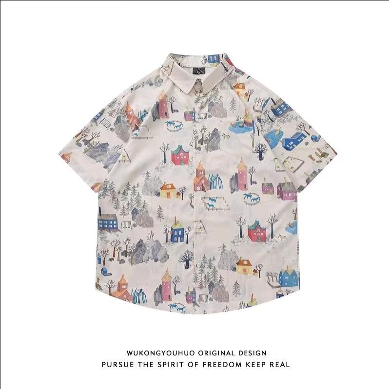 레트로 그린 유화 꽃 틈새 게으른 트렌디 인 캐주얼 예술적 짧은 소매 꽃 셔츠 남성 하와이스토어 가기