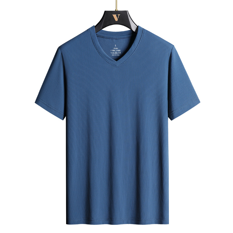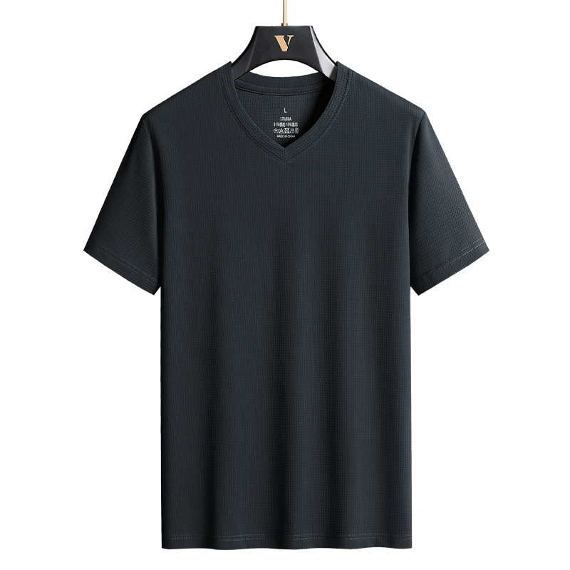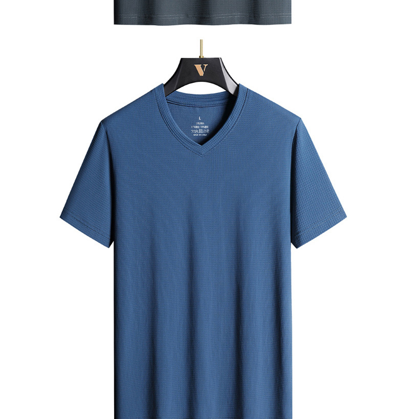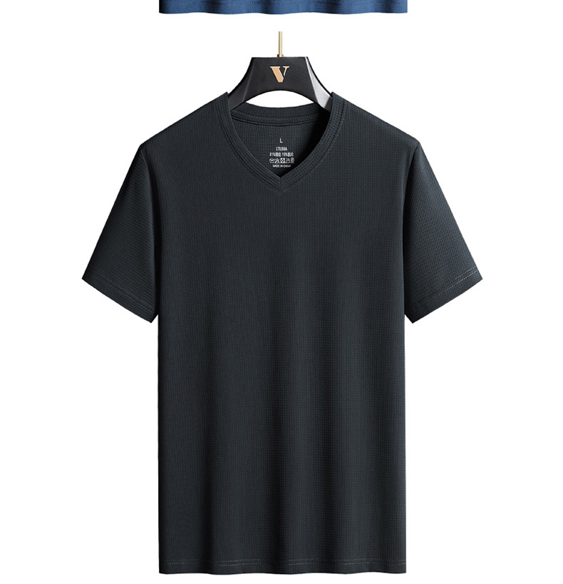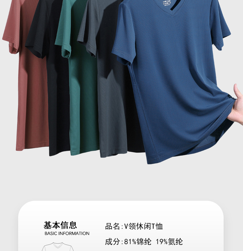 아이스 실크 Berlinger 남성용 반팔 티셔츠 남성용 여름 V 넥 단색 탑 옷 느슨한 느낌 플러스 사이즈 반소매 바디