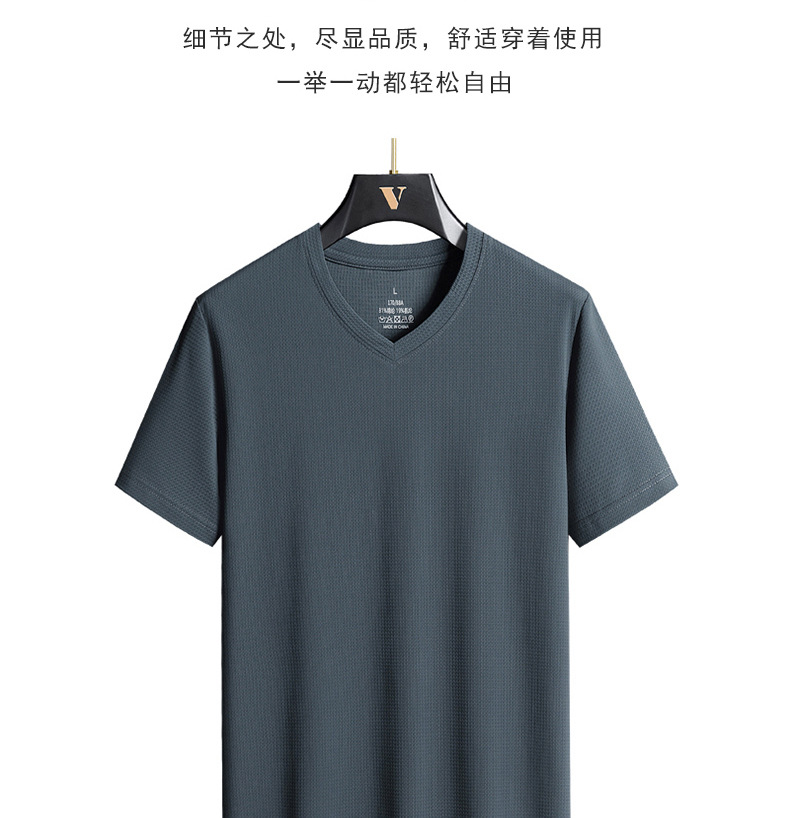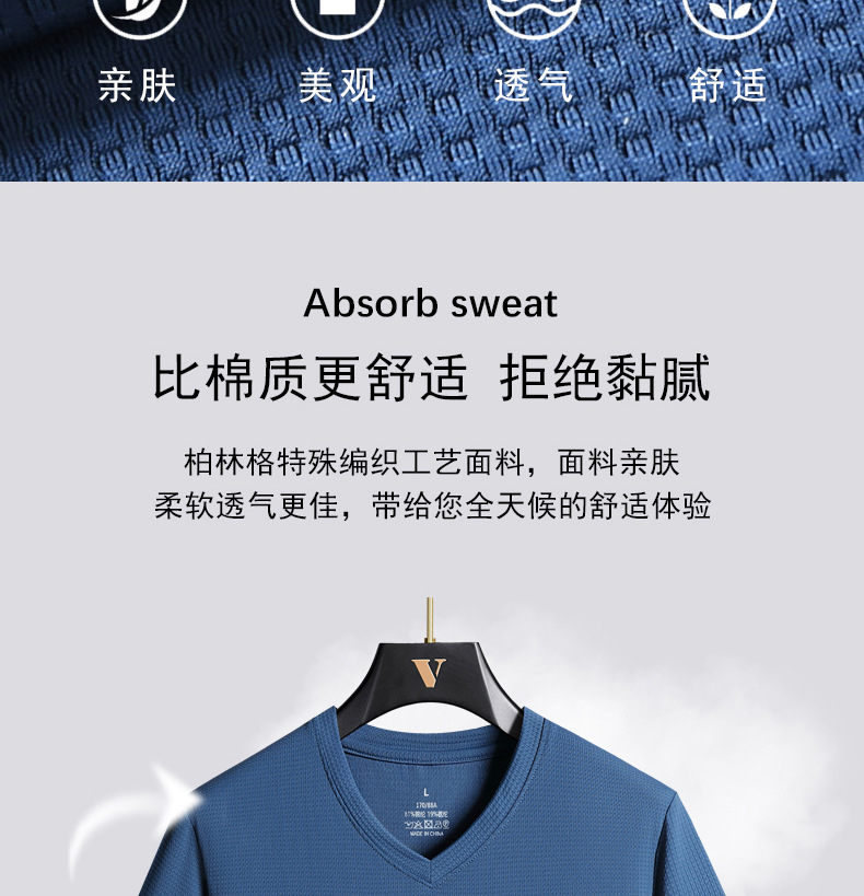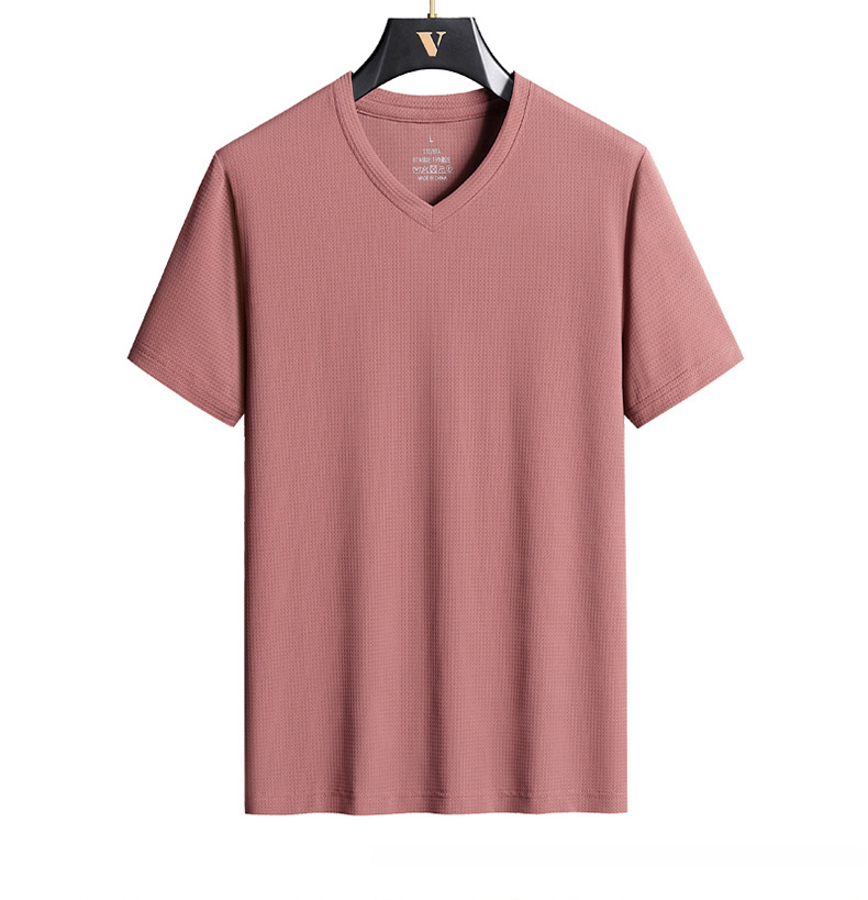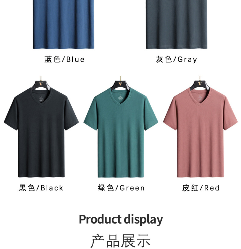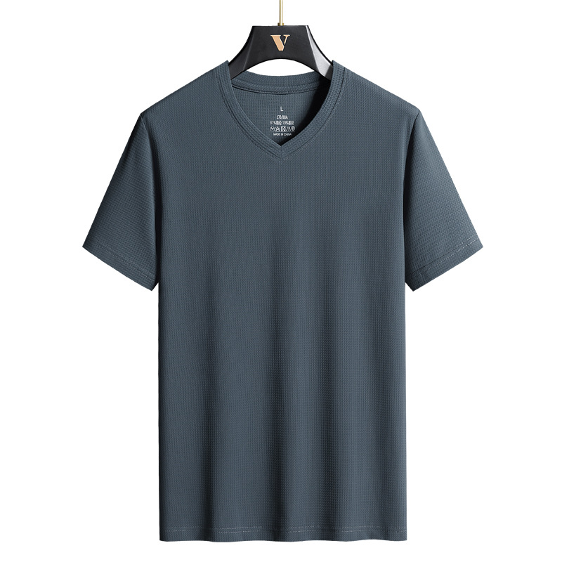 아이스 실크 Berlinger 남성용 반팔 티셔츠 남성용 여름 V 넥 단색 탑 옷 느슨한 느낌 플러스 사이즈 반소매 바디