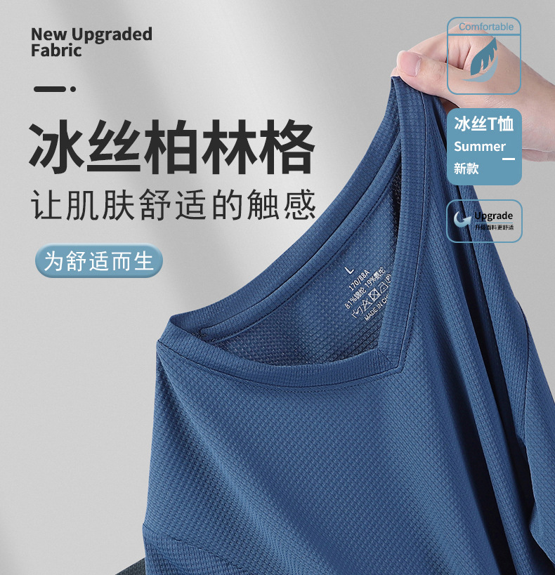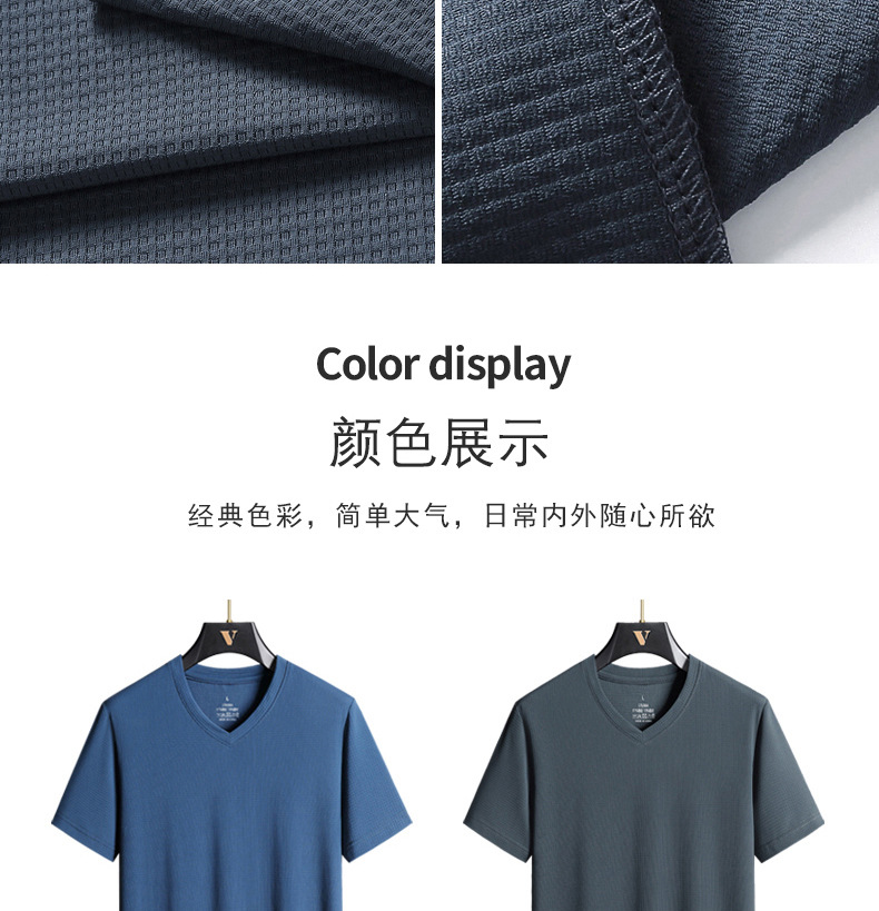 아이스 실크 Berlinger 남성용 반팔 티셔츠 남성용 여름 V 넥 단색 탑 옷 느슨한 느낌 플러스 사이즈 반소매 바디스토어 가기