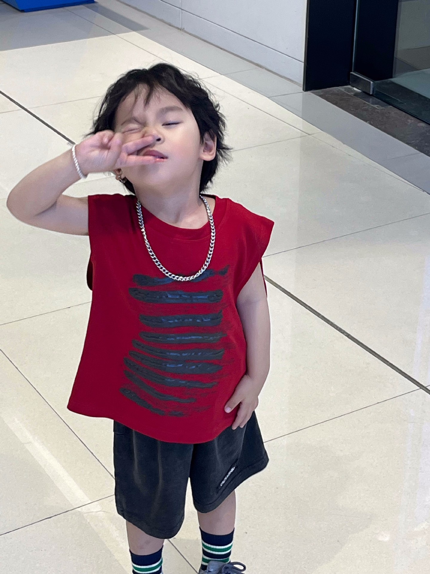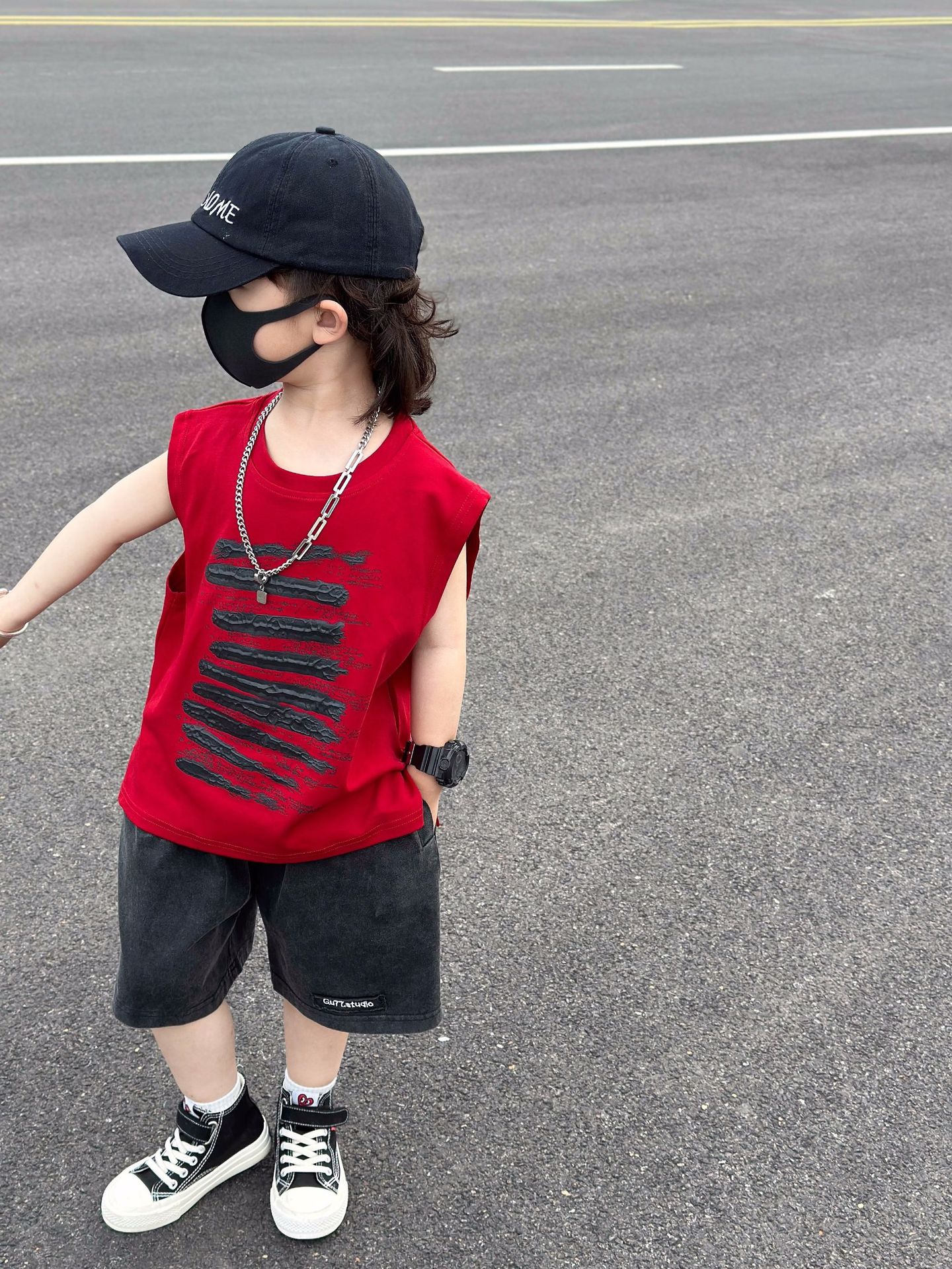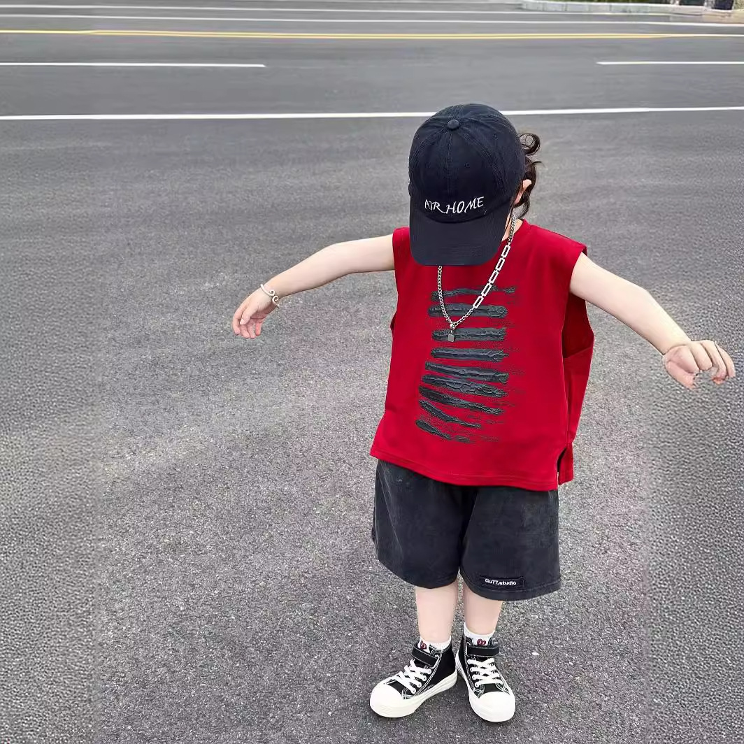 남학생 코튼 조끼 여름 얇은 트렌디 시원한 아기 프릴 잘 생긴 소년 민소매 티셔츠 프라이드 스트리트 레드 탑스토어 가기