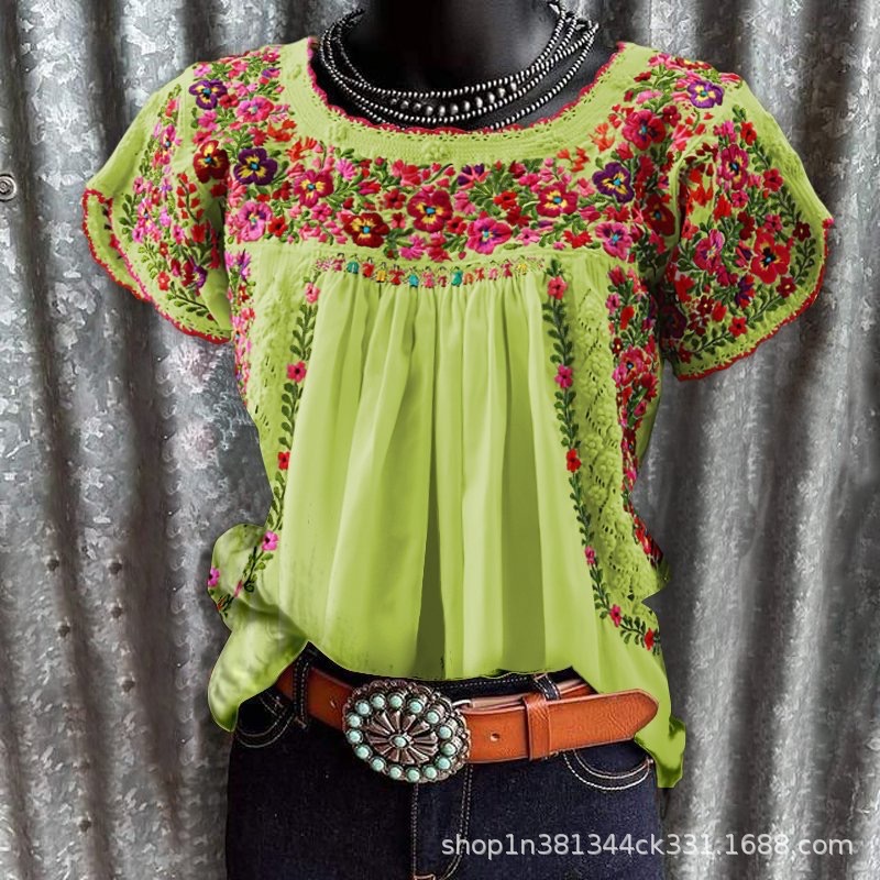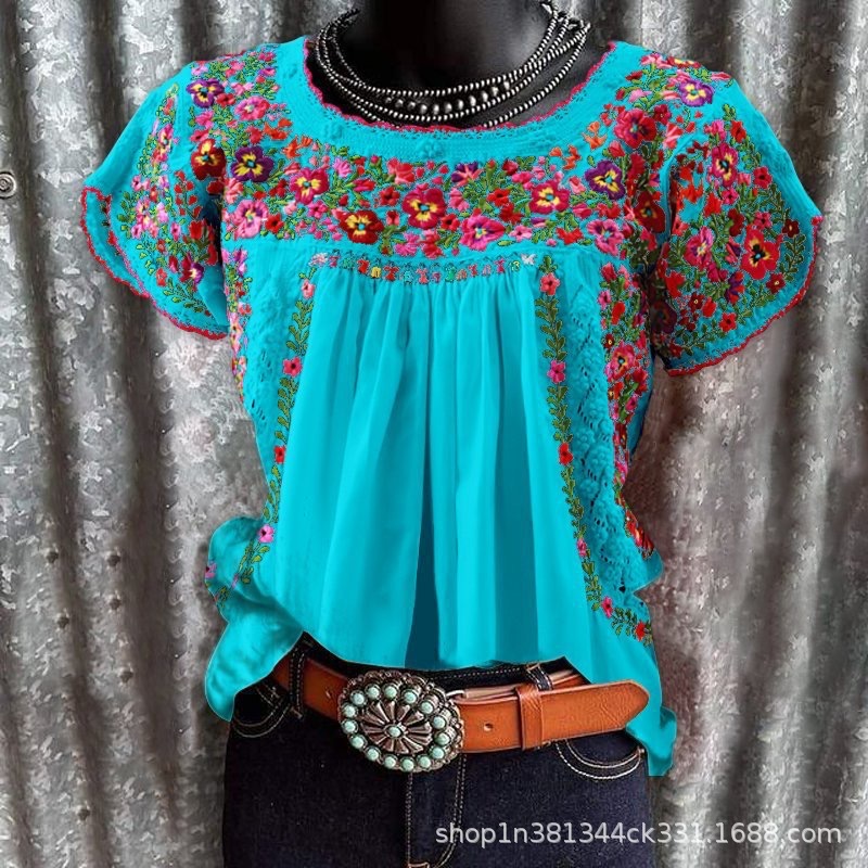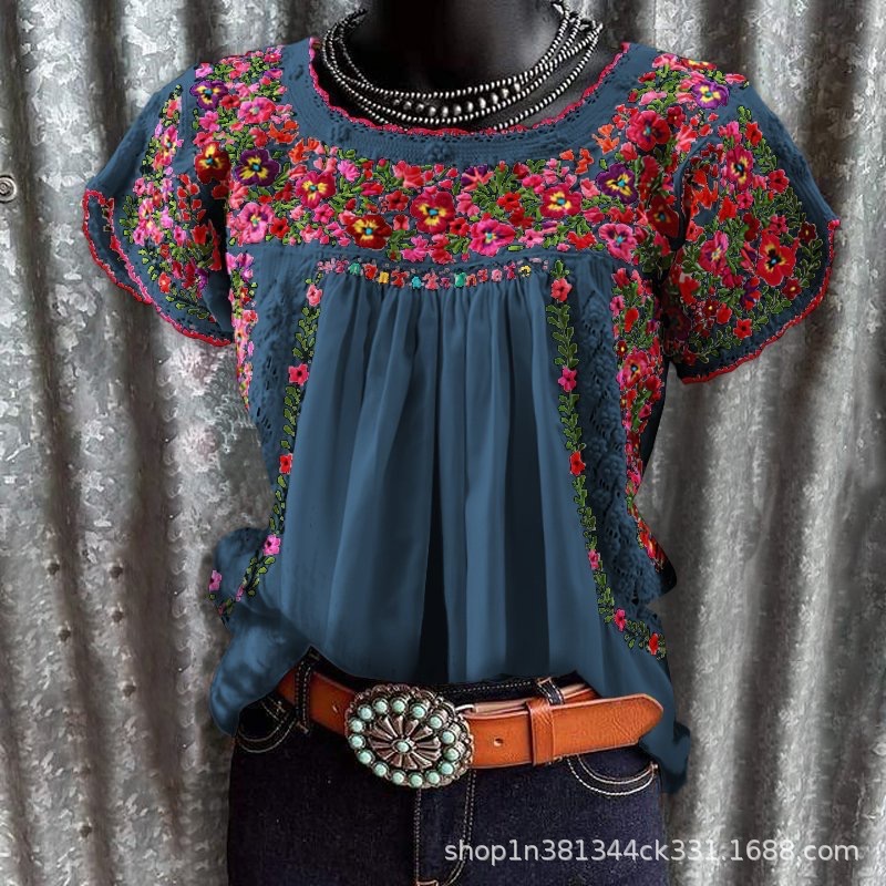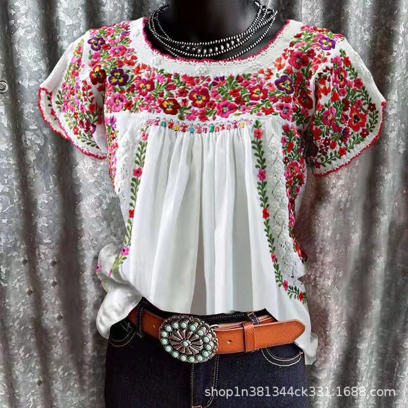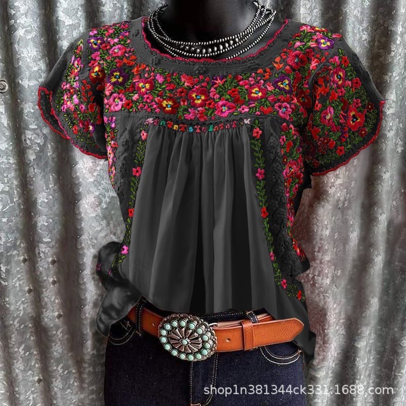 2024 여름 새로운 국경 유럽 및 미국 AliExpress 독립 역 여성 패션 인쇄 느슨한 반팔 티셔츠